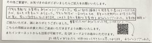 お客様から大変嬉しいお言葉を、びっしり直筆で頂きましたのでご紹介させていただきます。