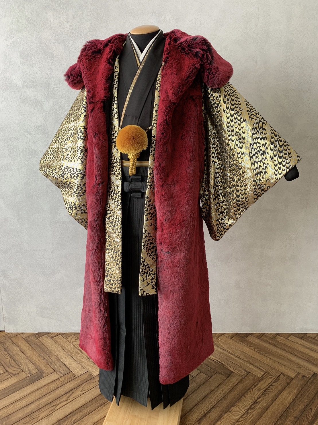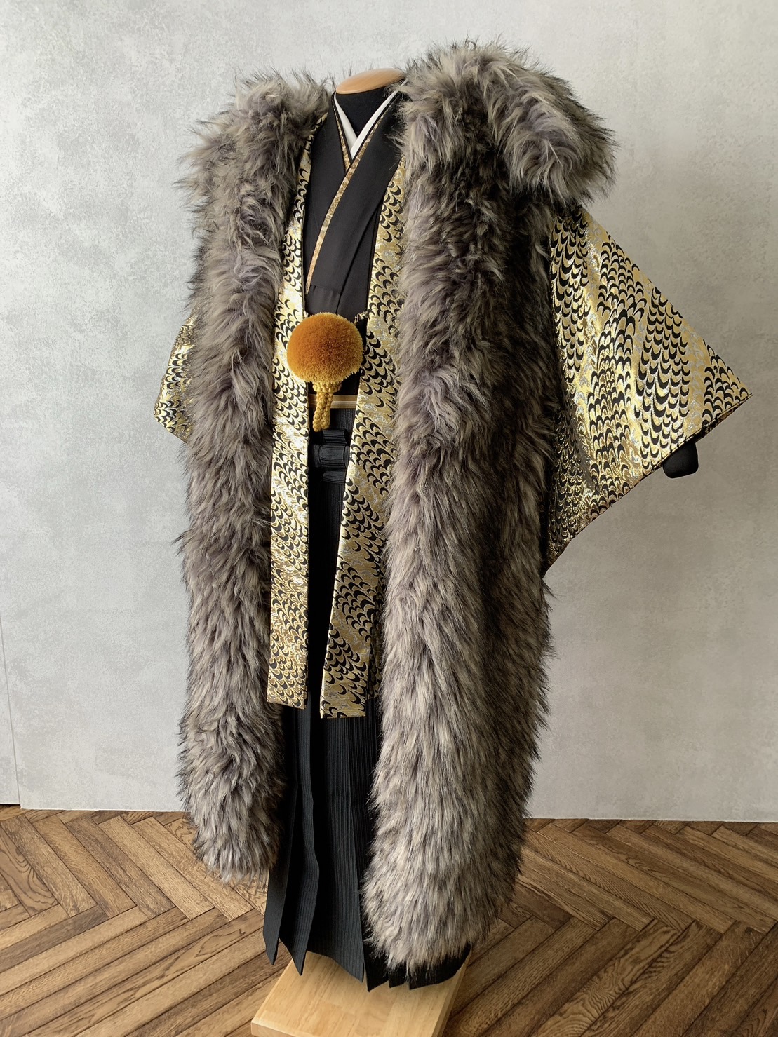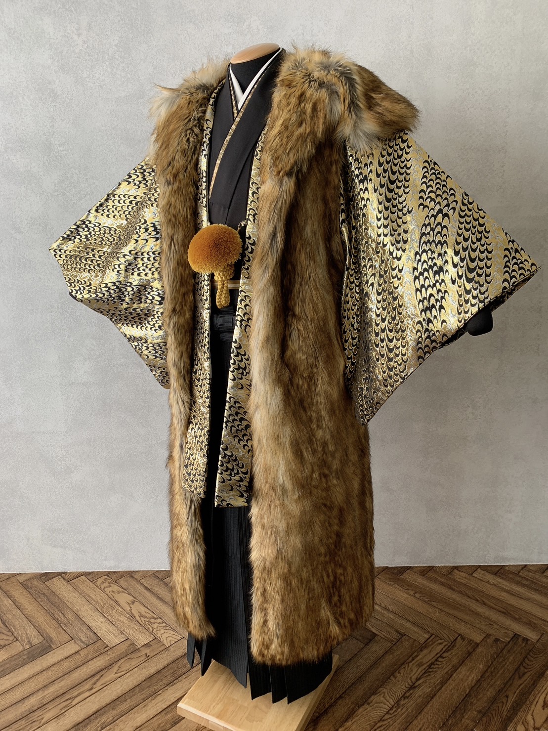 紋付袴レンタル・成人式・結婚式・卒業式|クリームにゴールドのクロコダイル風[170cm]No.226