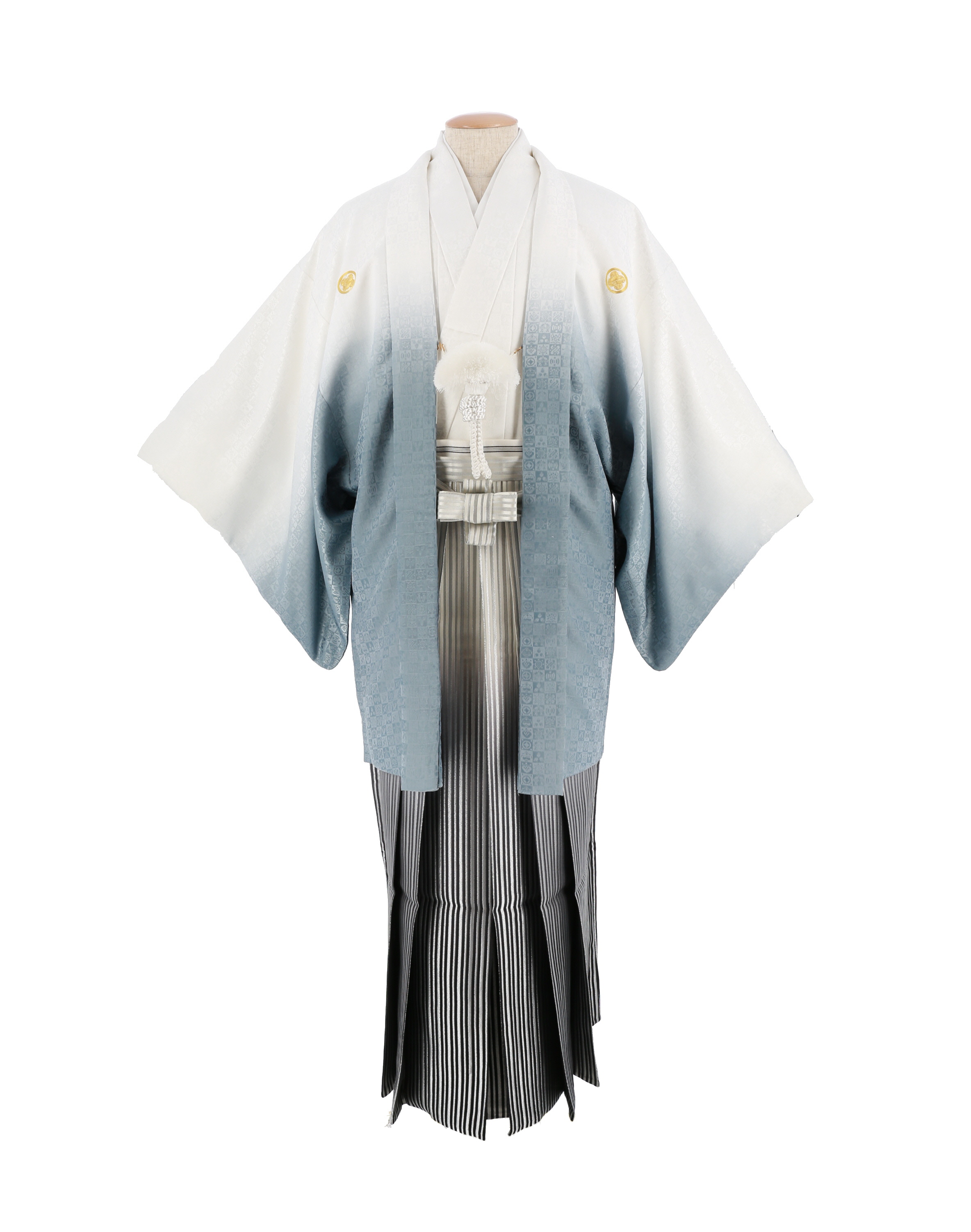 男性用袴単品レンタル(成人式・結婚式・卒業式)白黒ぼかし・金の花菱[身長180cm対応]No.659