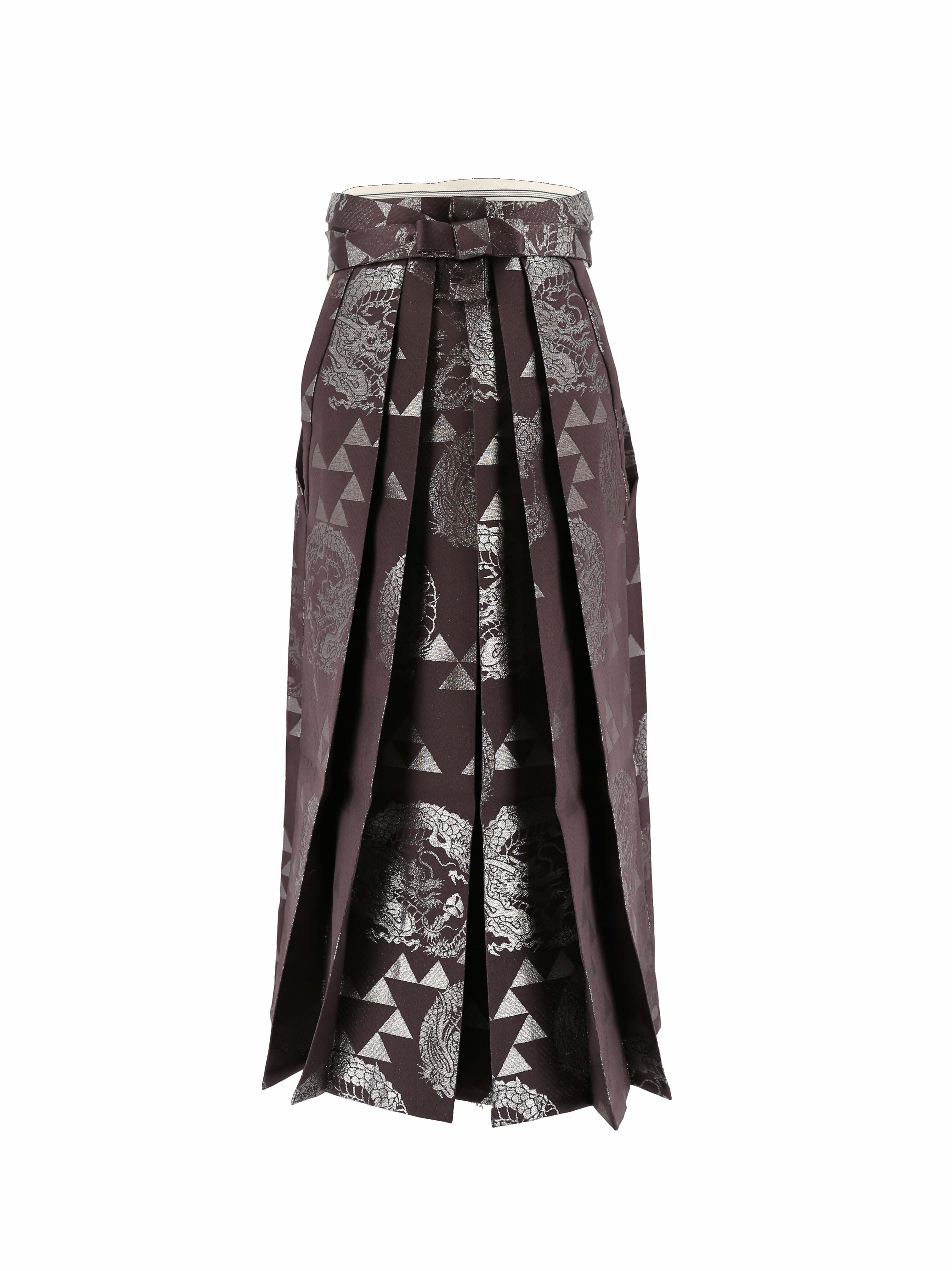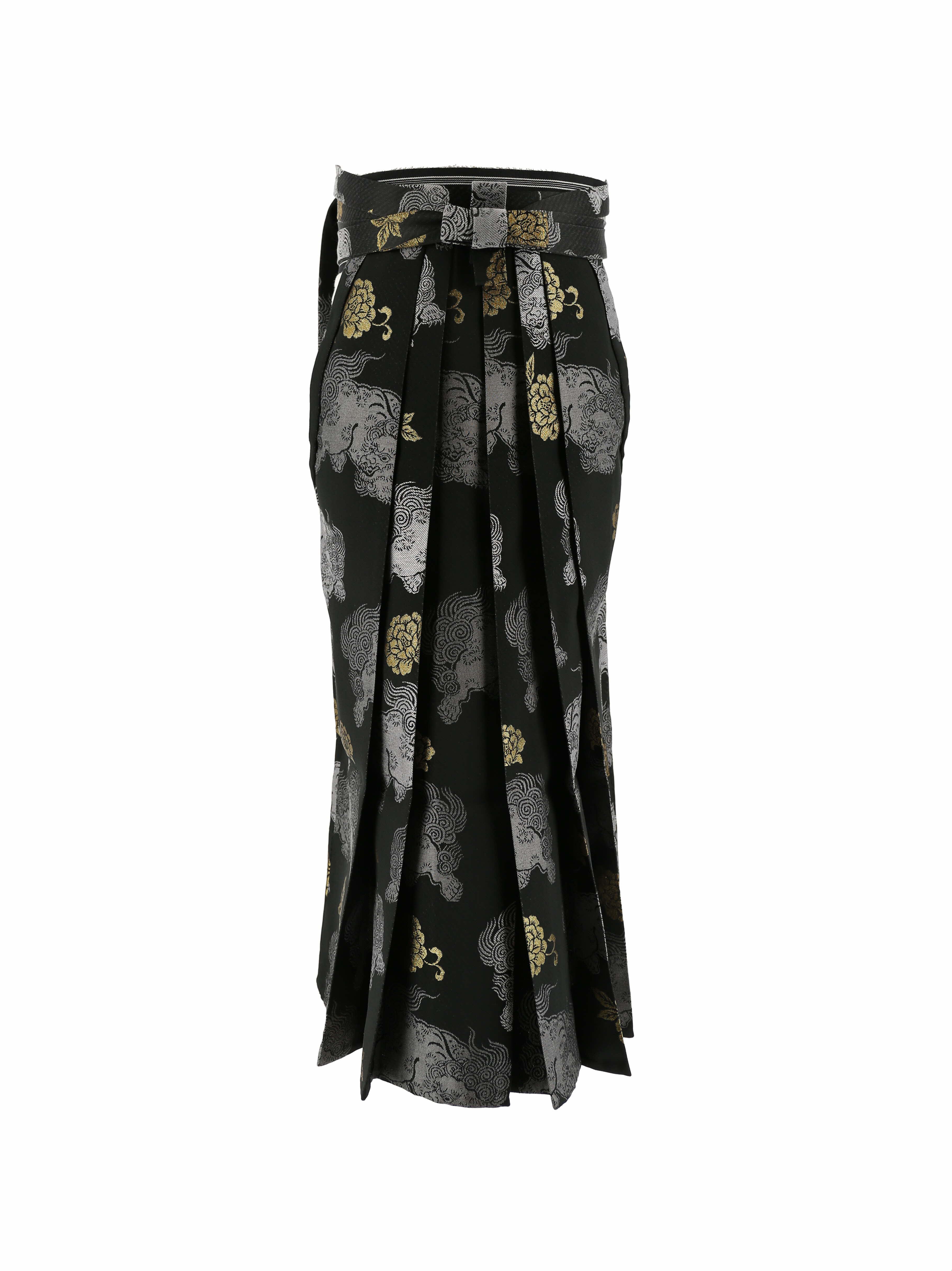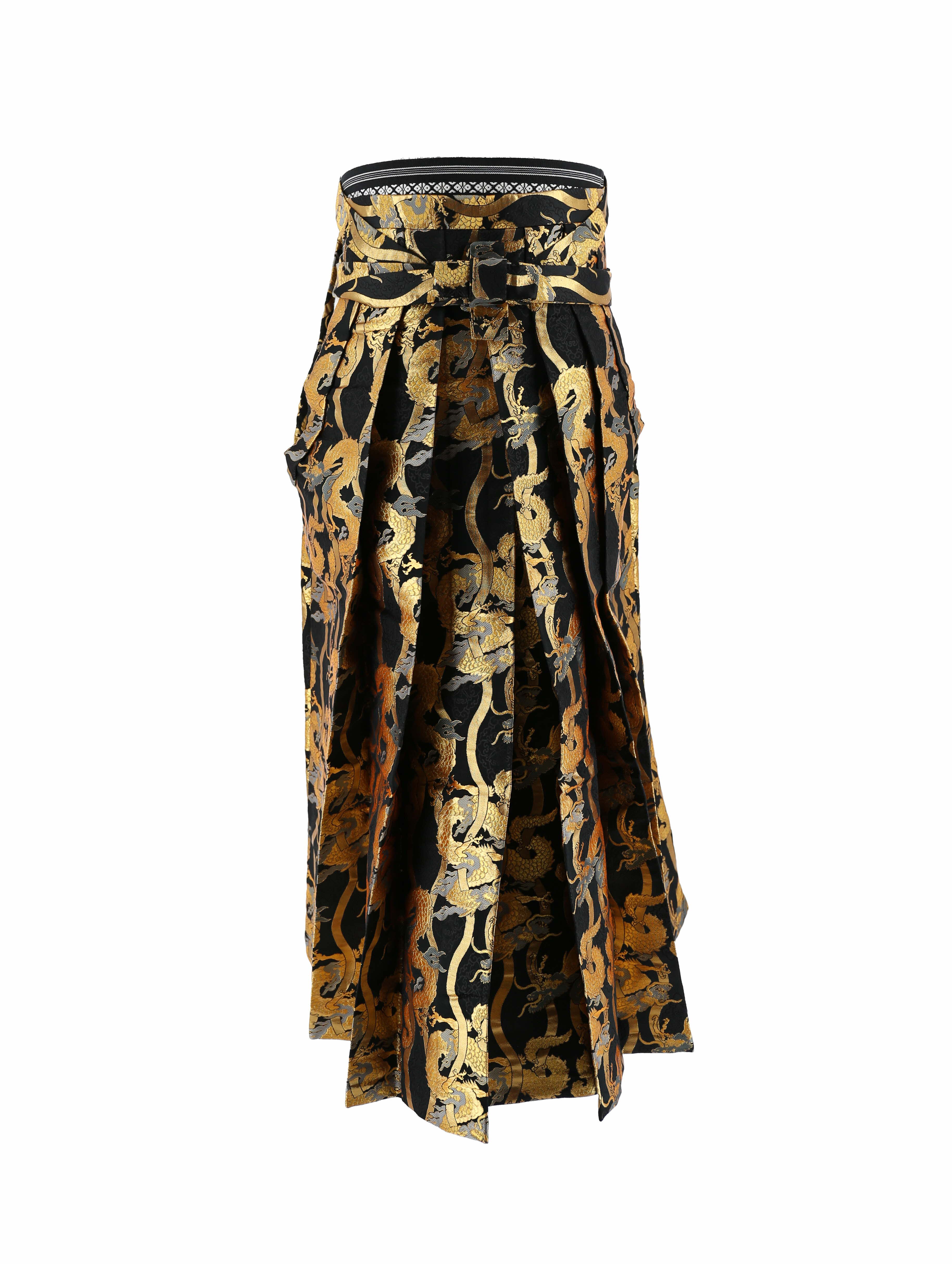 男性用袴単品レンタル(成人式・結婚式・卒業式)黒・金グレーの龍と立涌[身長190cm]No.663