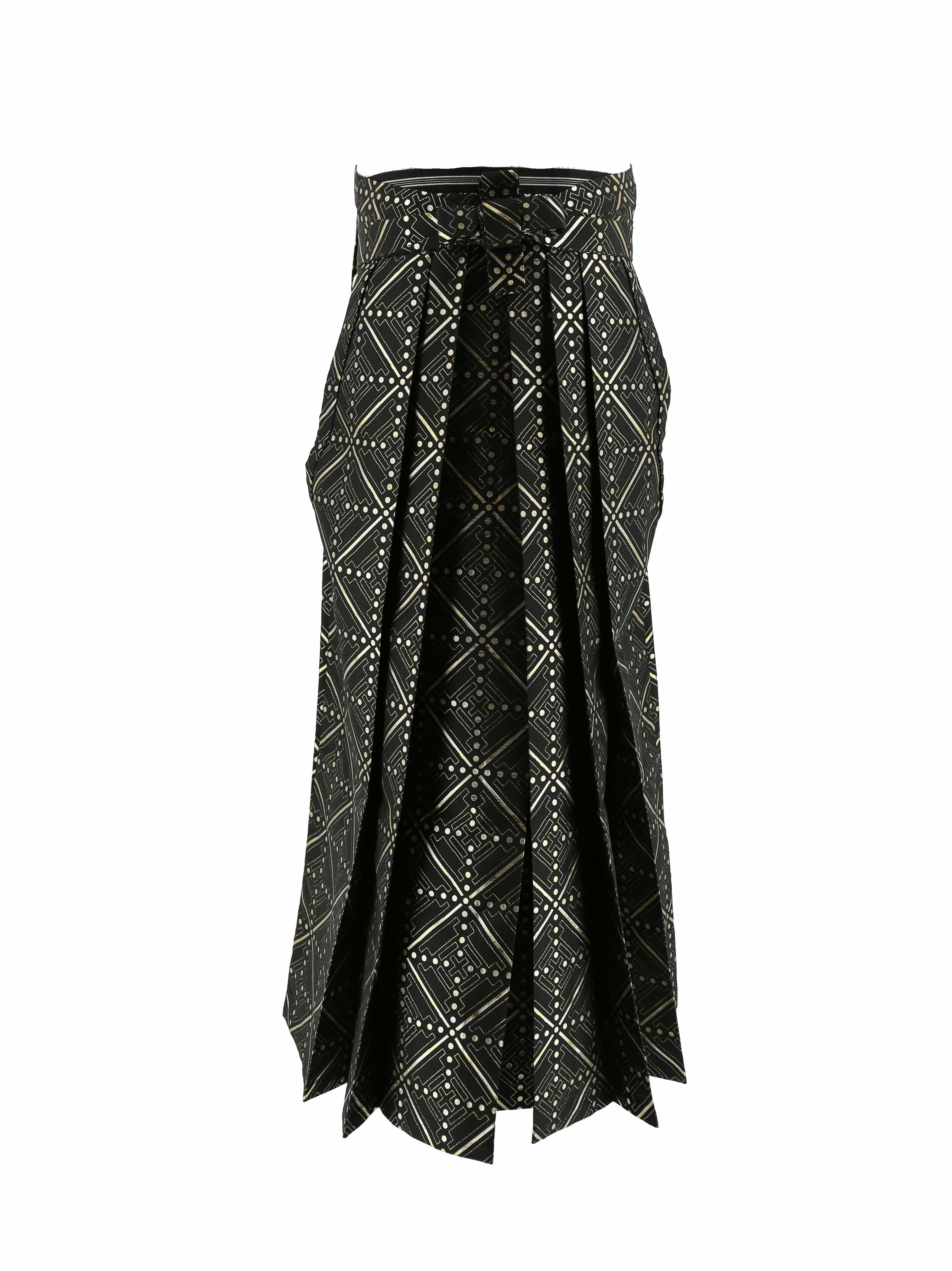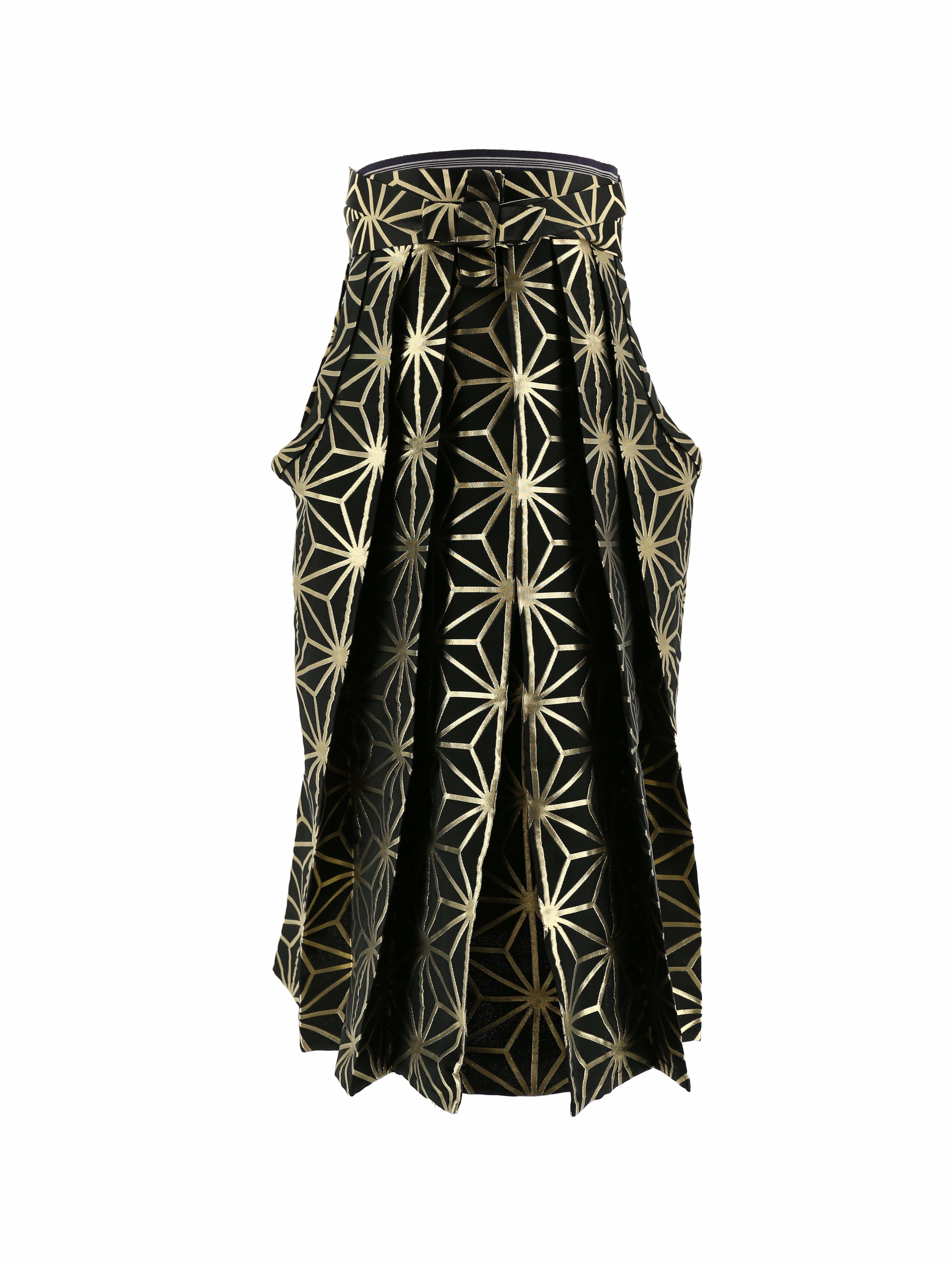 男性用袴単品レンタル(成人式・結婚式・卒業式)黒・金の大きな麻の葉文様[身長165cm]No.655
