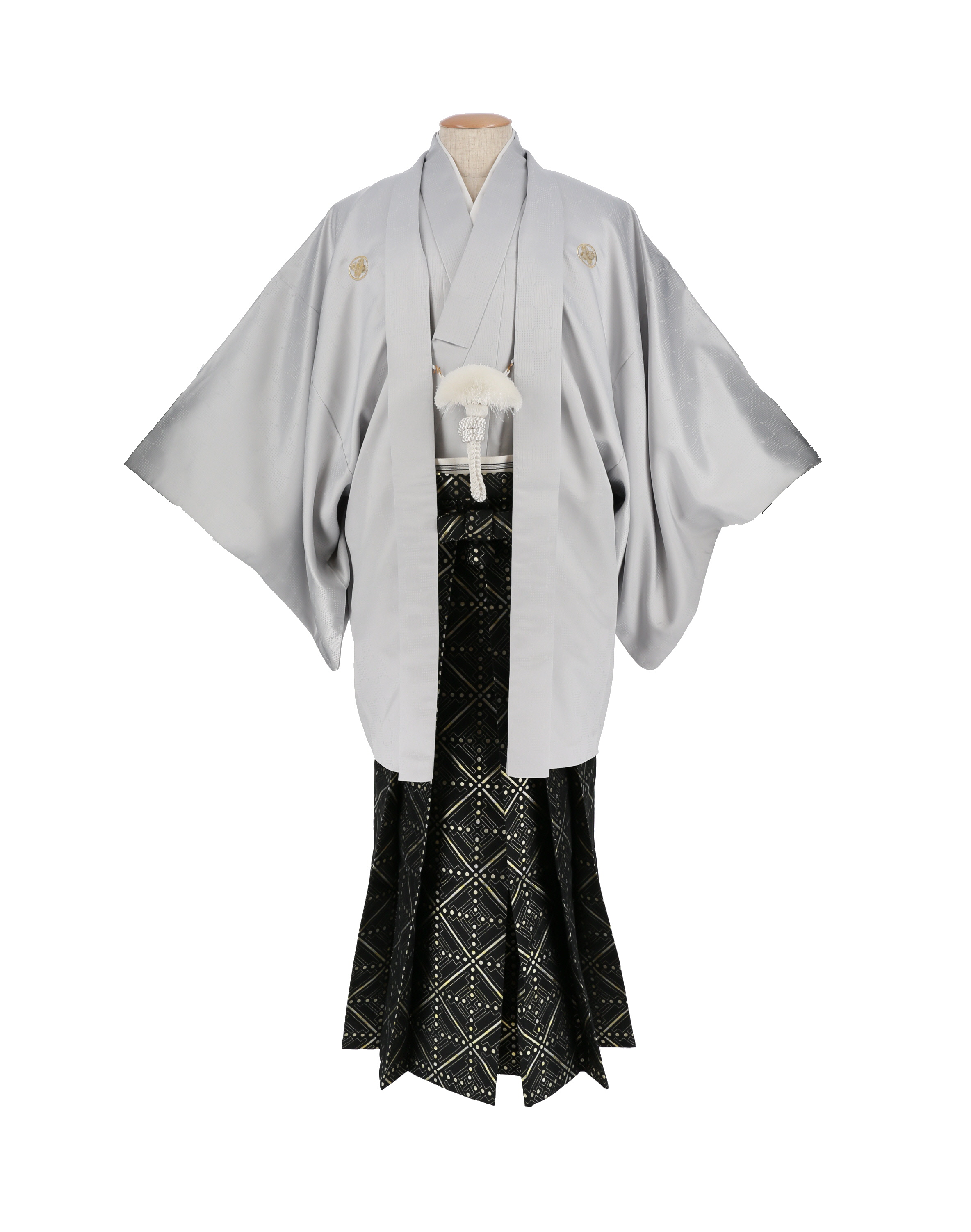 男性用袴単品レンタル(成人式・結婚式・卒業式)白黒ぼかし・金の花菱[身長165cm対応]No.657
