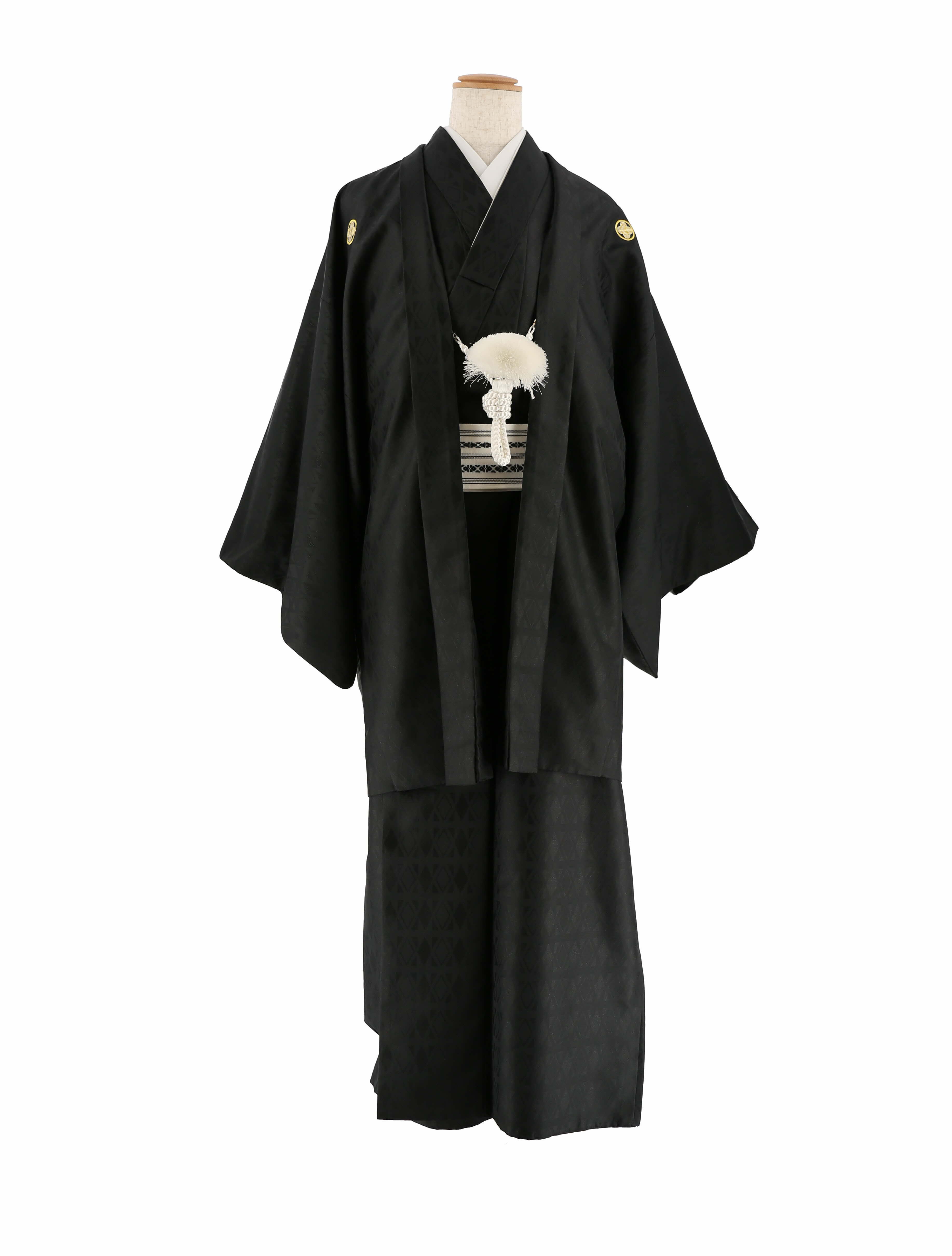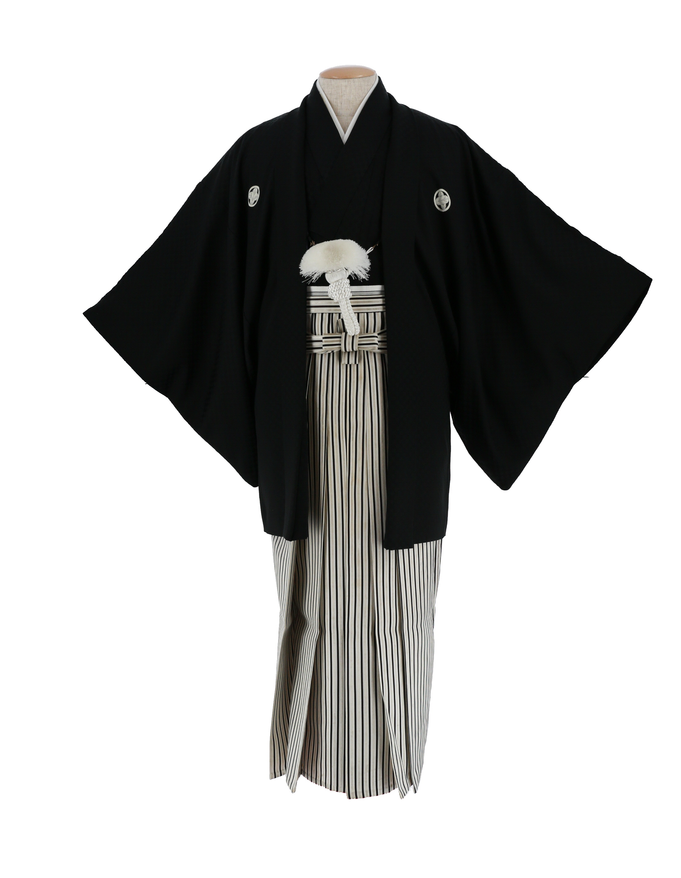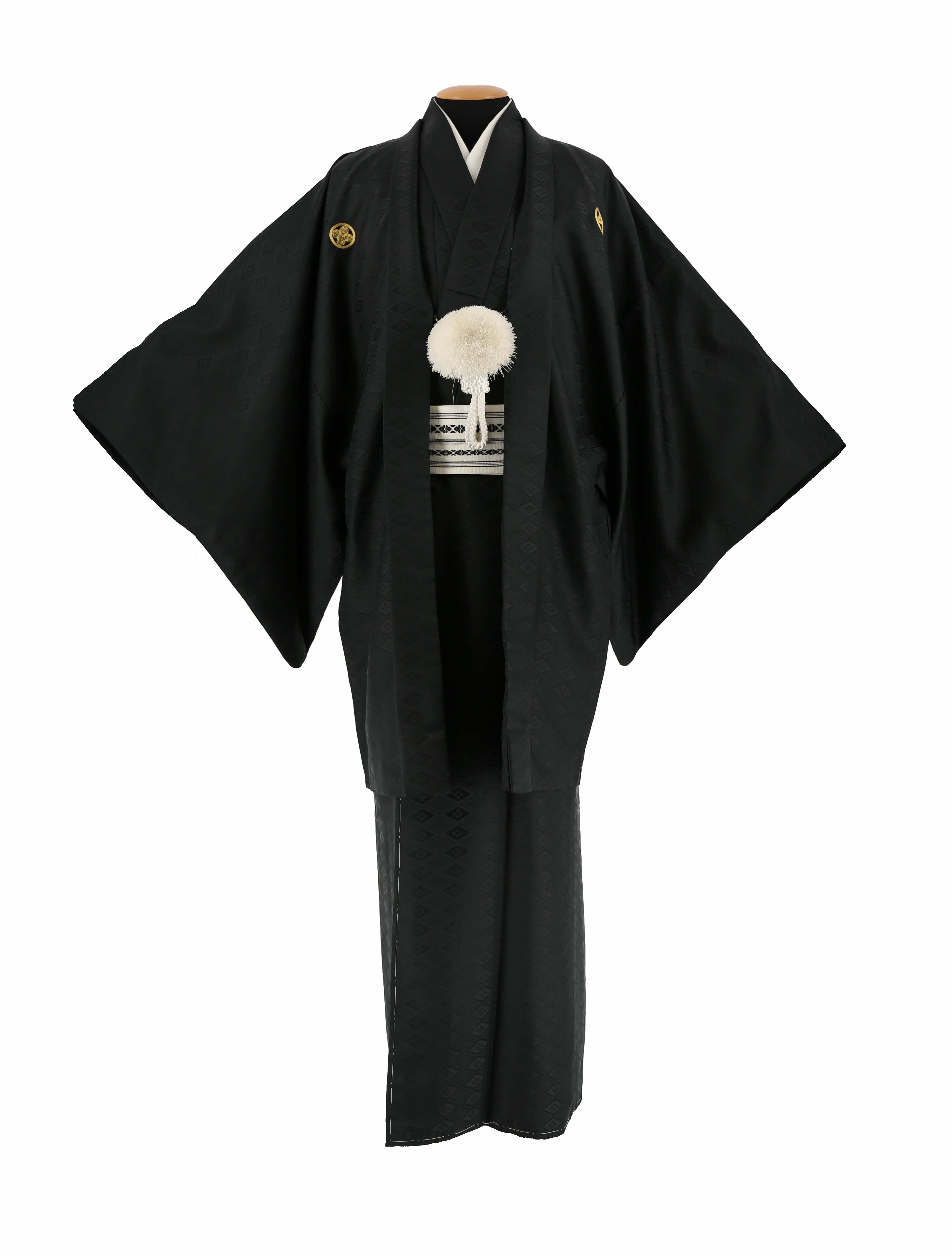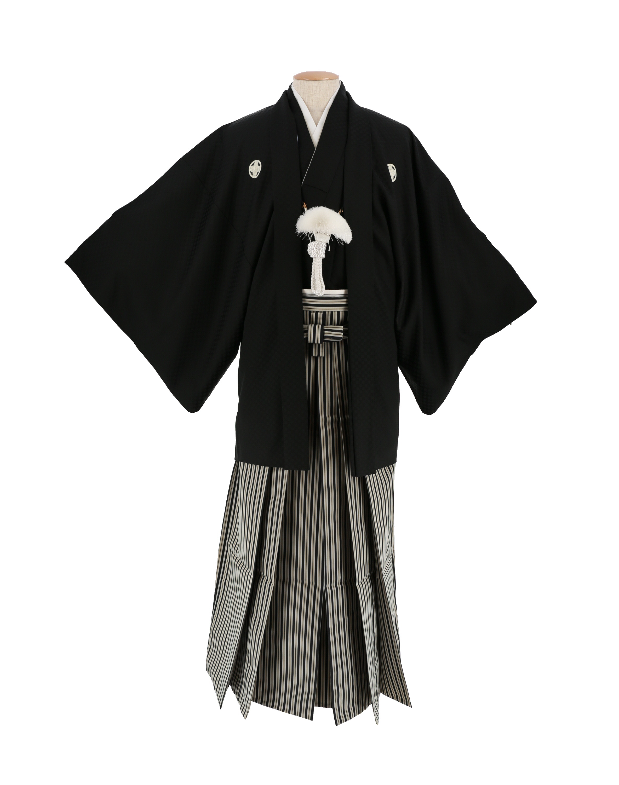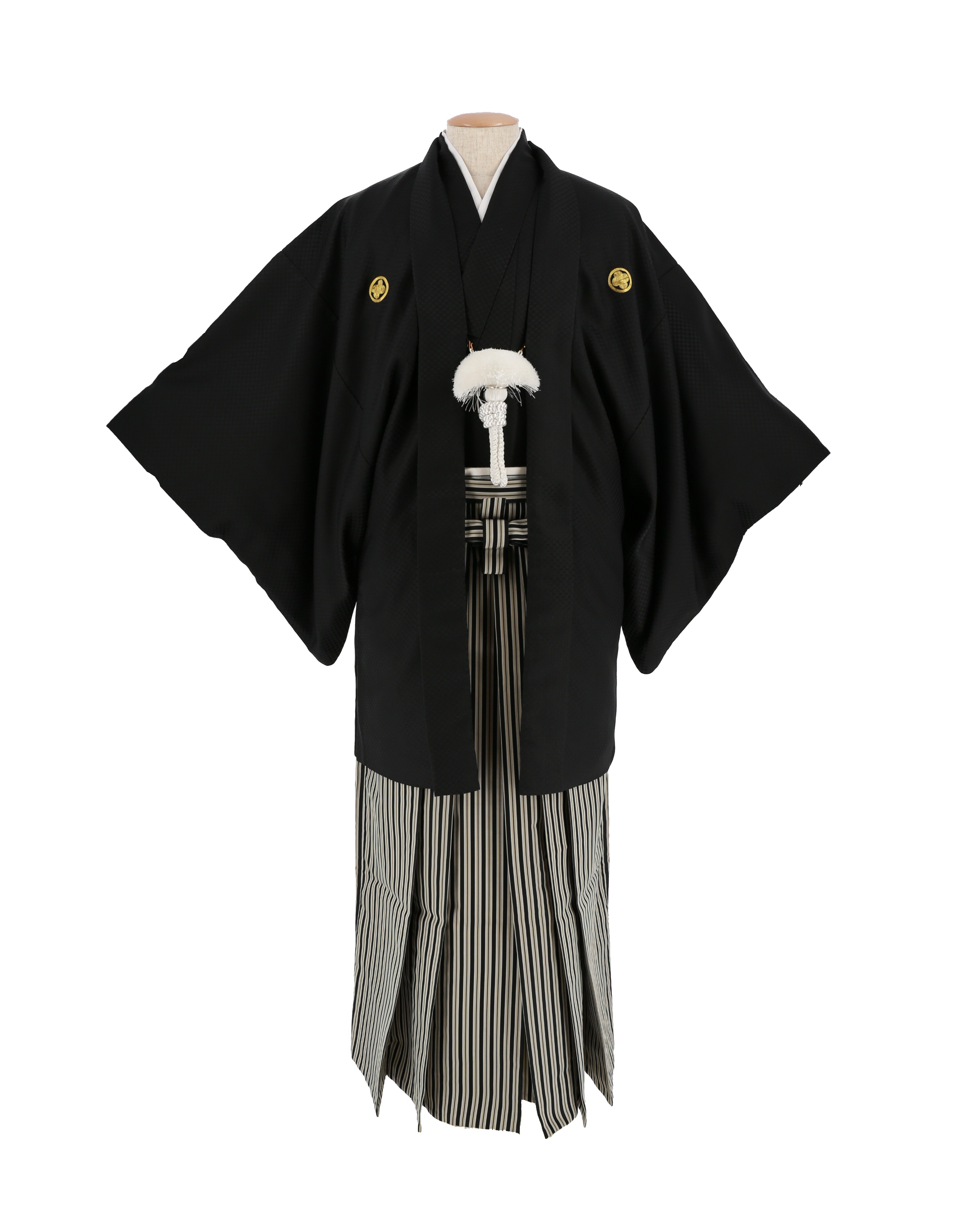 紋付袴レンタル・成人式・結婚式・卒業式|黒色 市松模様[身長175cm対応]No.94