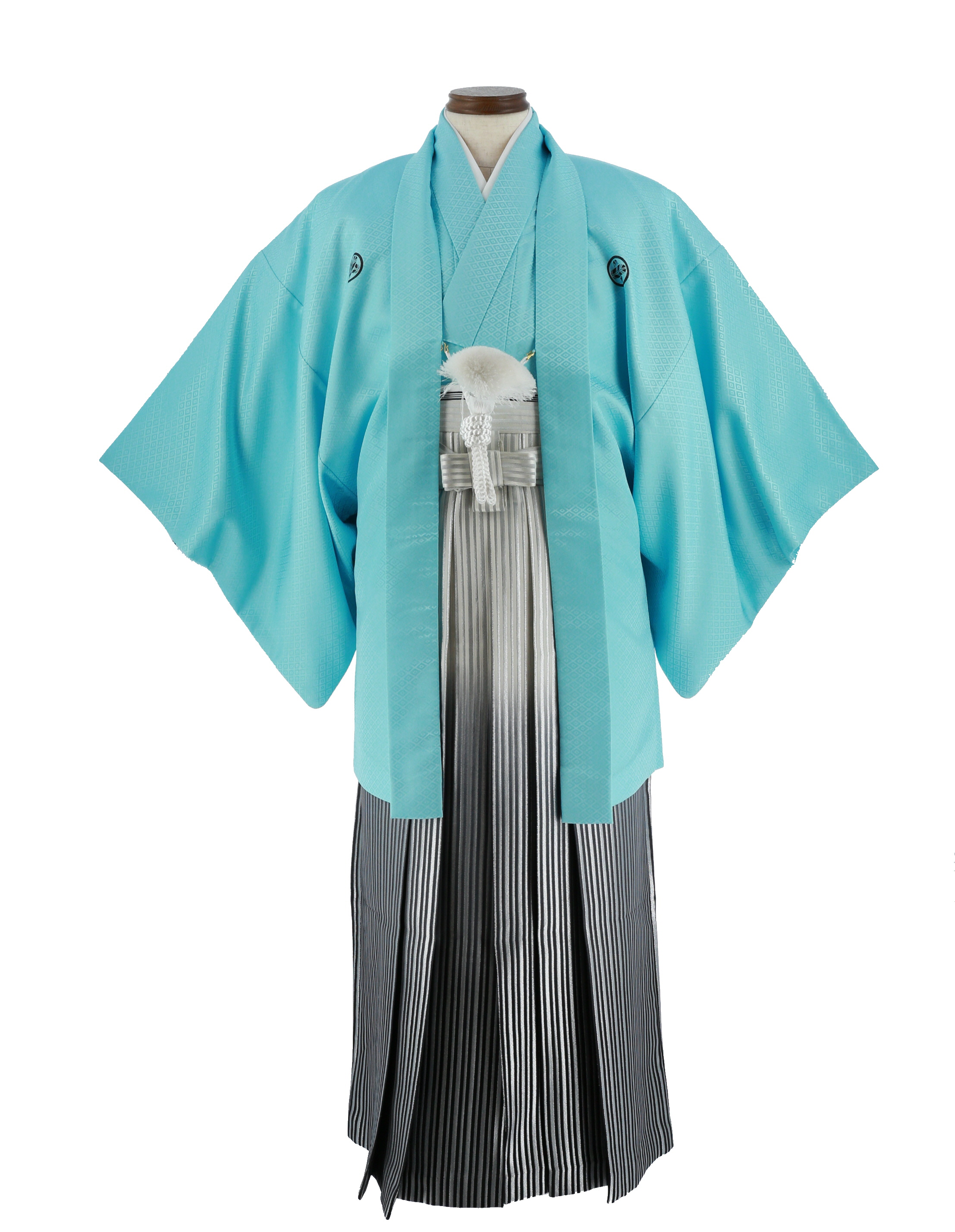 男性用袴単品レンタル(成人式・結婚式・卒業式)黒・シルバーのストライプ[身長175cm]No.666