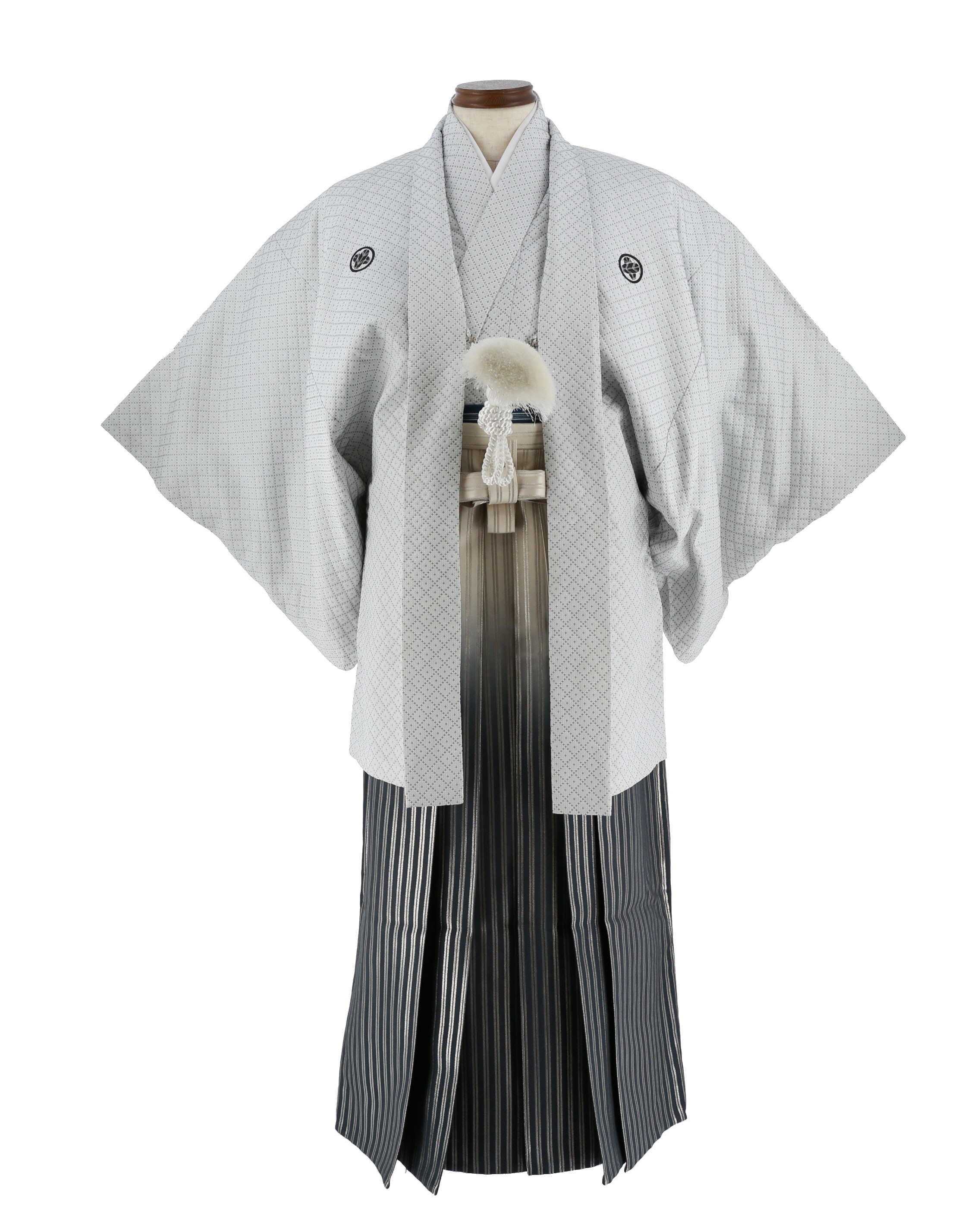 男性用袴単品レンタル(成人式・結婚式・卒業式)黒・シルバーのストライプ[身長180cm]No.670