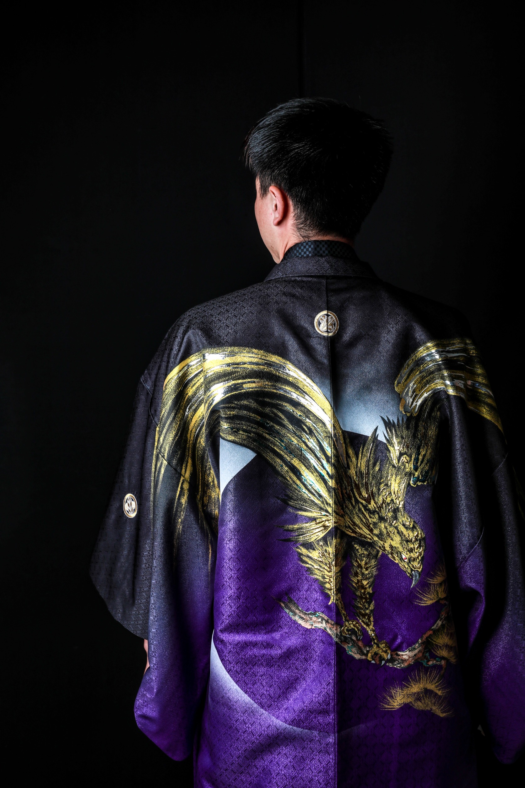 紋付袴レンタル・成人式・結婚式・卒業式|黒色 うるし[身長175cm対応]No.116