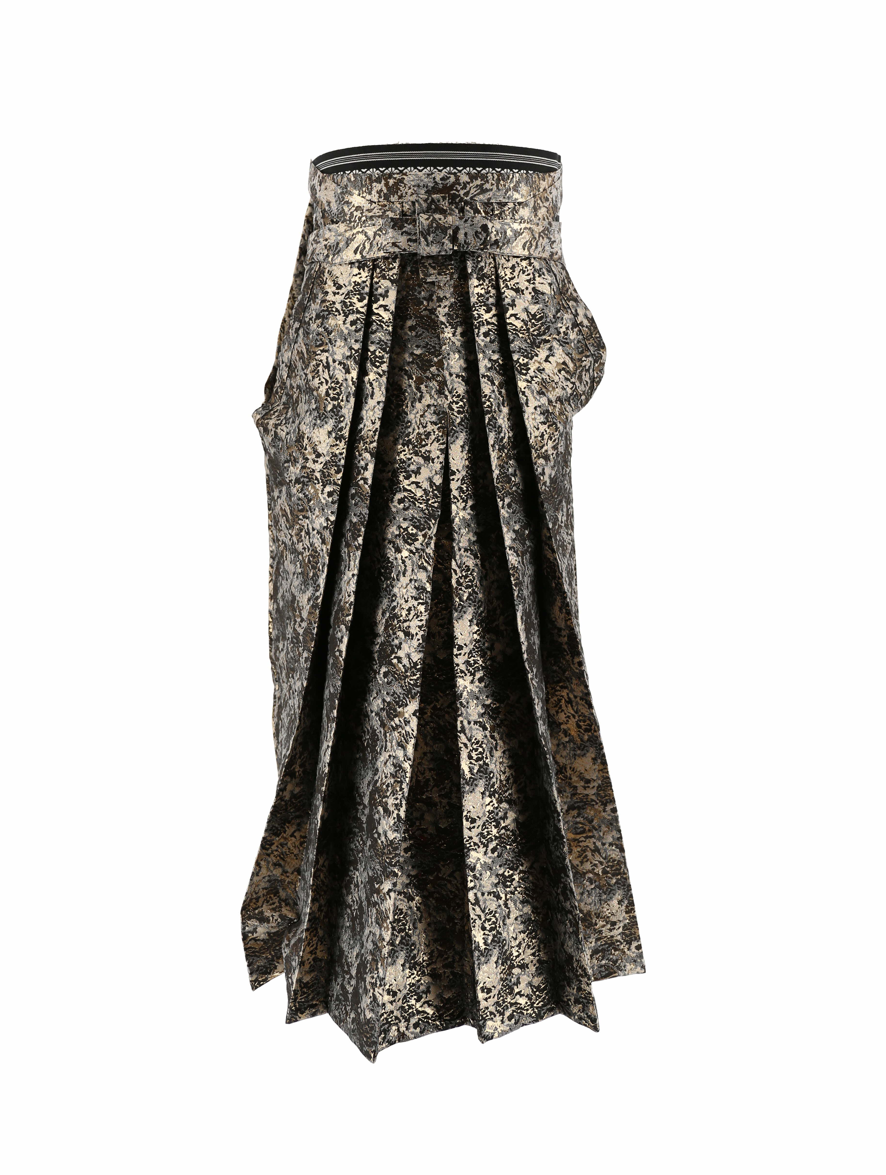 男性用袴単品レンタル(成人式・結婚式・卒業式)グレー黒ゴールドの迷彩柄[身長175cm]No.320