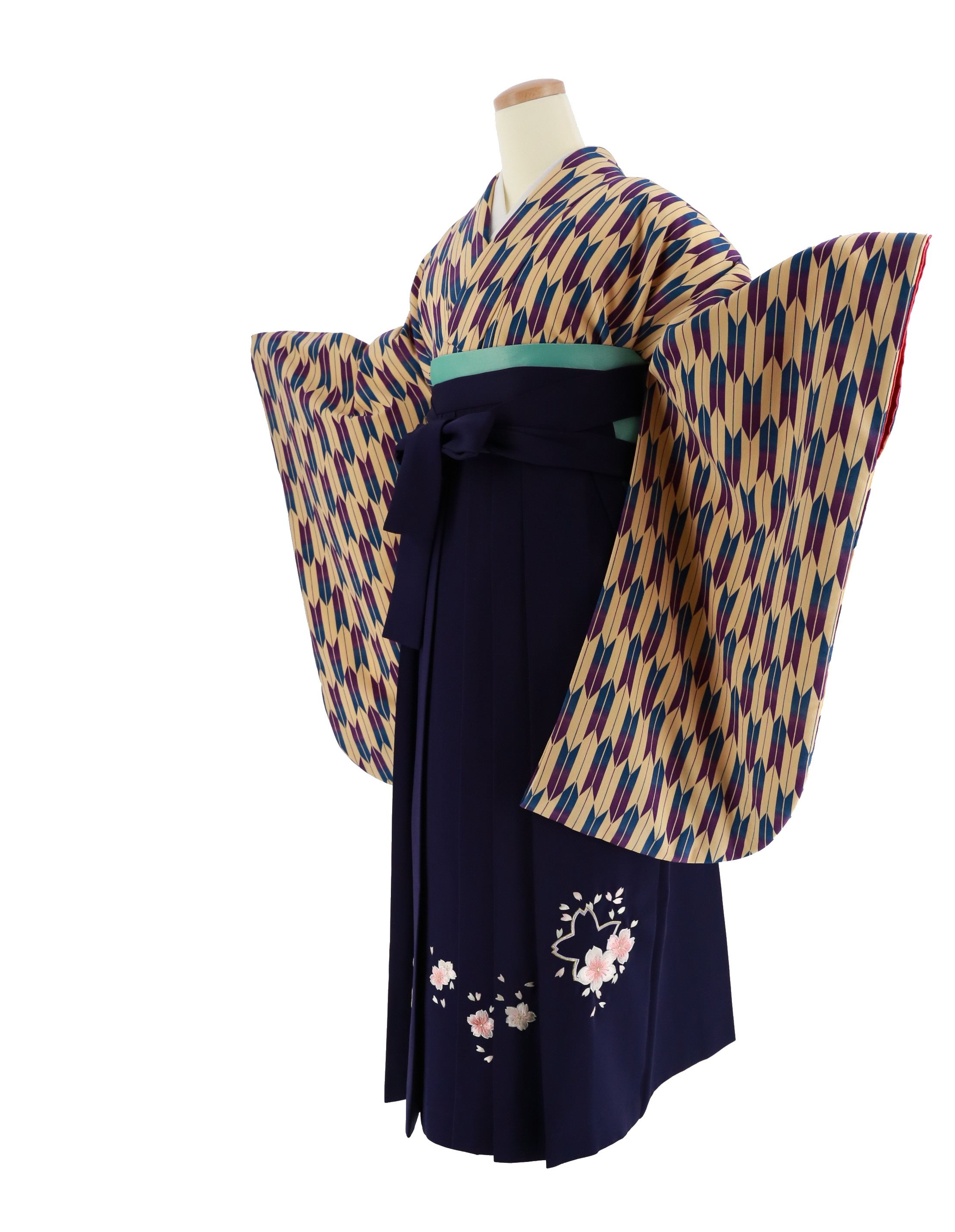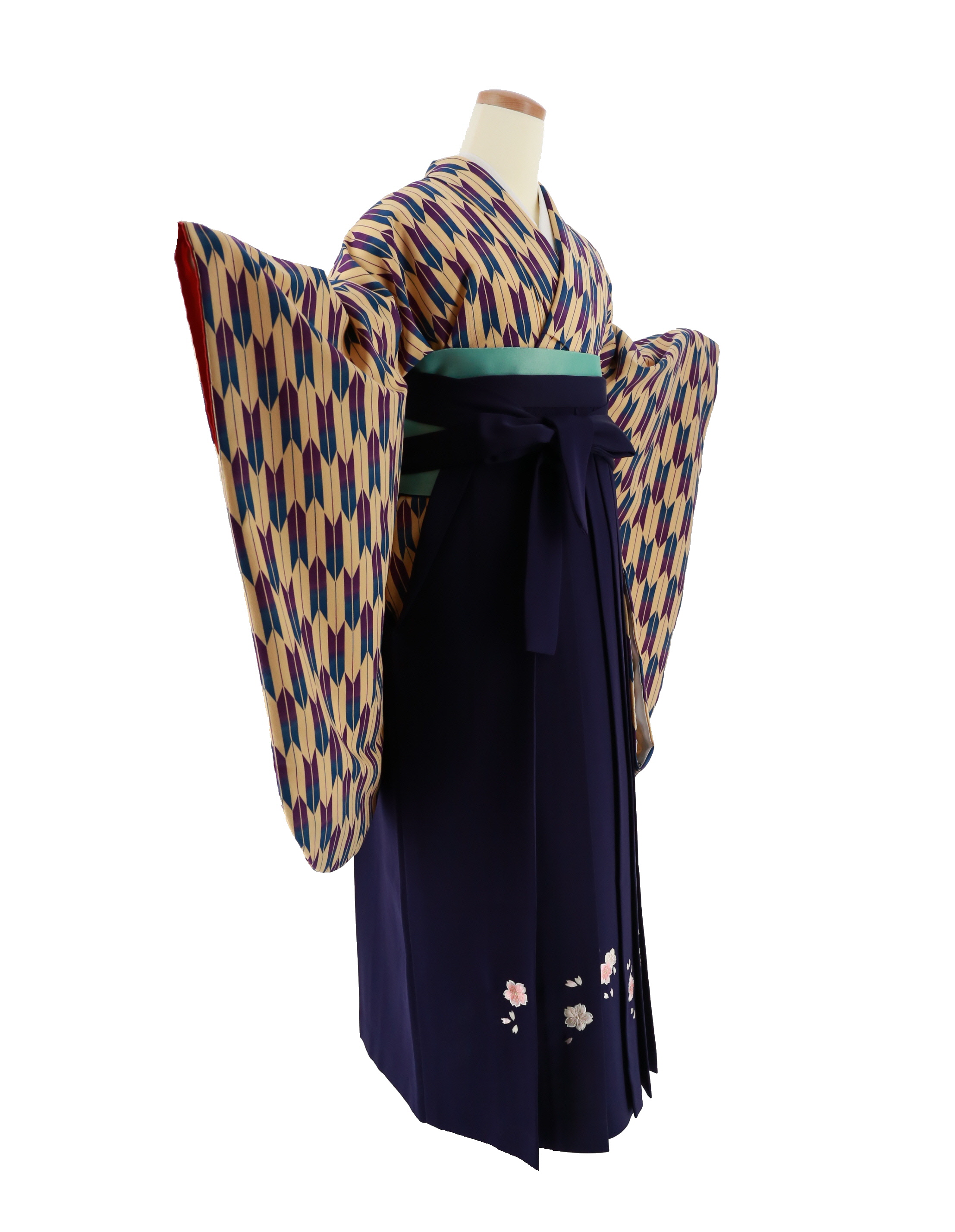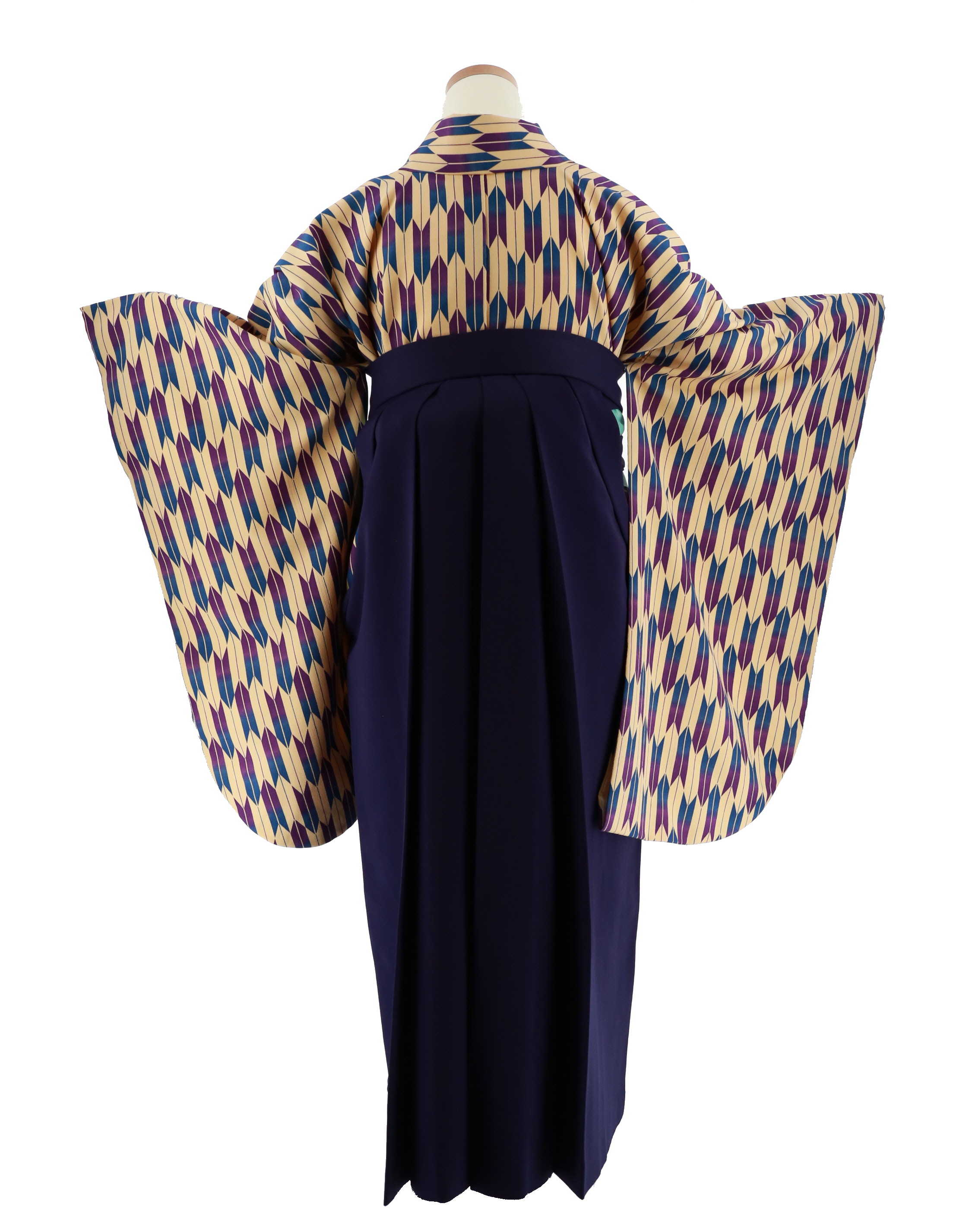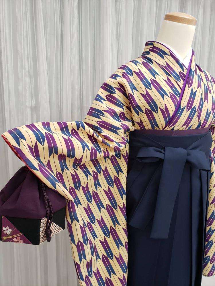 卒業式袴レンタルNo.291[レトロ]ベージュ地・紫×青矢絣