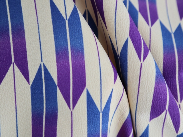 紫と青のグラデーションが美しい矢絣柄。