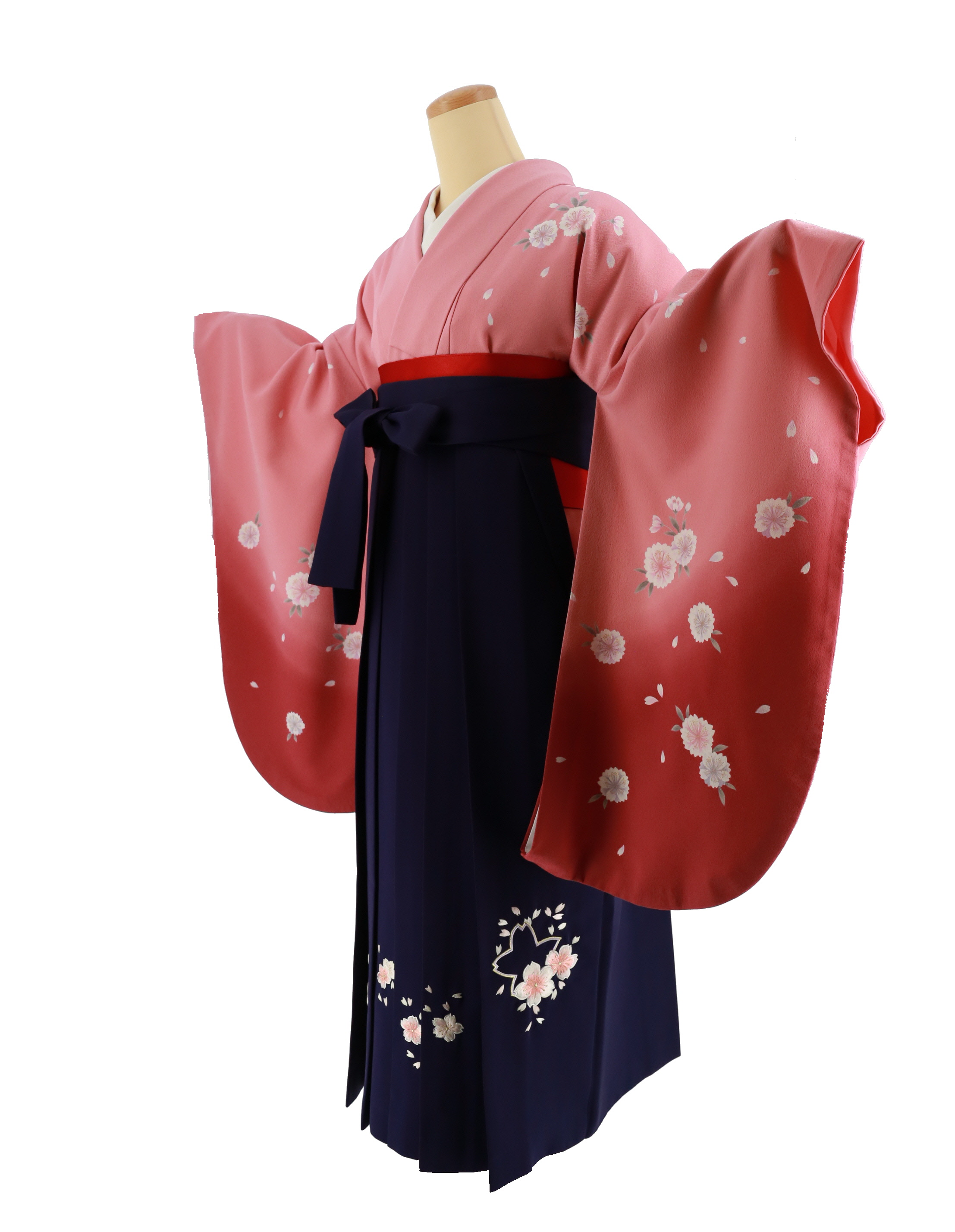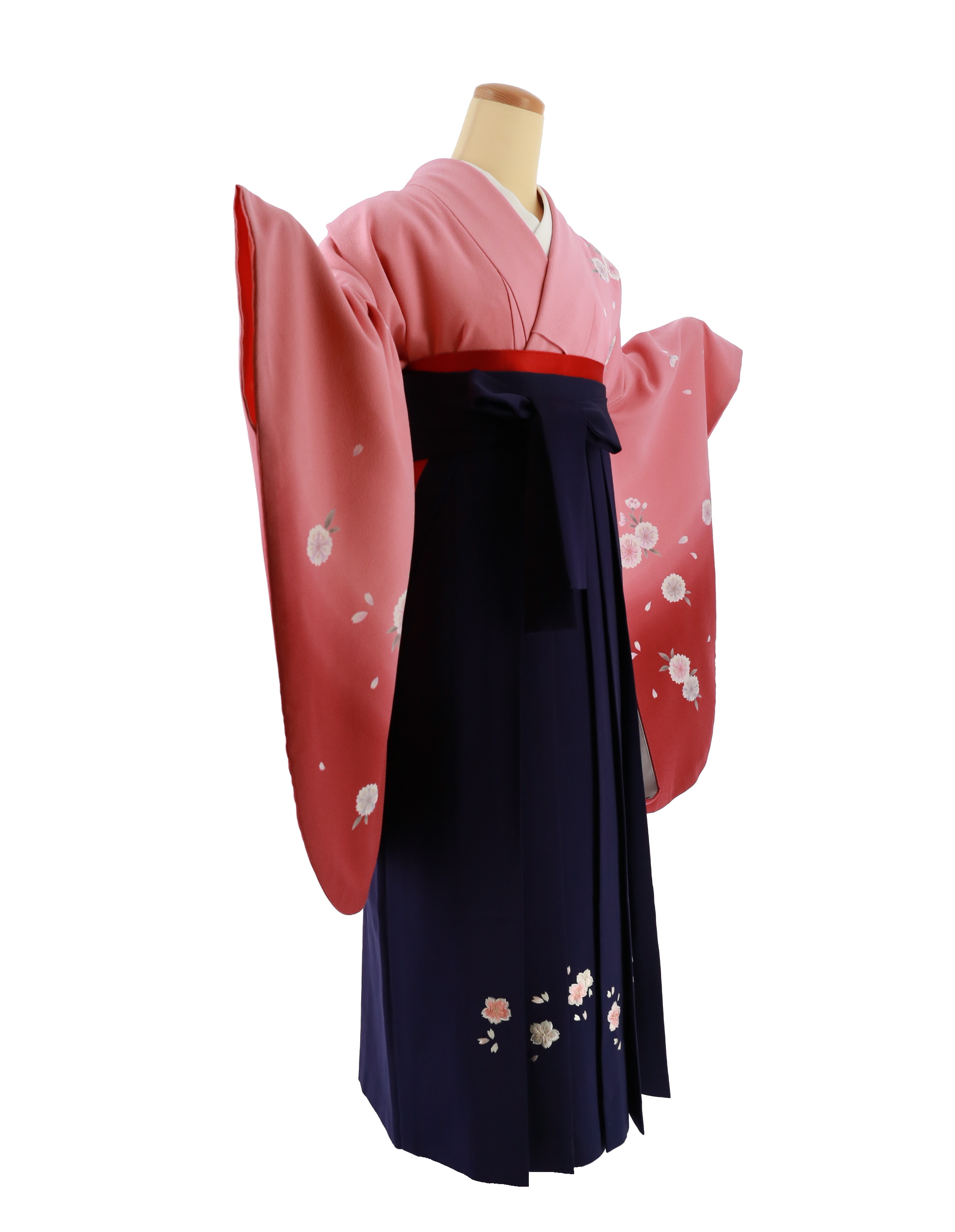 卒業式袴レンタルNo.519[シンプル]ピンク×エンジグラデ・八重桜