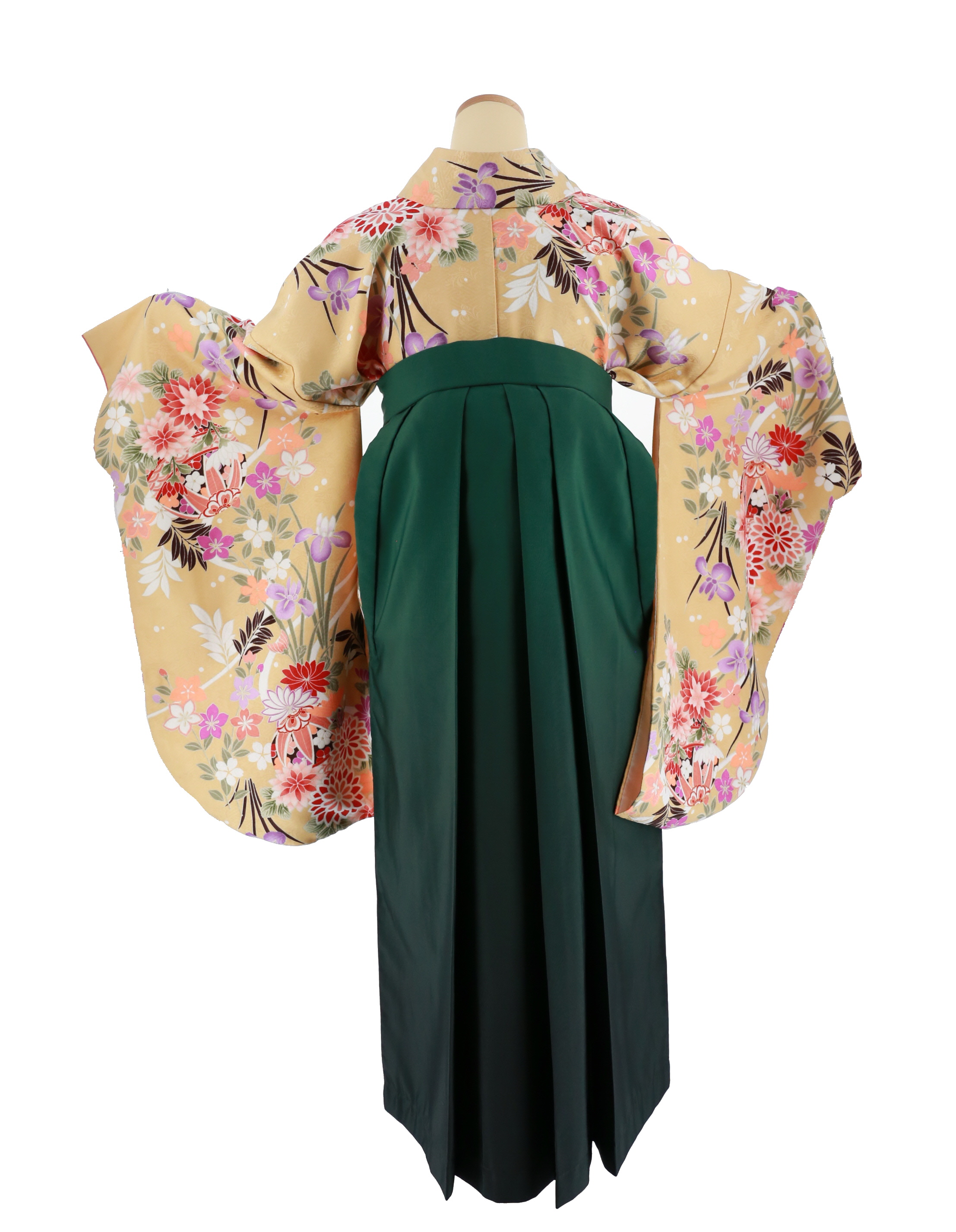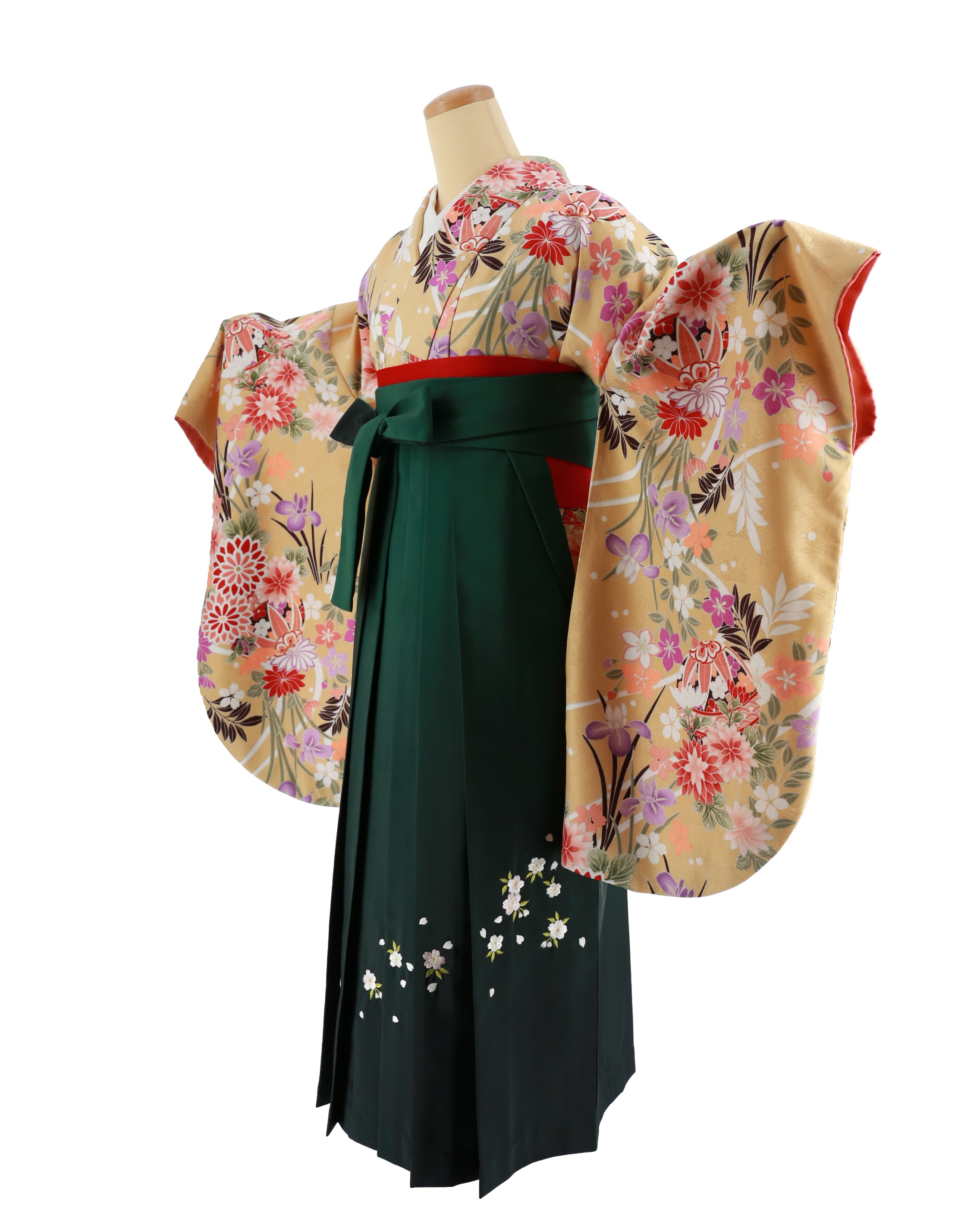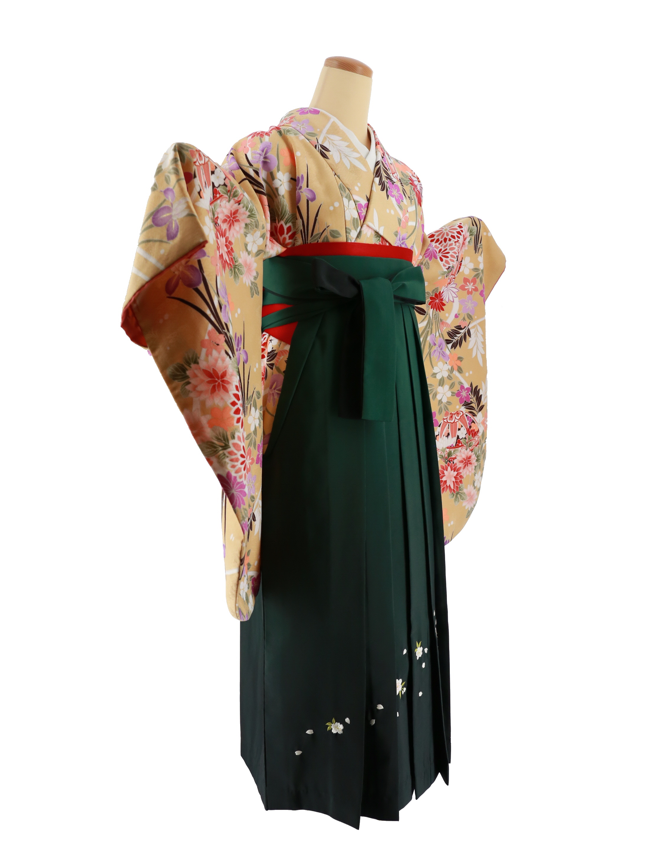 卒業式袴レンタルNo.740[レトロモダン]ベージュ・赤菊・紫桔梗・鞠