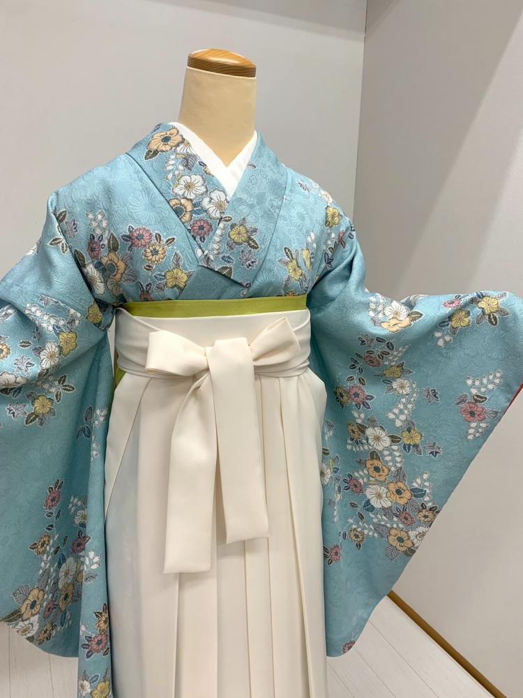 卒業式袴レンタルNo.551[Lサイズ]ミントグリーン・青緑・辻が花風