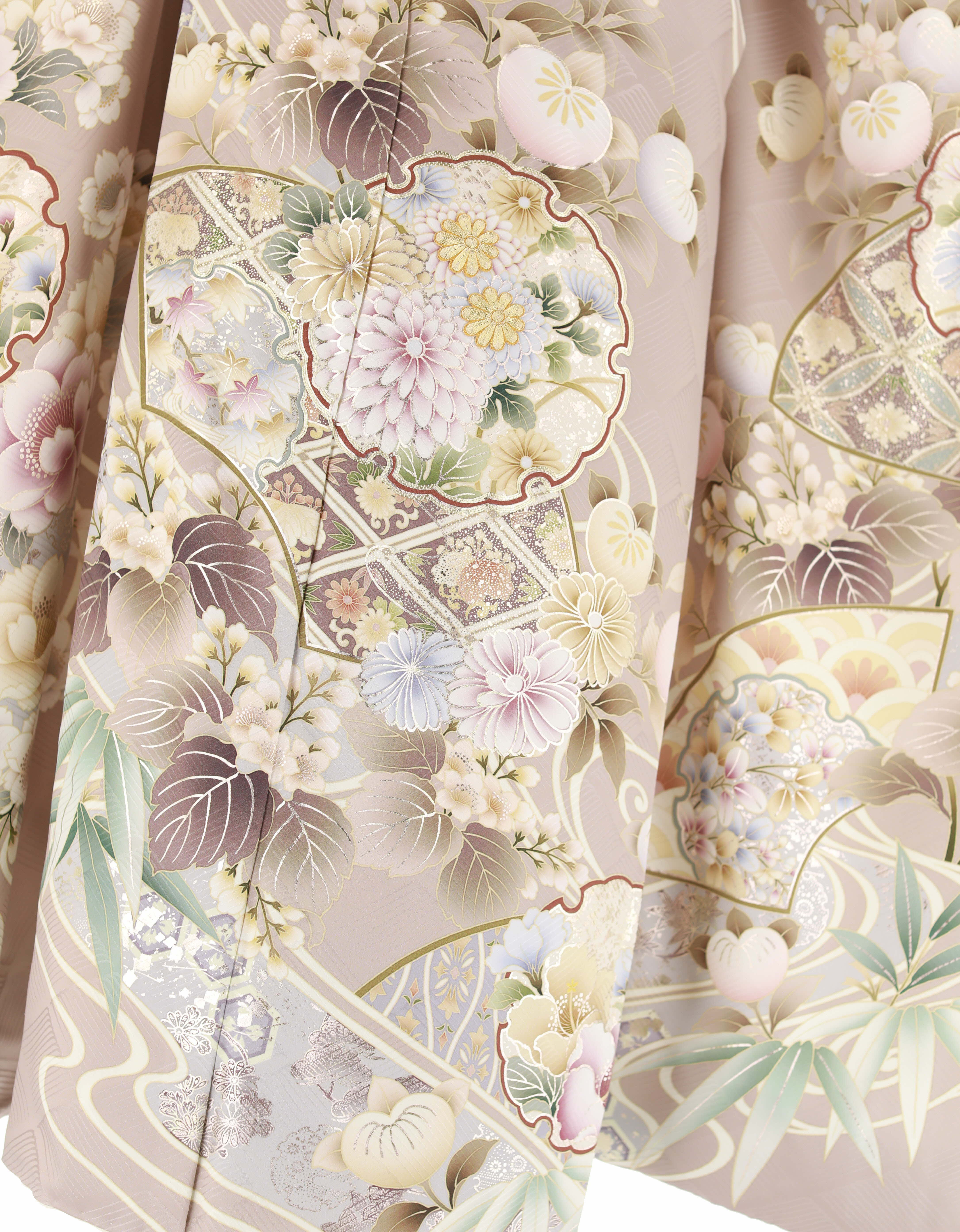 参列振袖[キレイ系]くすみピンクに雪輪と花々、流水[身長169cmまで]No.1080