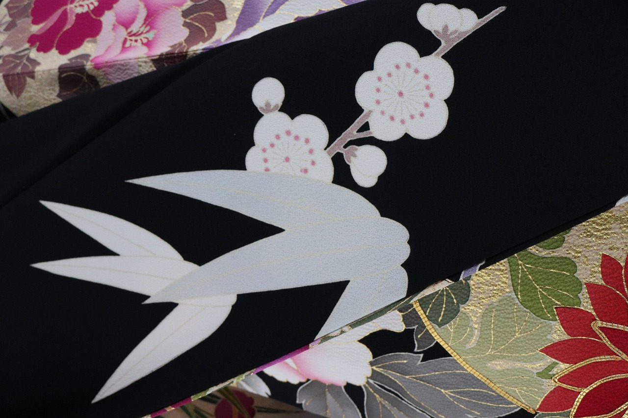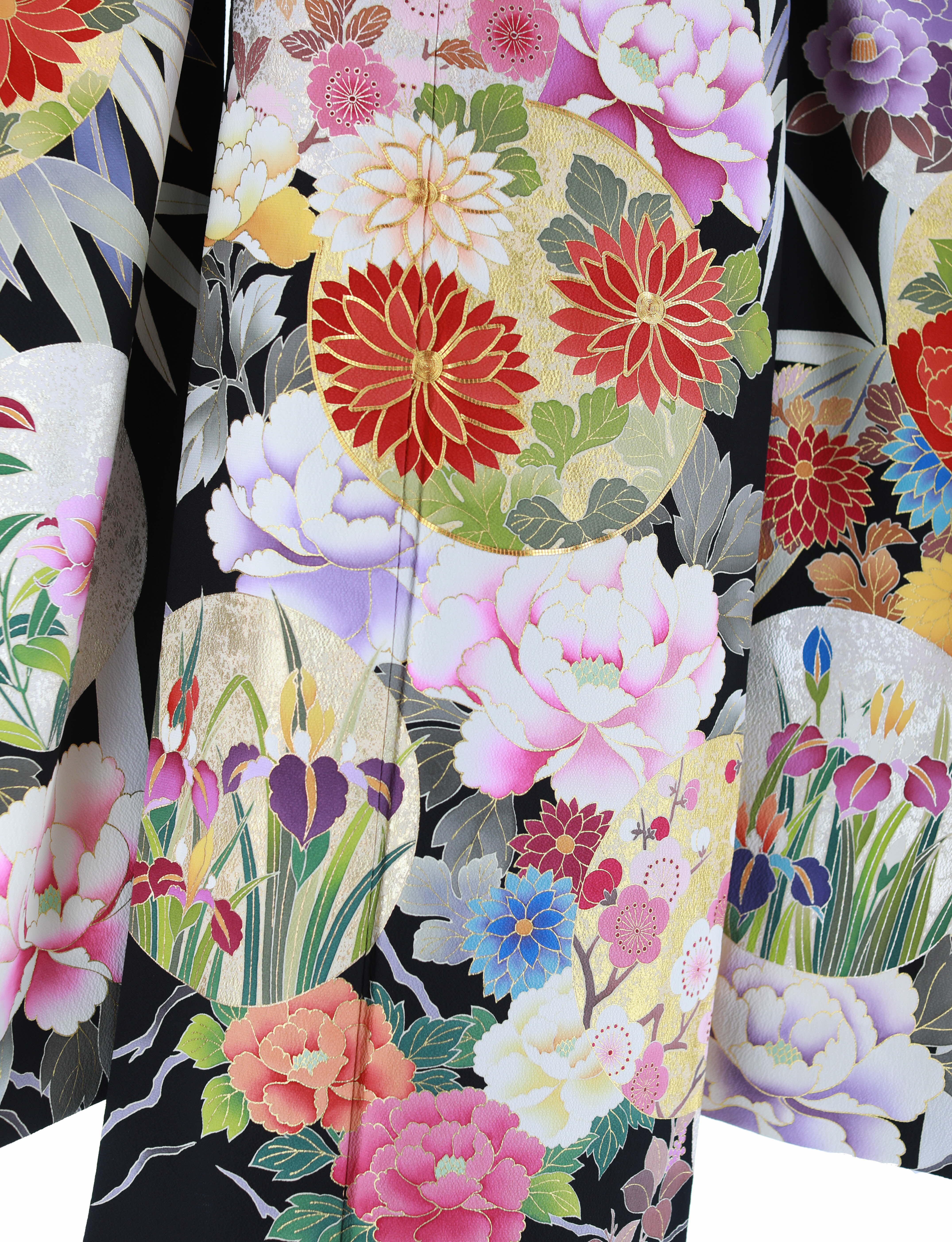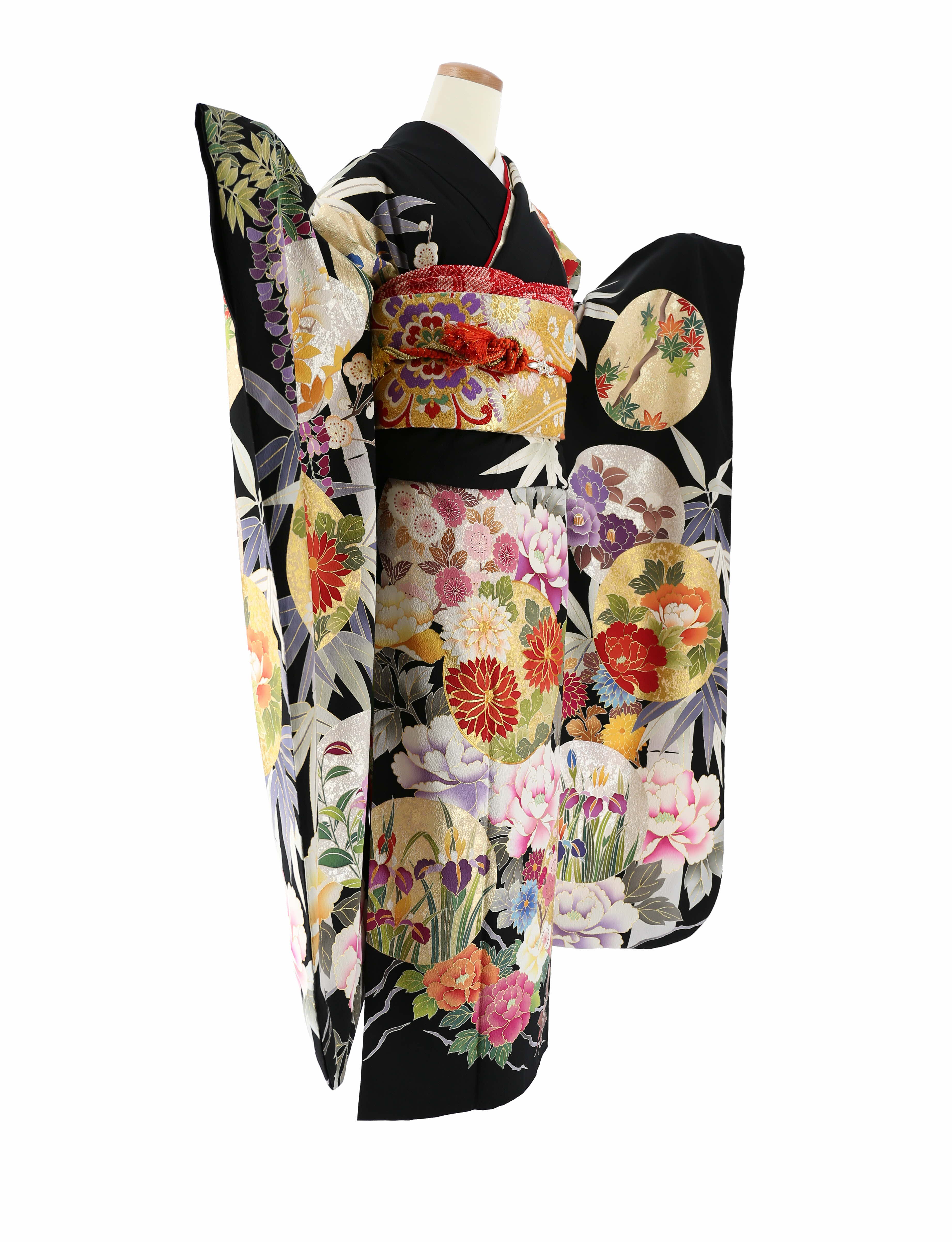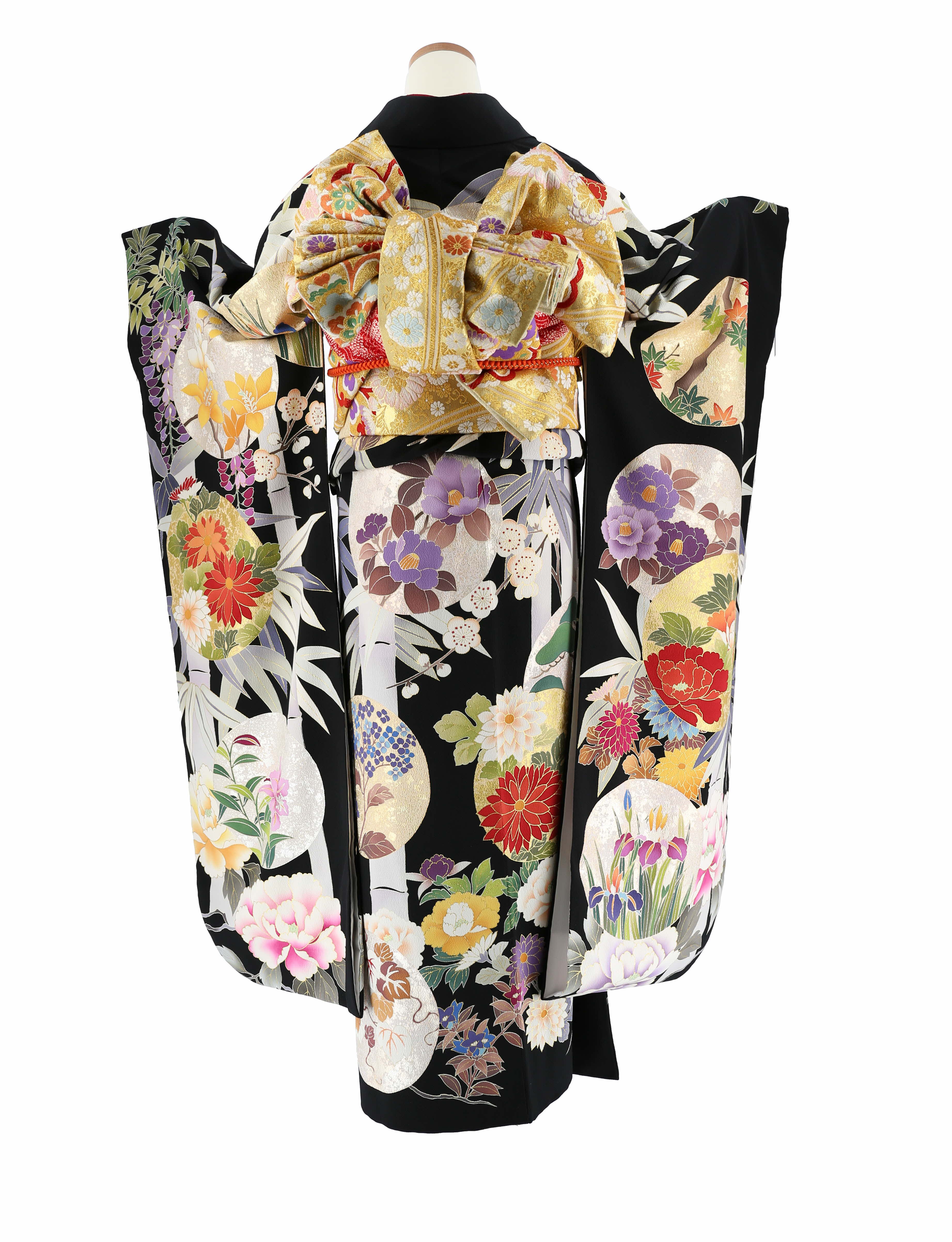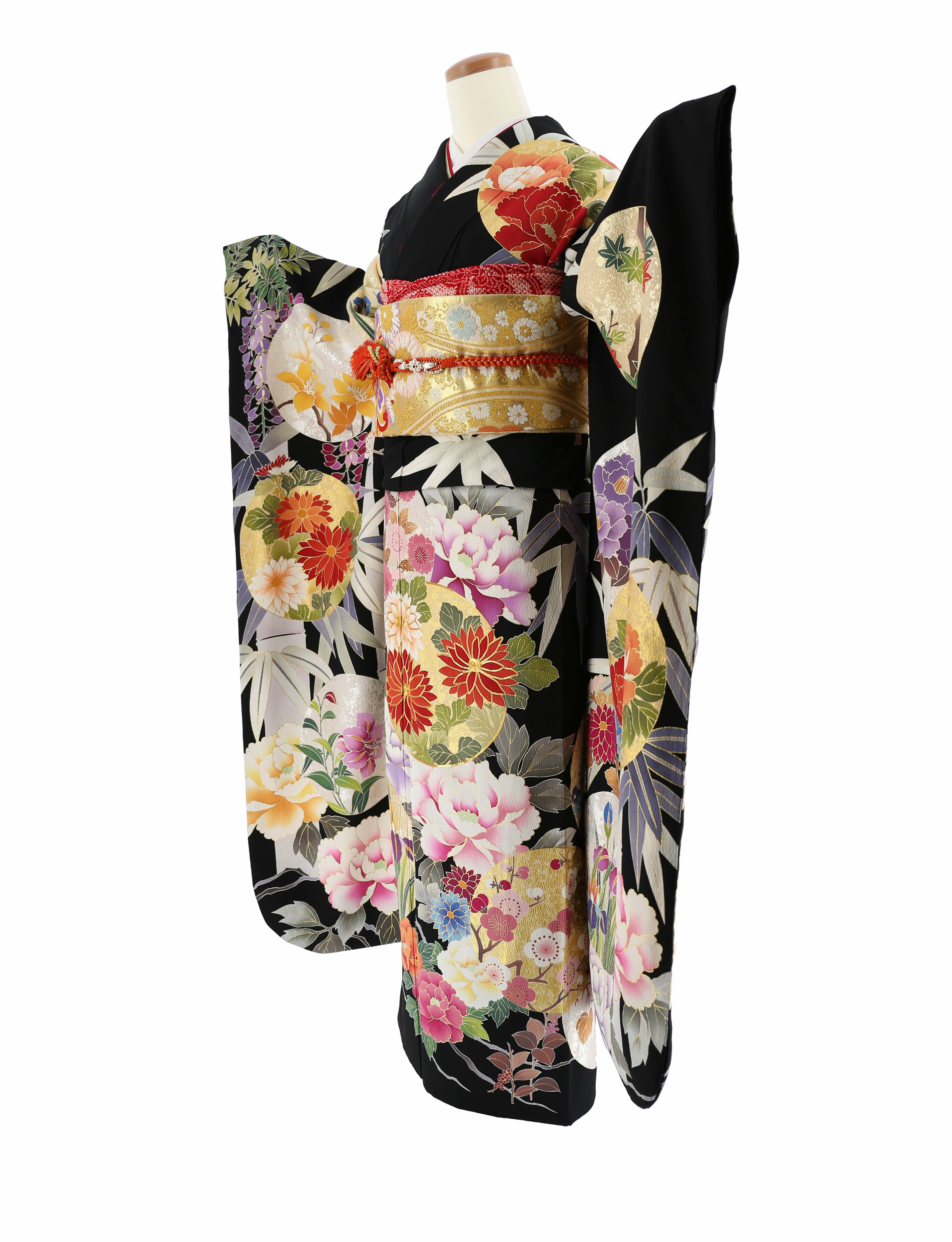 参列振袖[吉澤友禅]漆黒に竹と四季の花々[身長174cmまで]No.1092