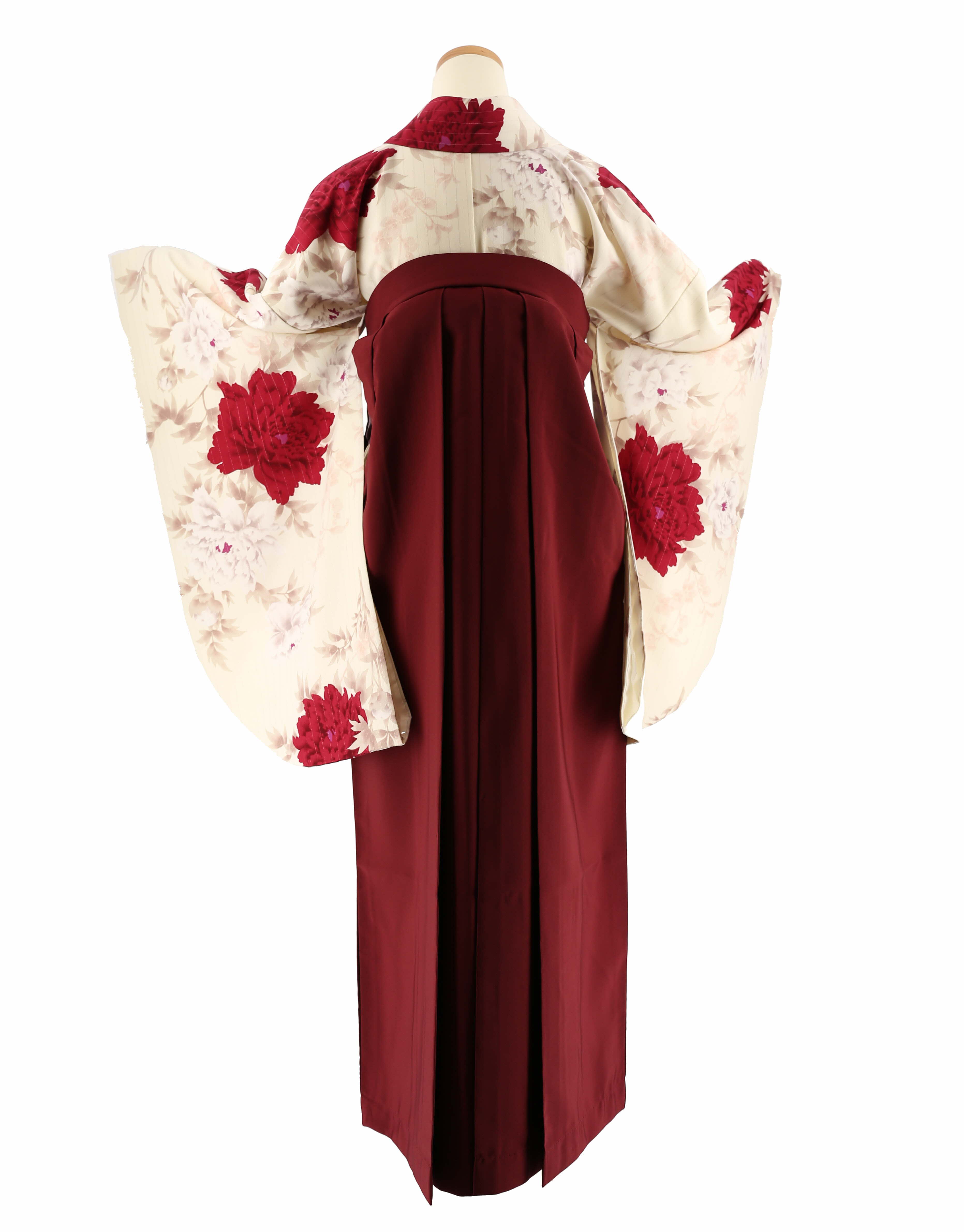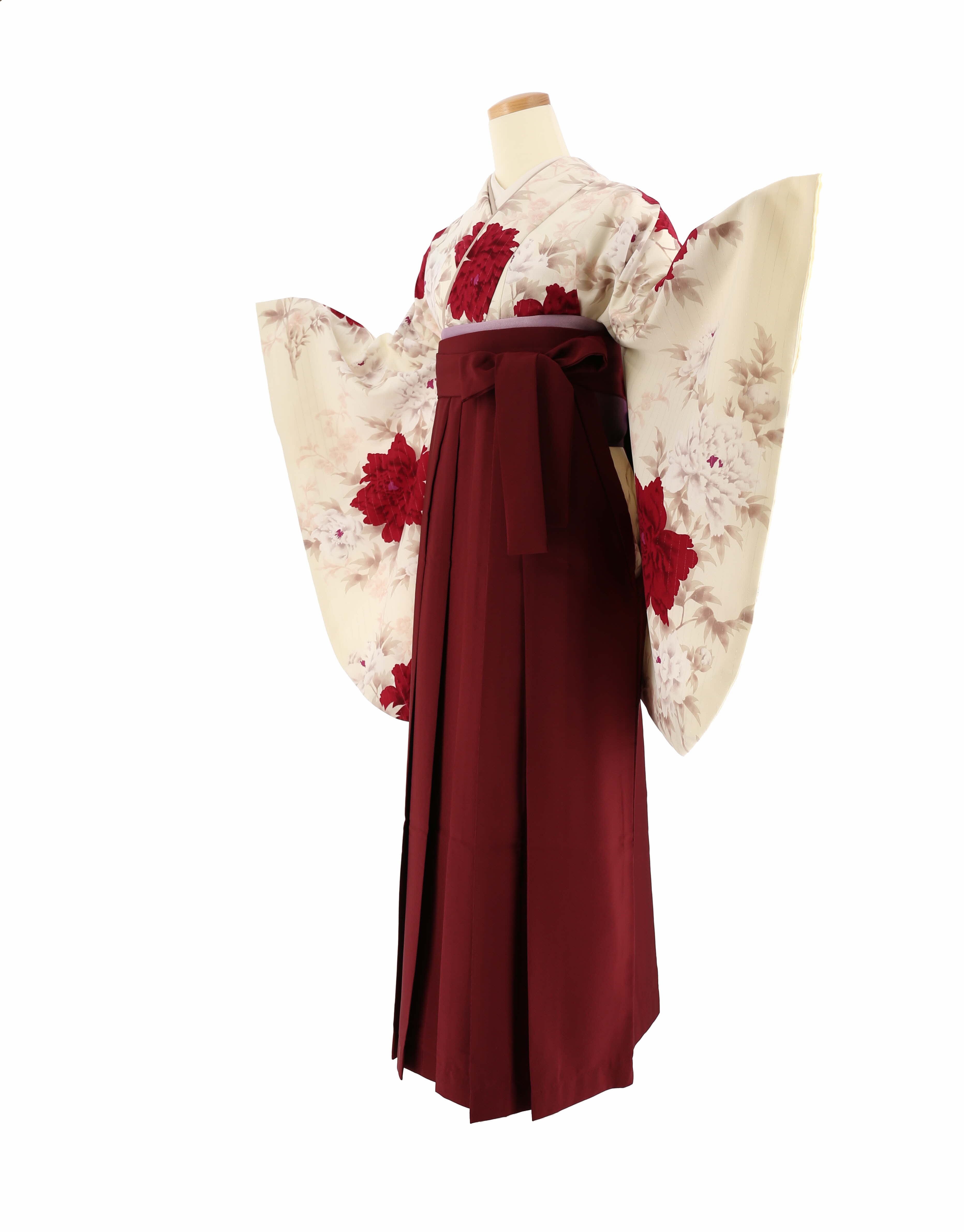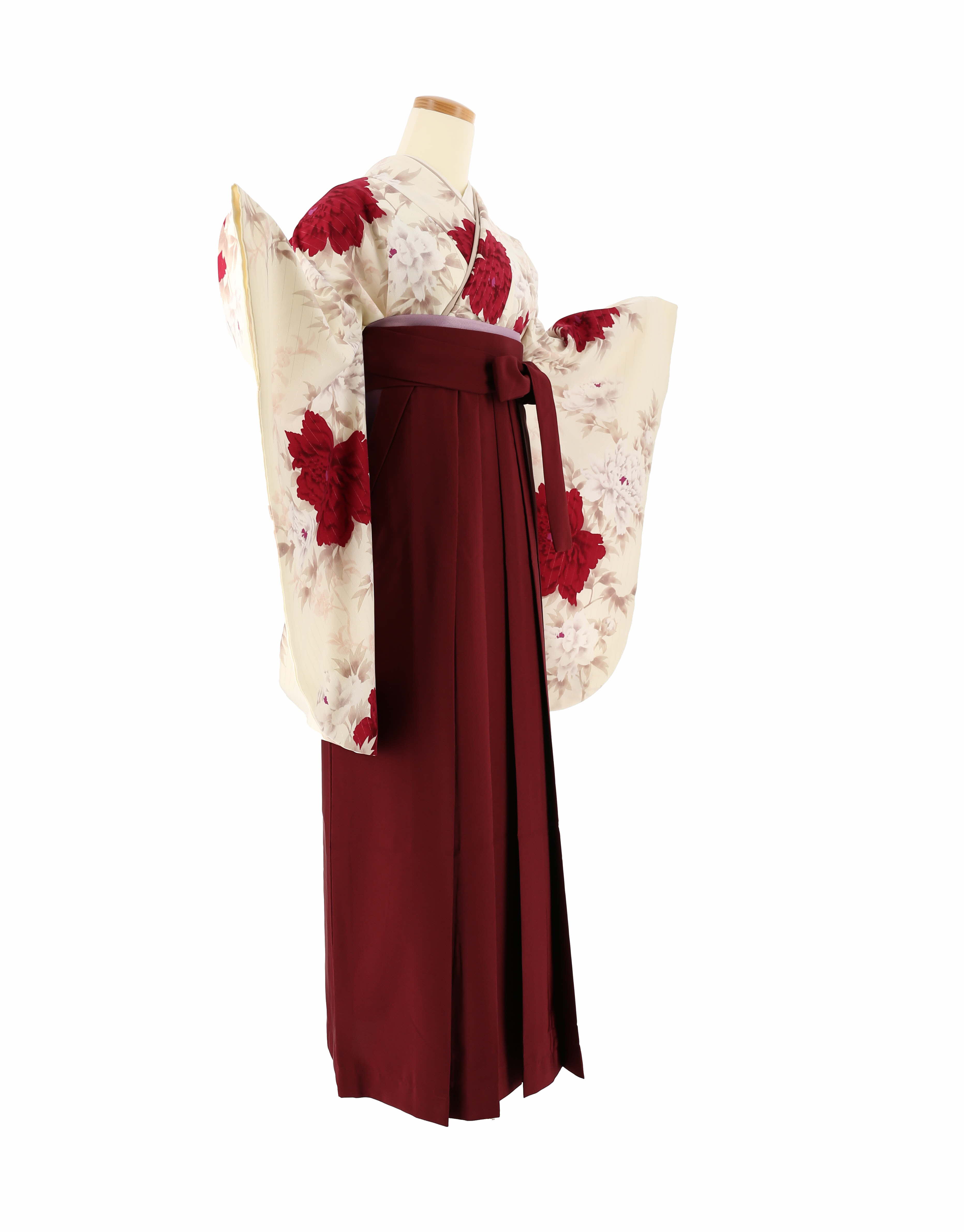 卒業式袴レンタル[桜田ひより][人気柄]オフホワイトに白とワインレッドの牡丹No.822
