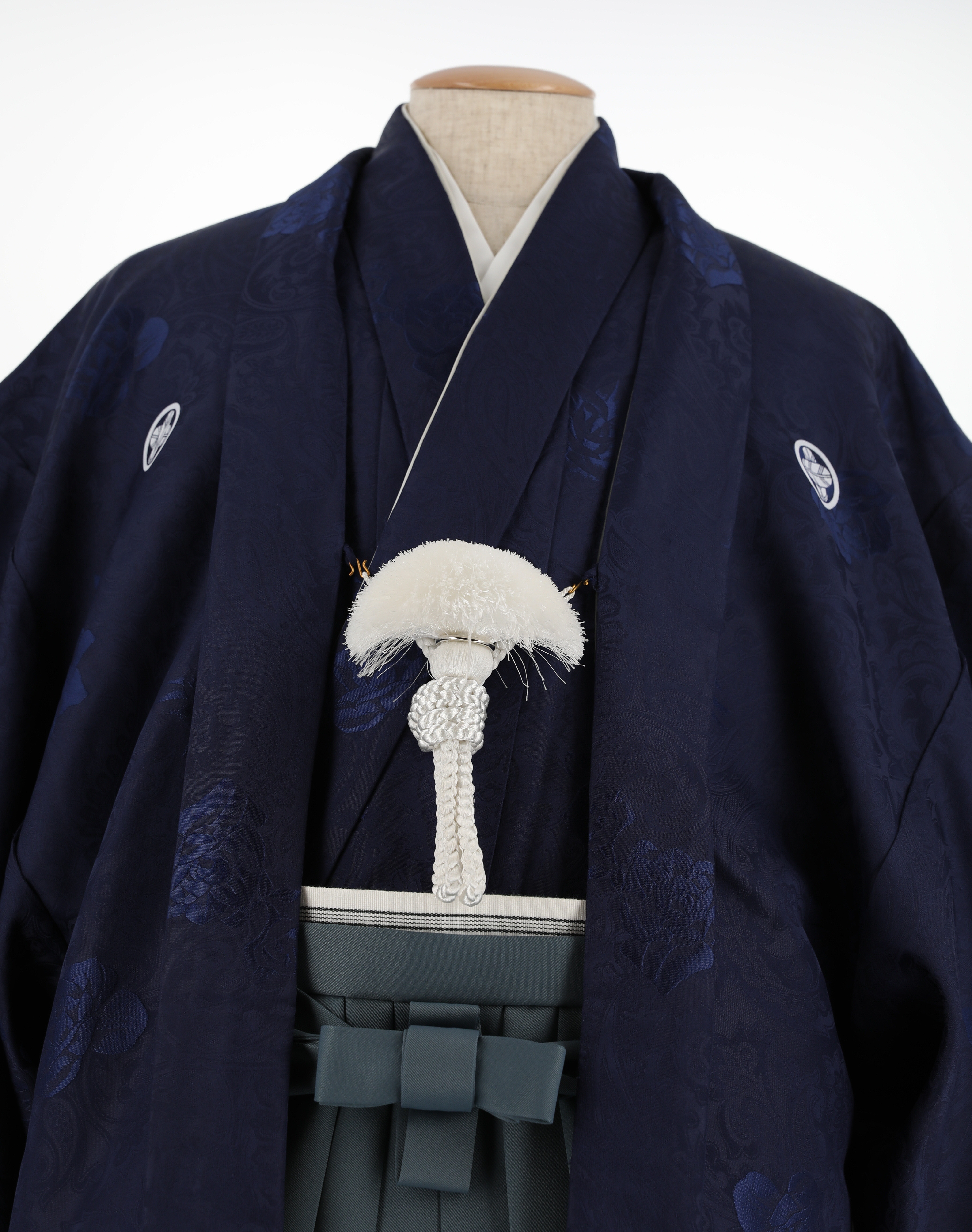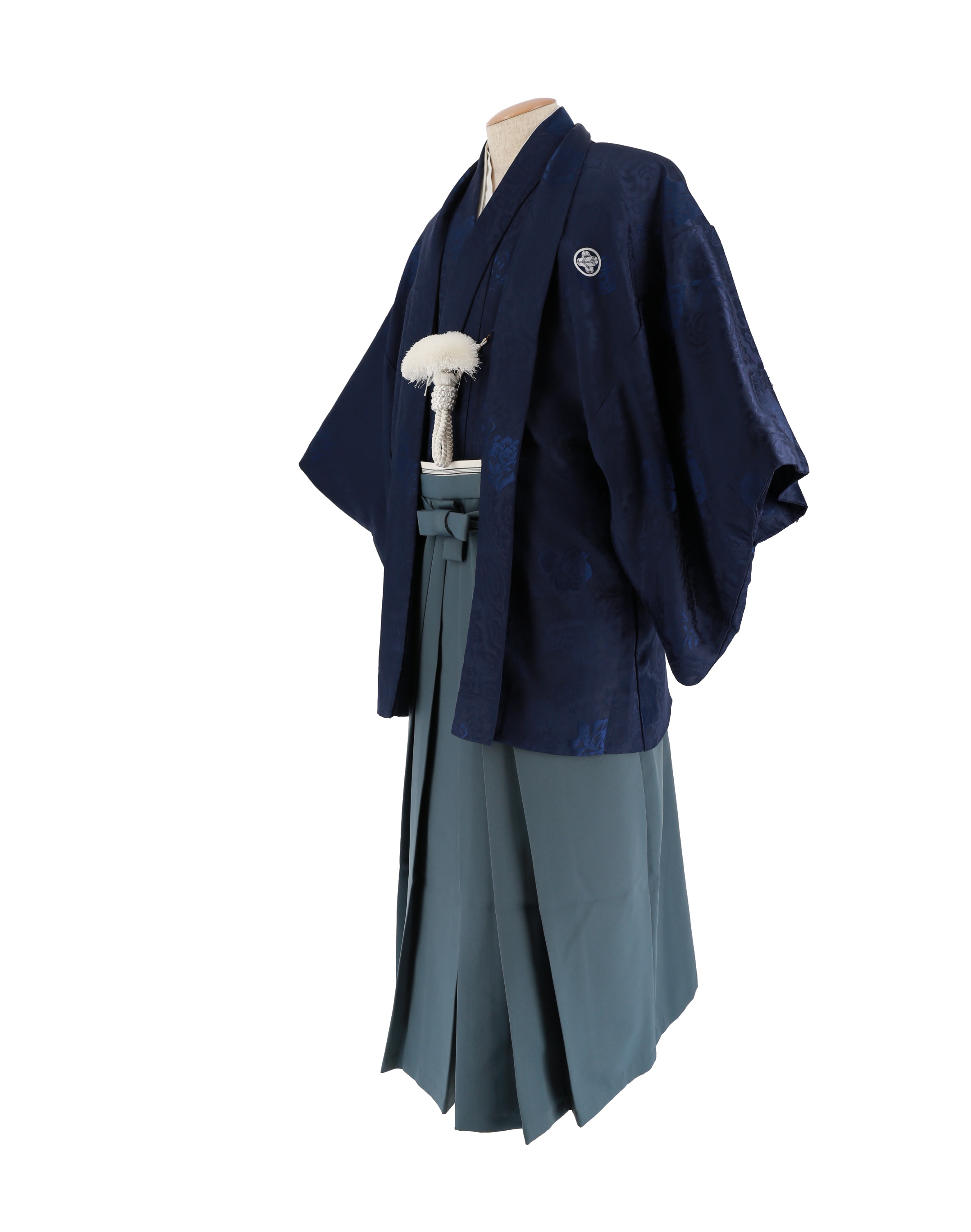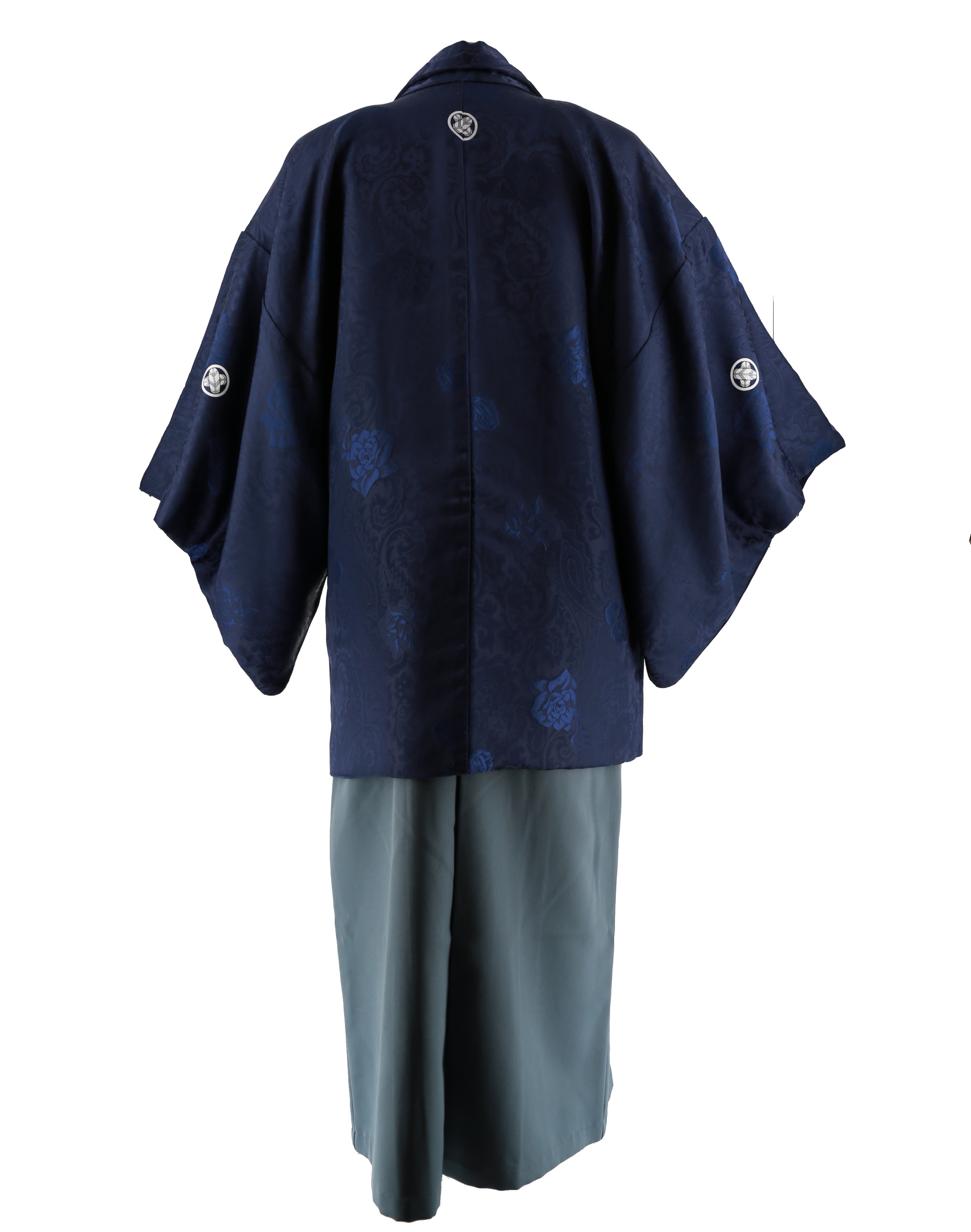 紋付袴レンタル・成人式・結婚式・卒業式|紺色 バラ模様[身長175-180cm対応]No.103