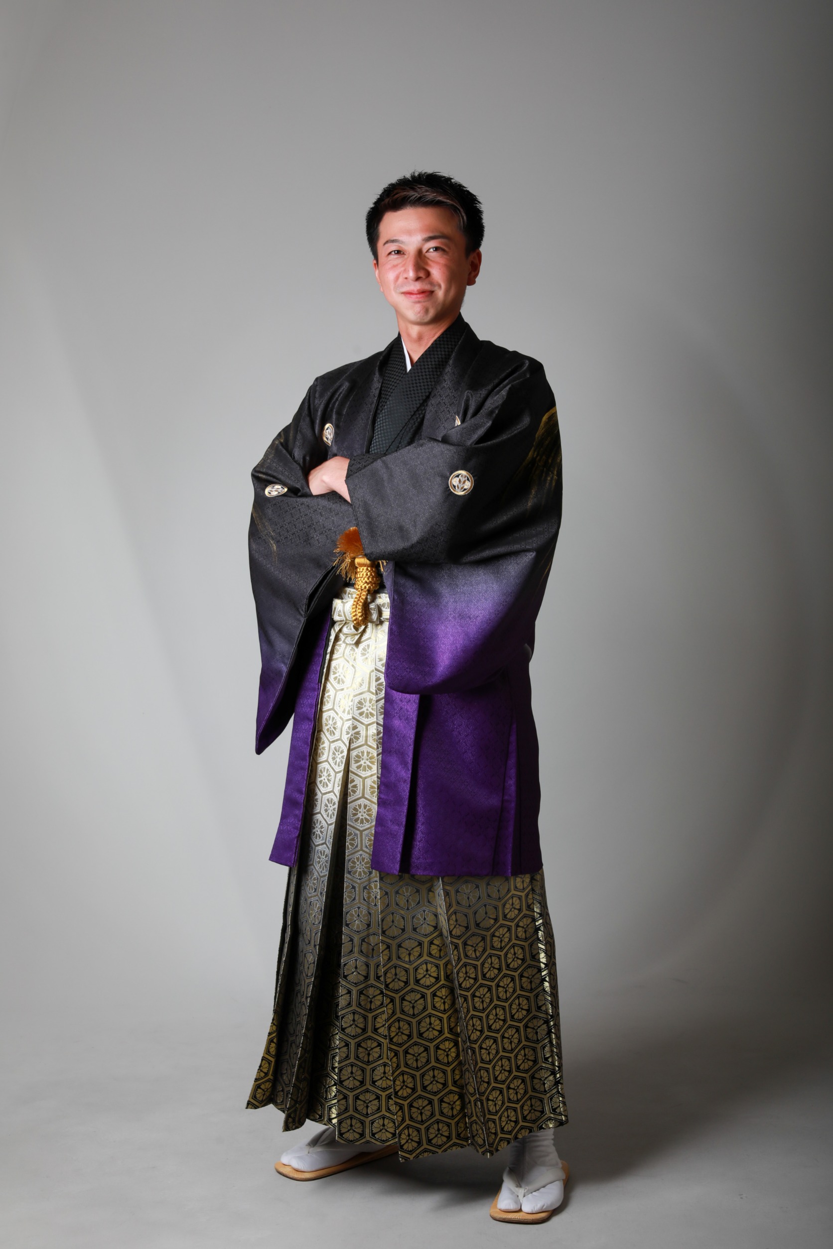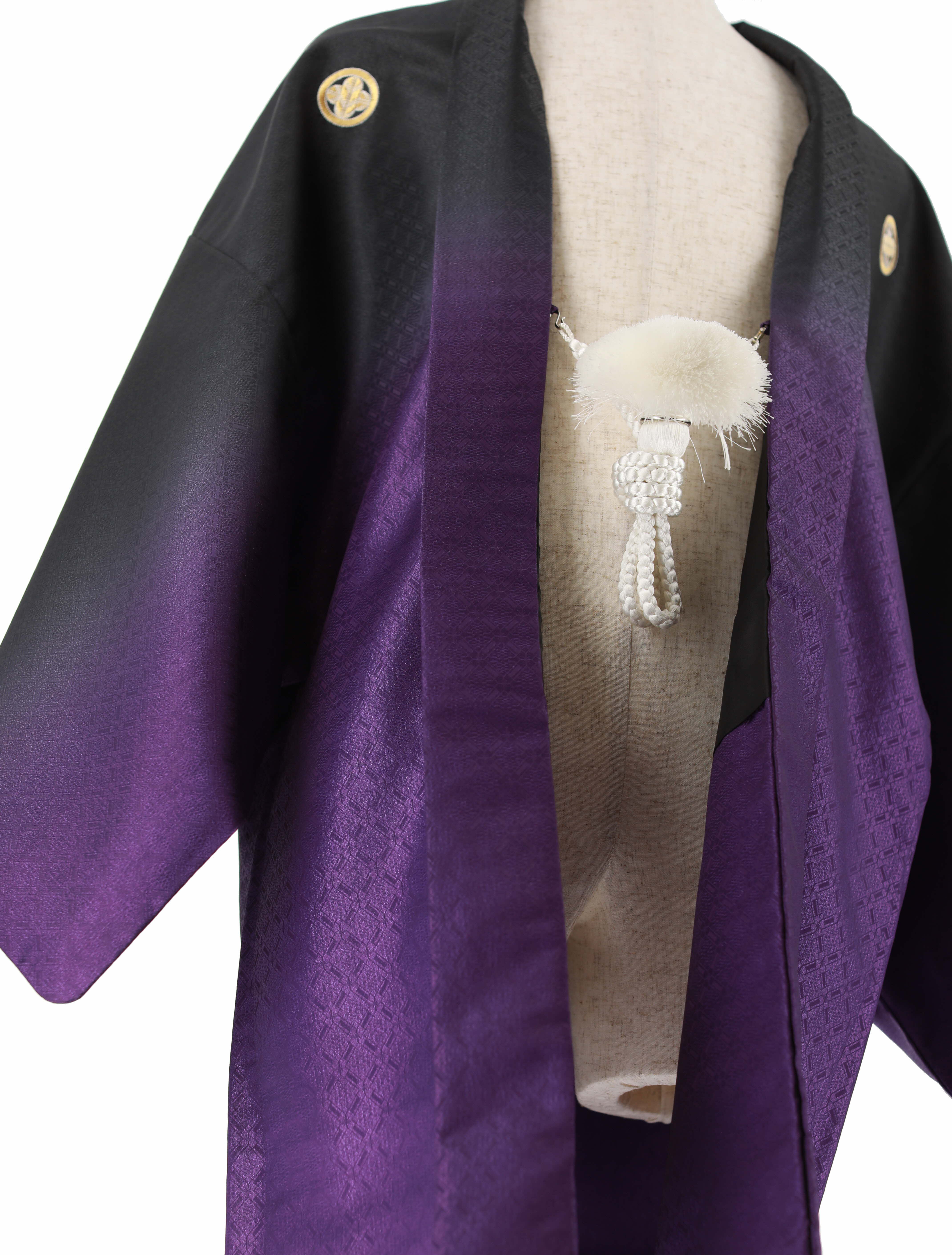 紋付袴レンタル・成人式・結婚式・卒業式【羽織】黒から紫のグラデーション 金の鷹No.293