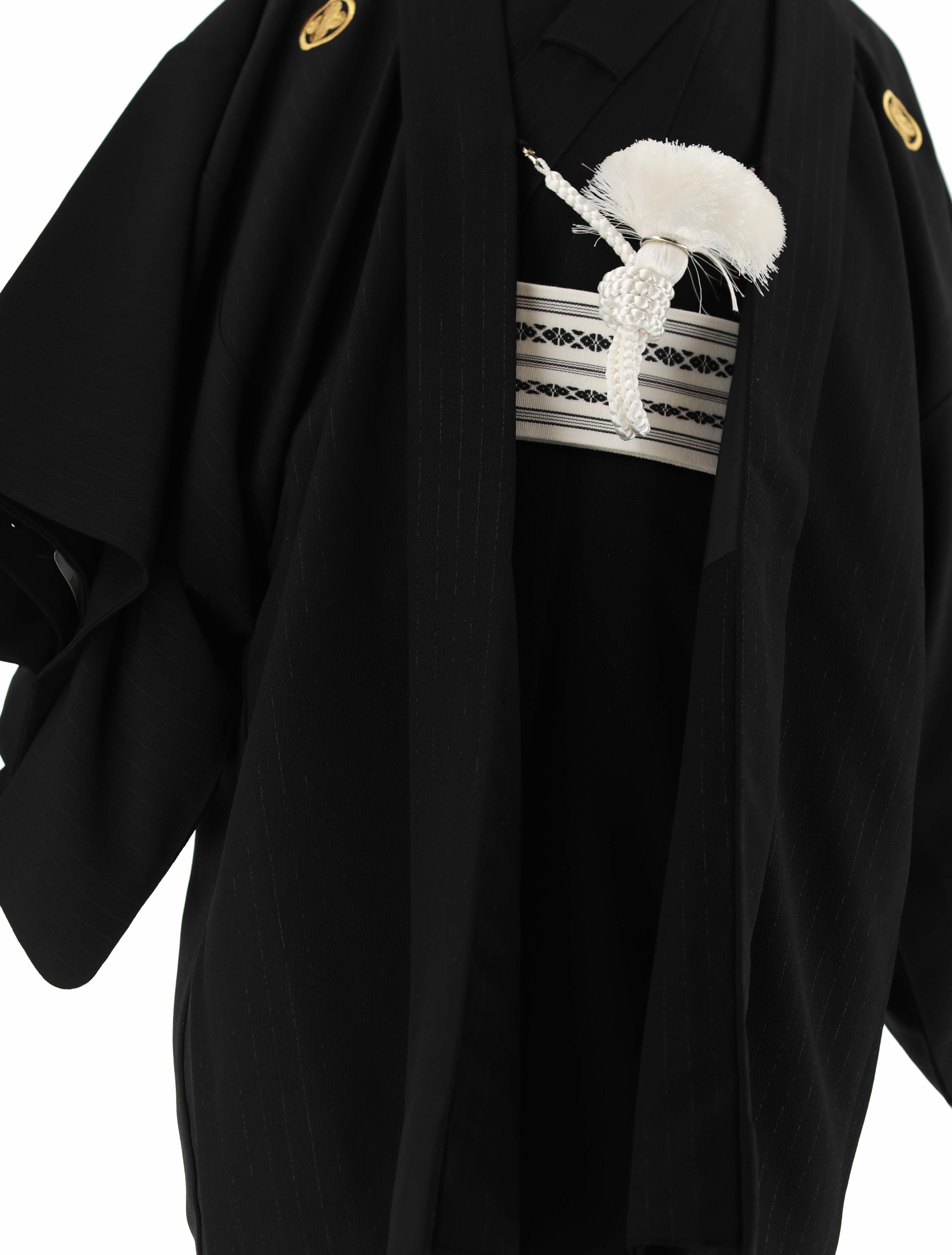 紋付袴レンタル・成人式・結婚式・卒業式|黒 ラメストライプ[身長180cm対応]No.316