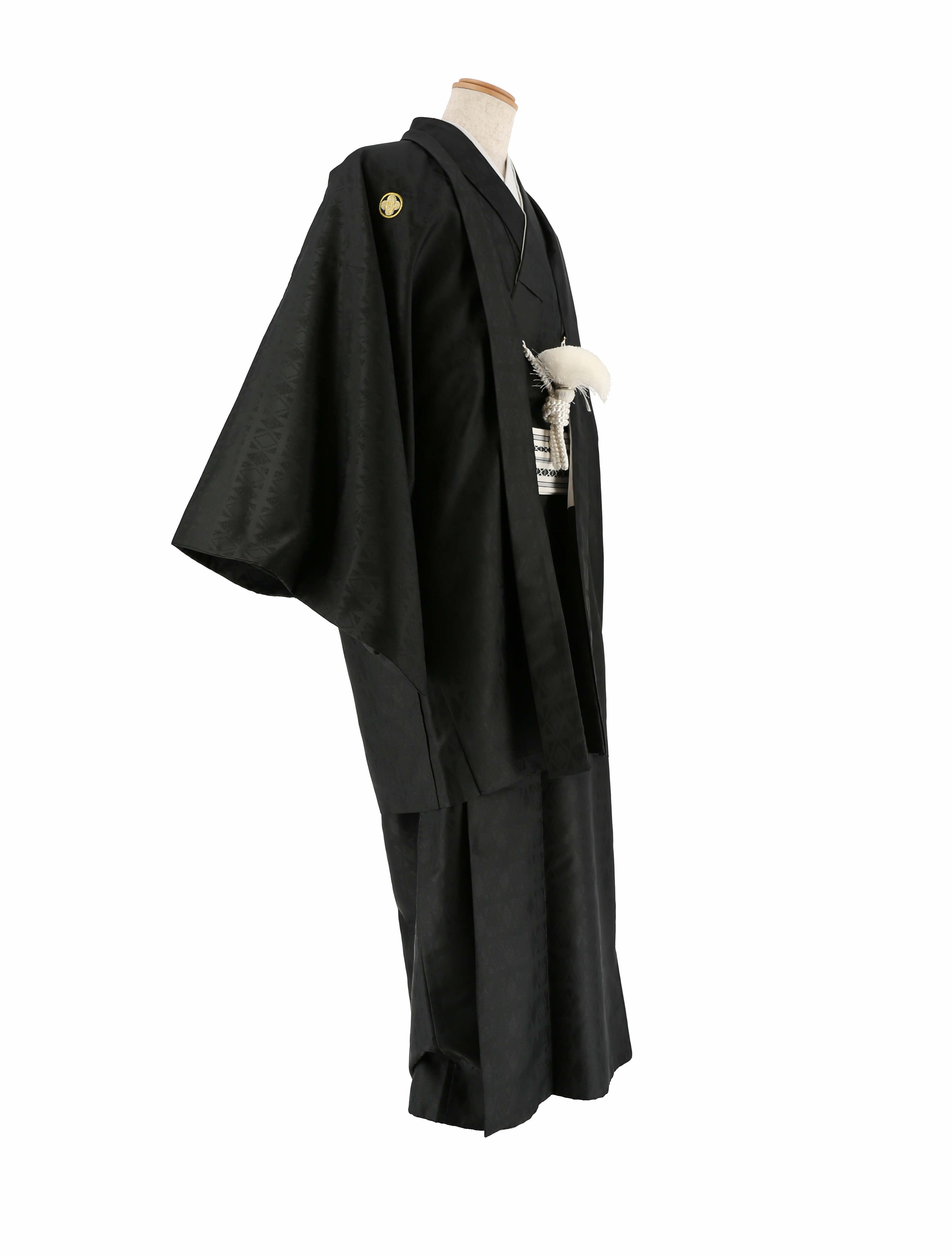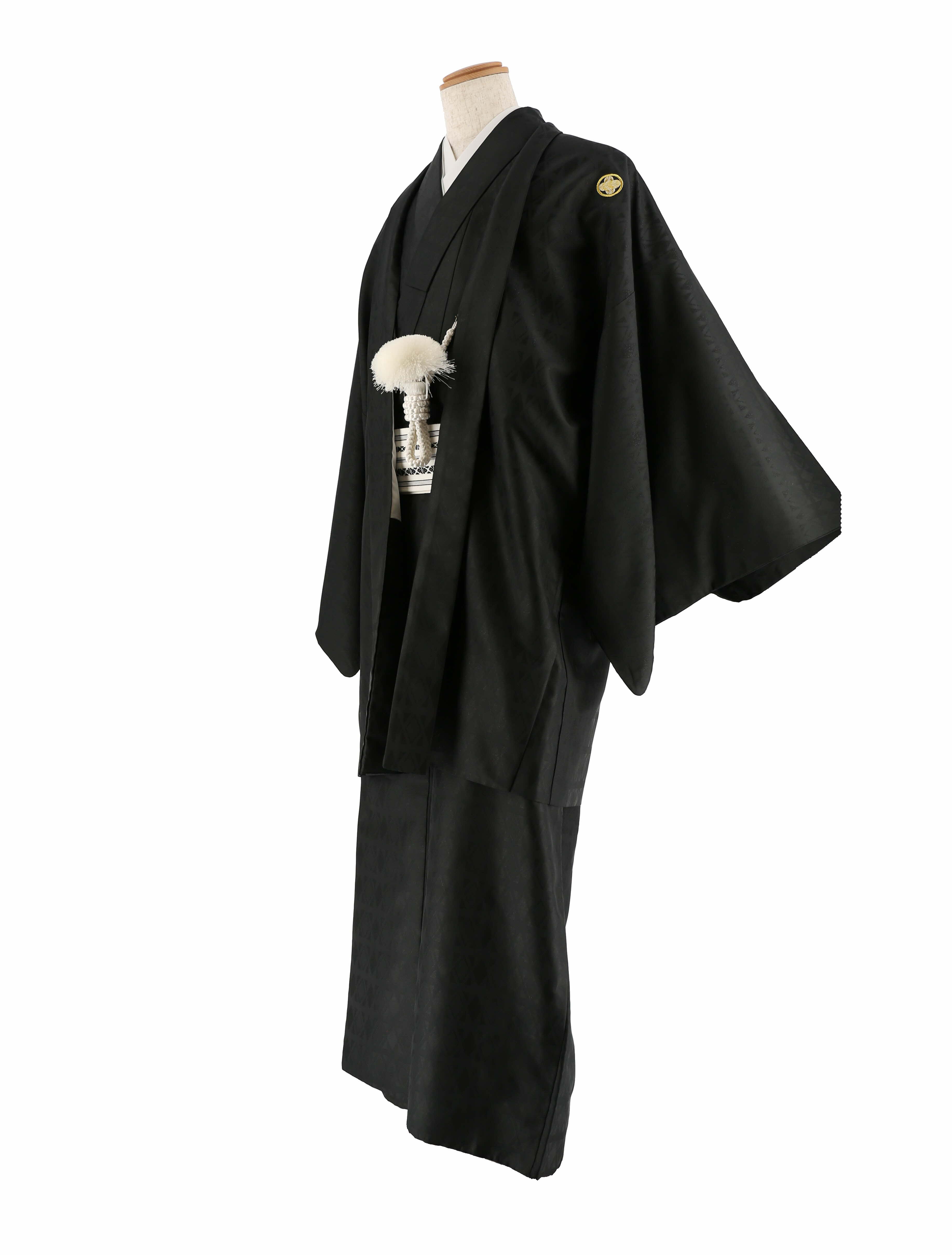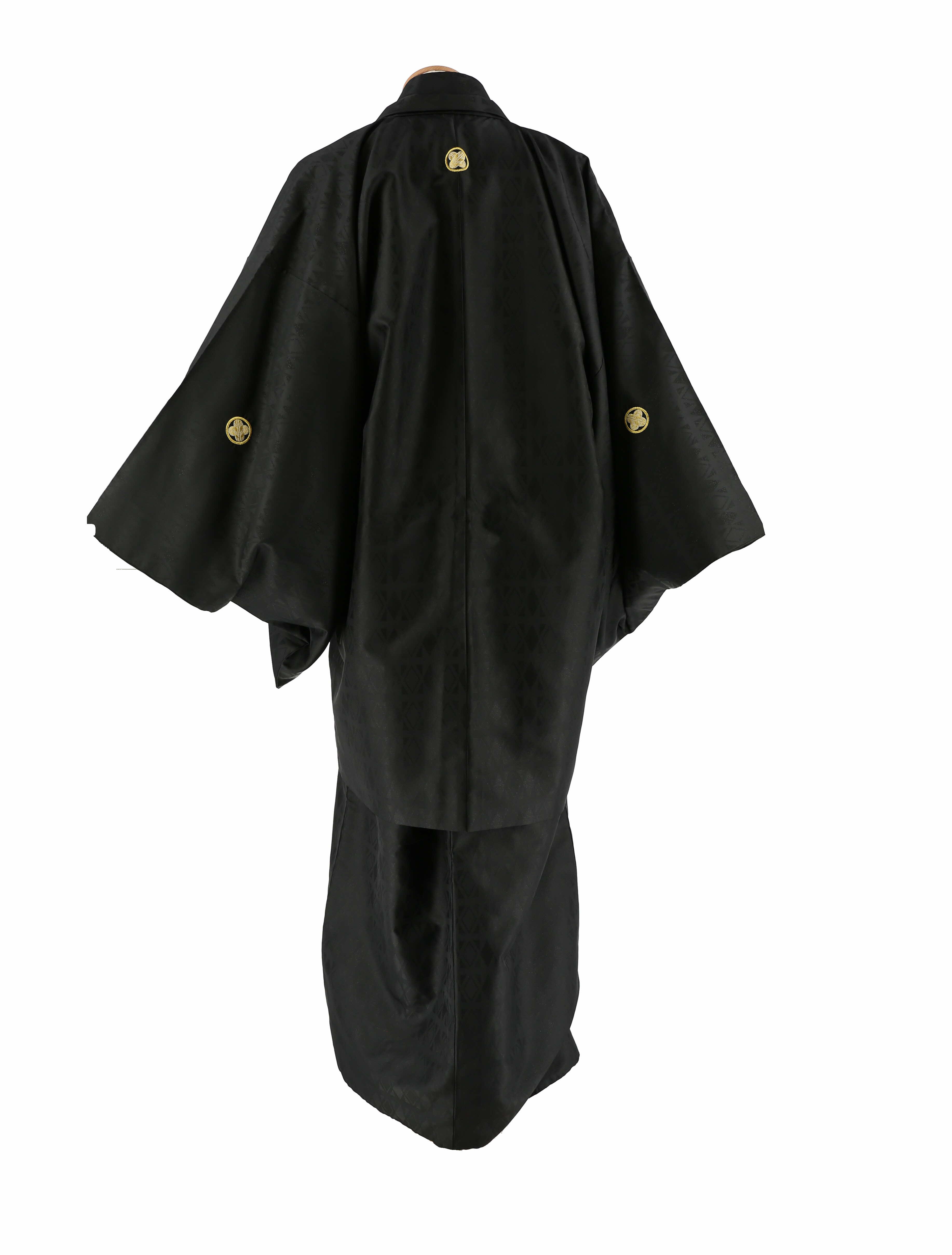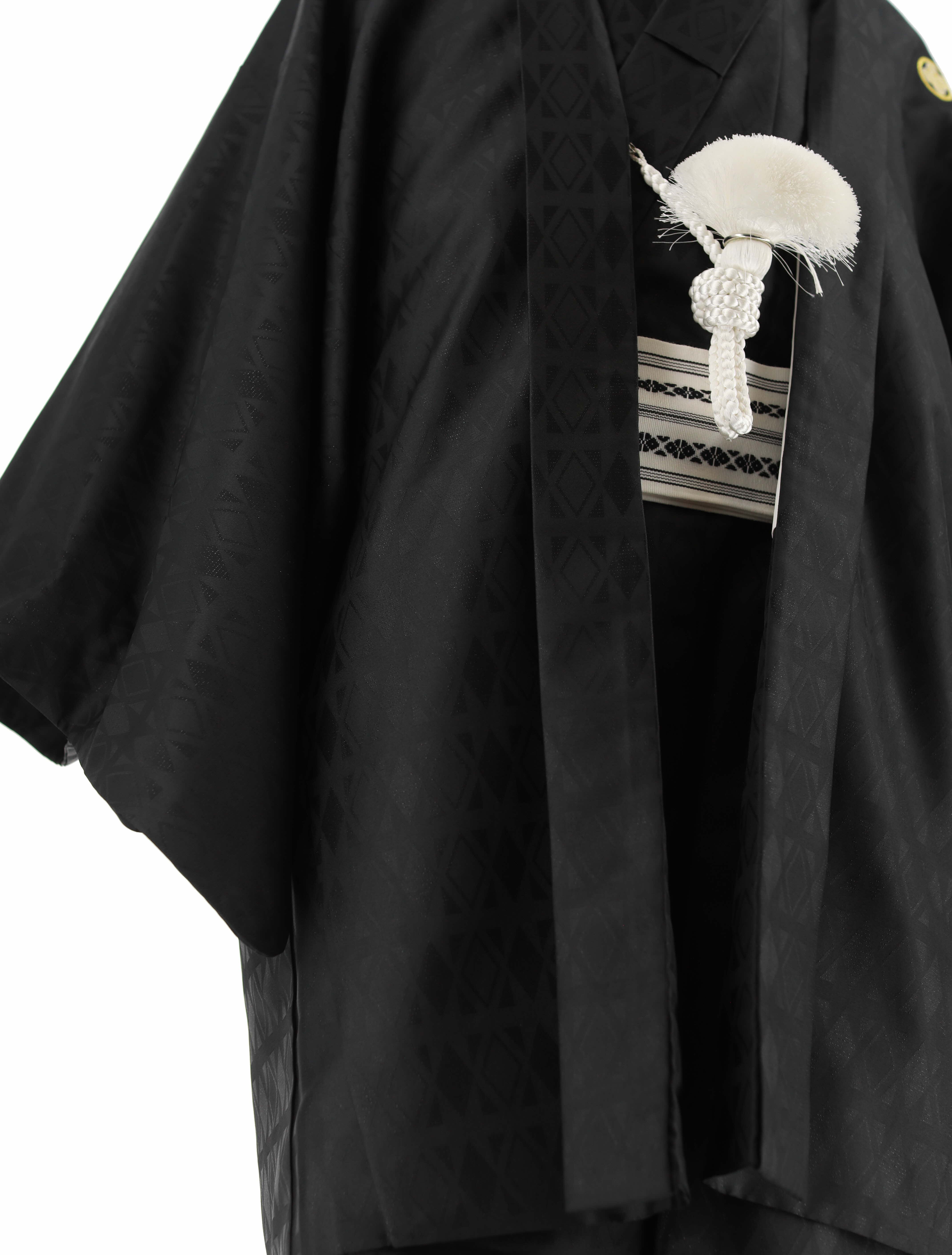 紋付袴レンタル・成人式・結婚式・卒業式|黒 黒ラメ菱形[身長180cm対応]No.317