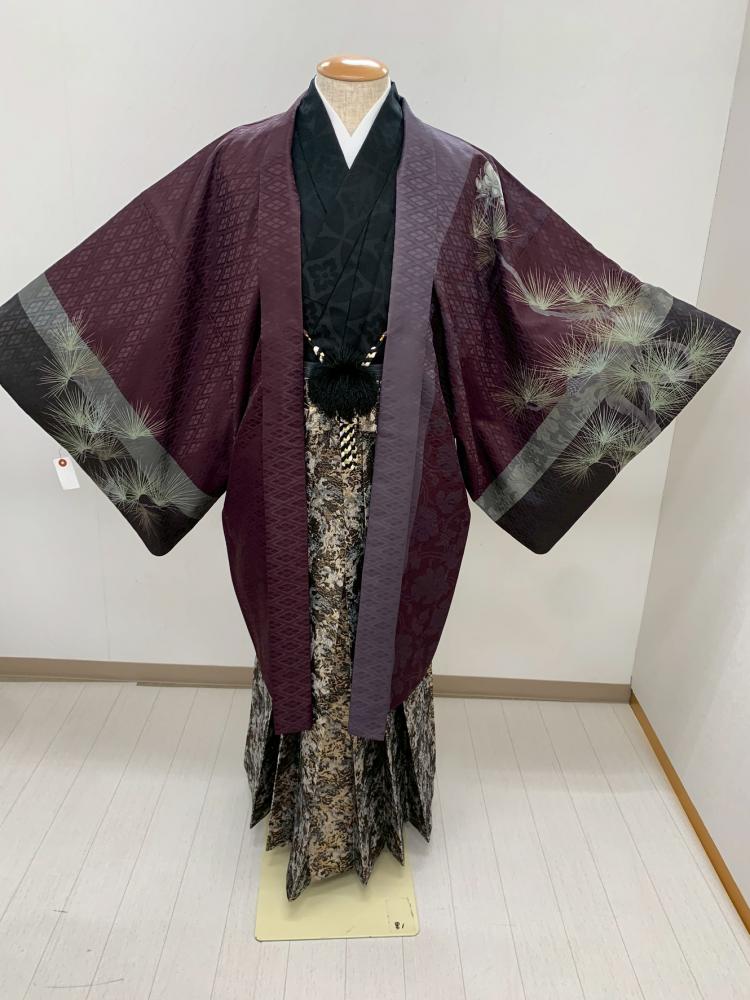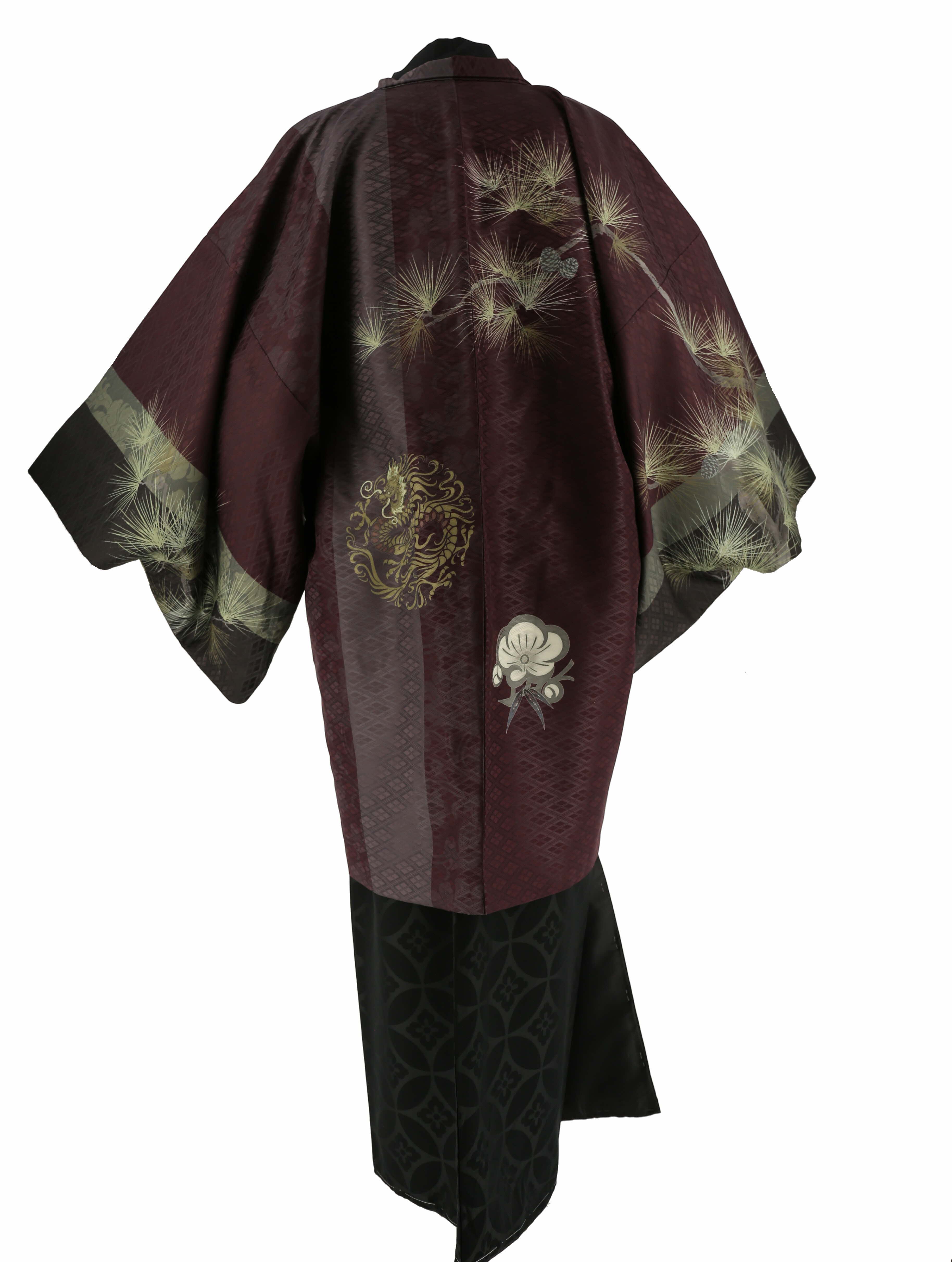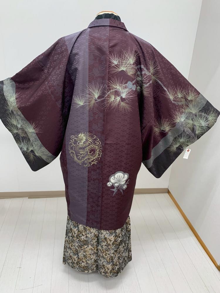 紋付袴レンタル・成人式・結婚式・卒業式|暗い赤紫 松と龍[身長170-175cm対応]No.320