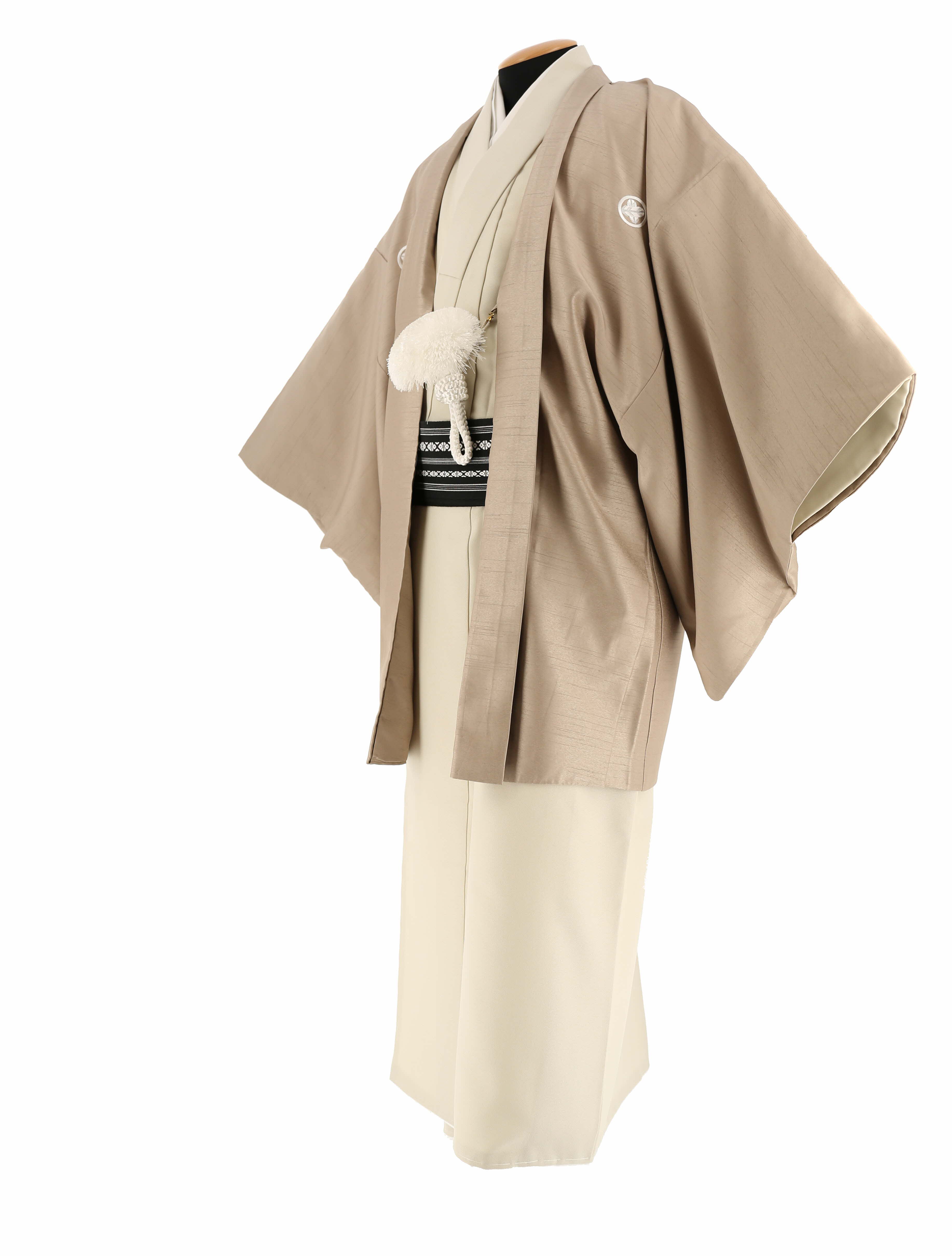 紋付袴レンタル・成人式・結婚式・卒業式|淡いモカ アイボリー無地[身長170cm対応]No.321