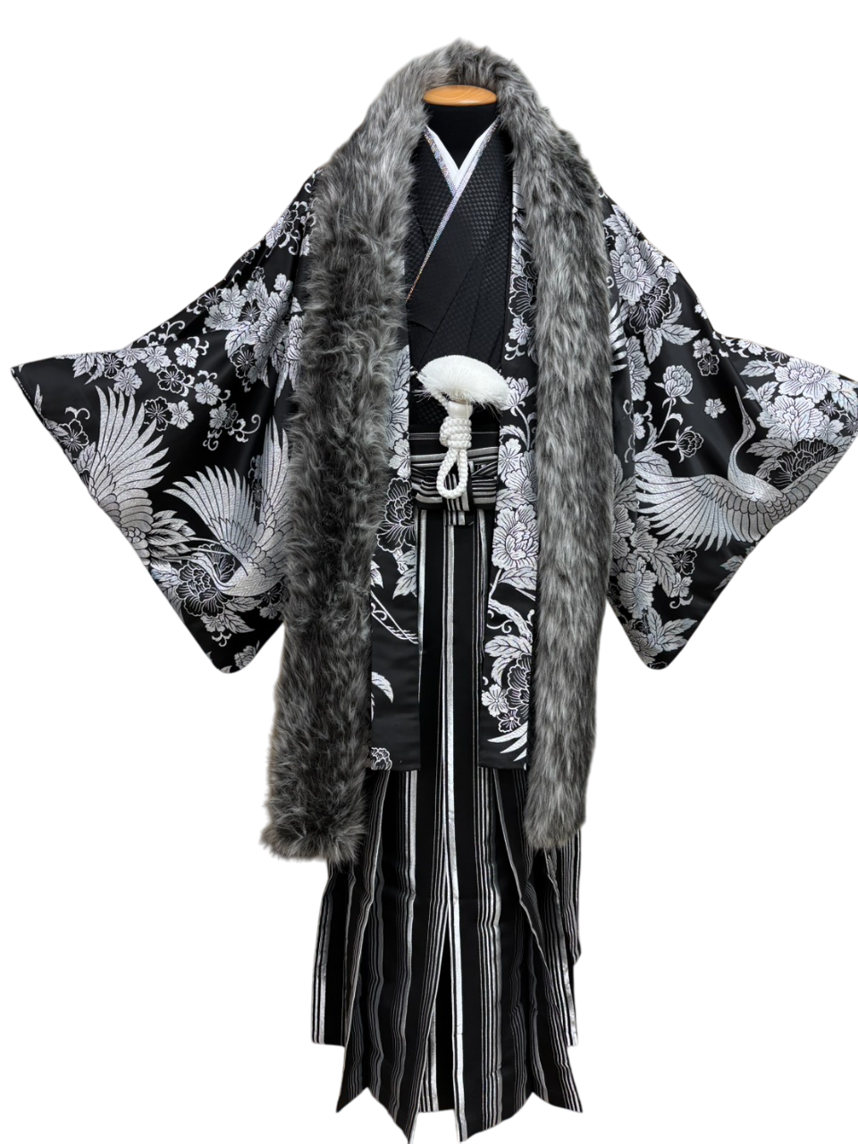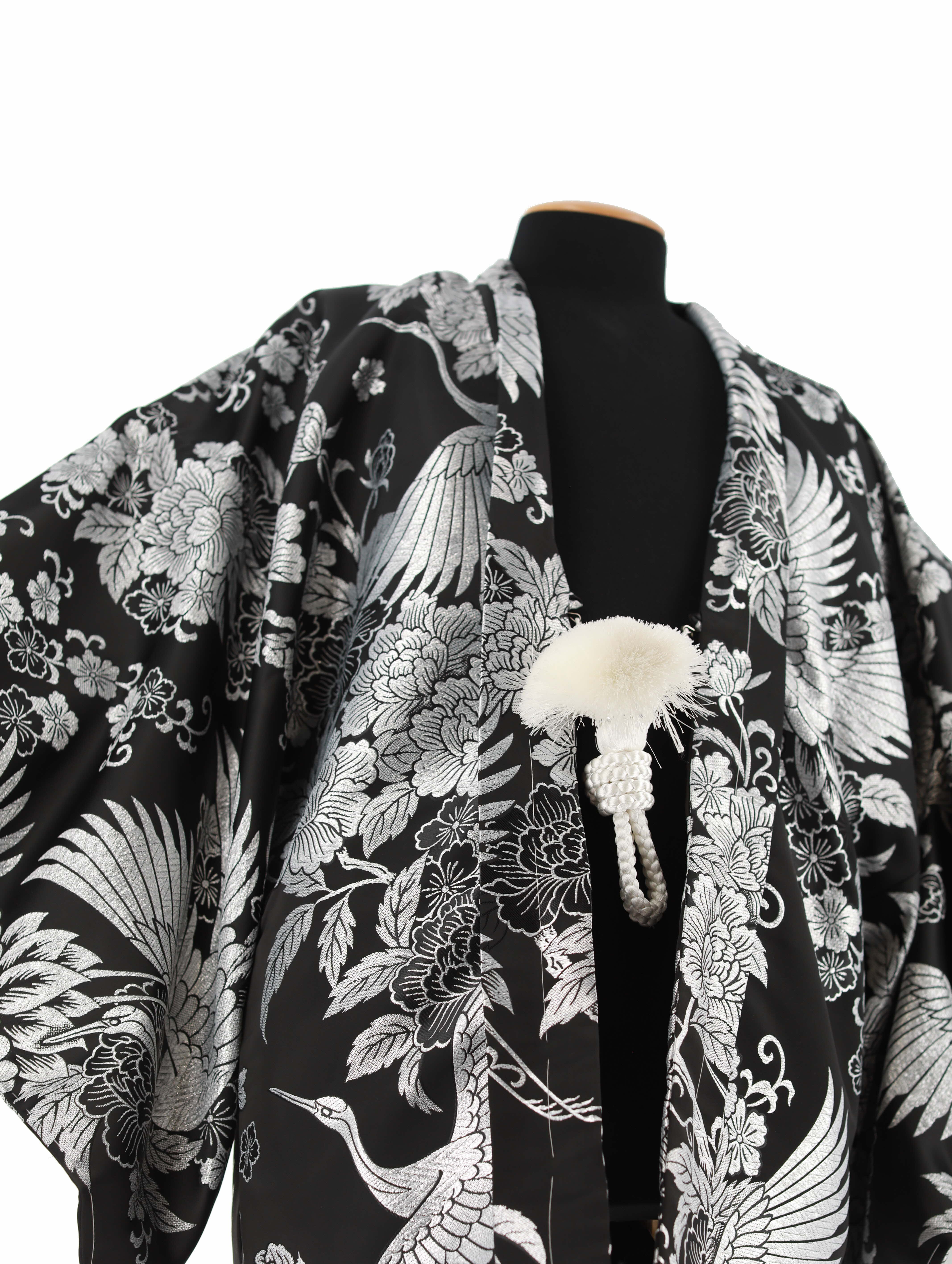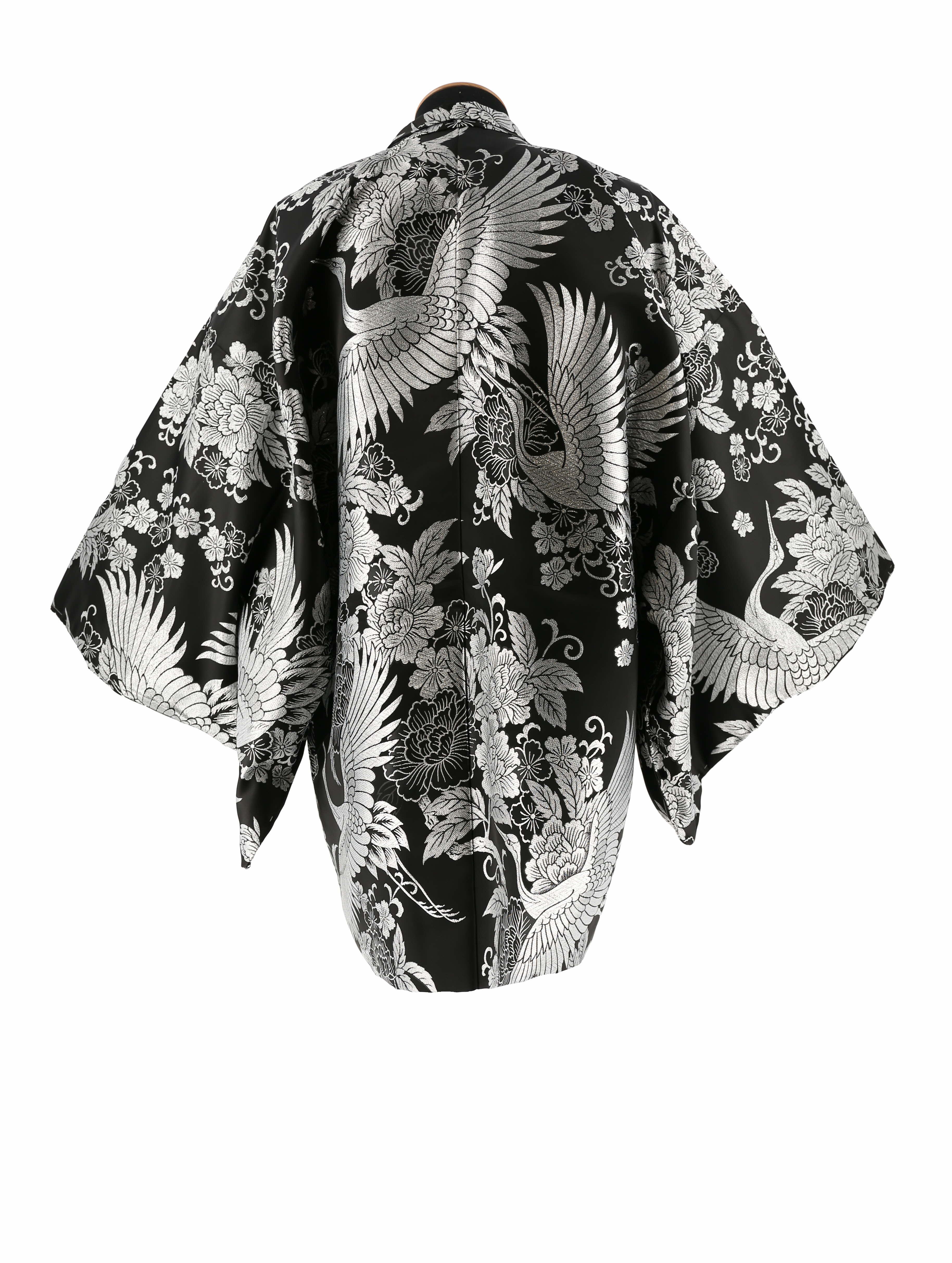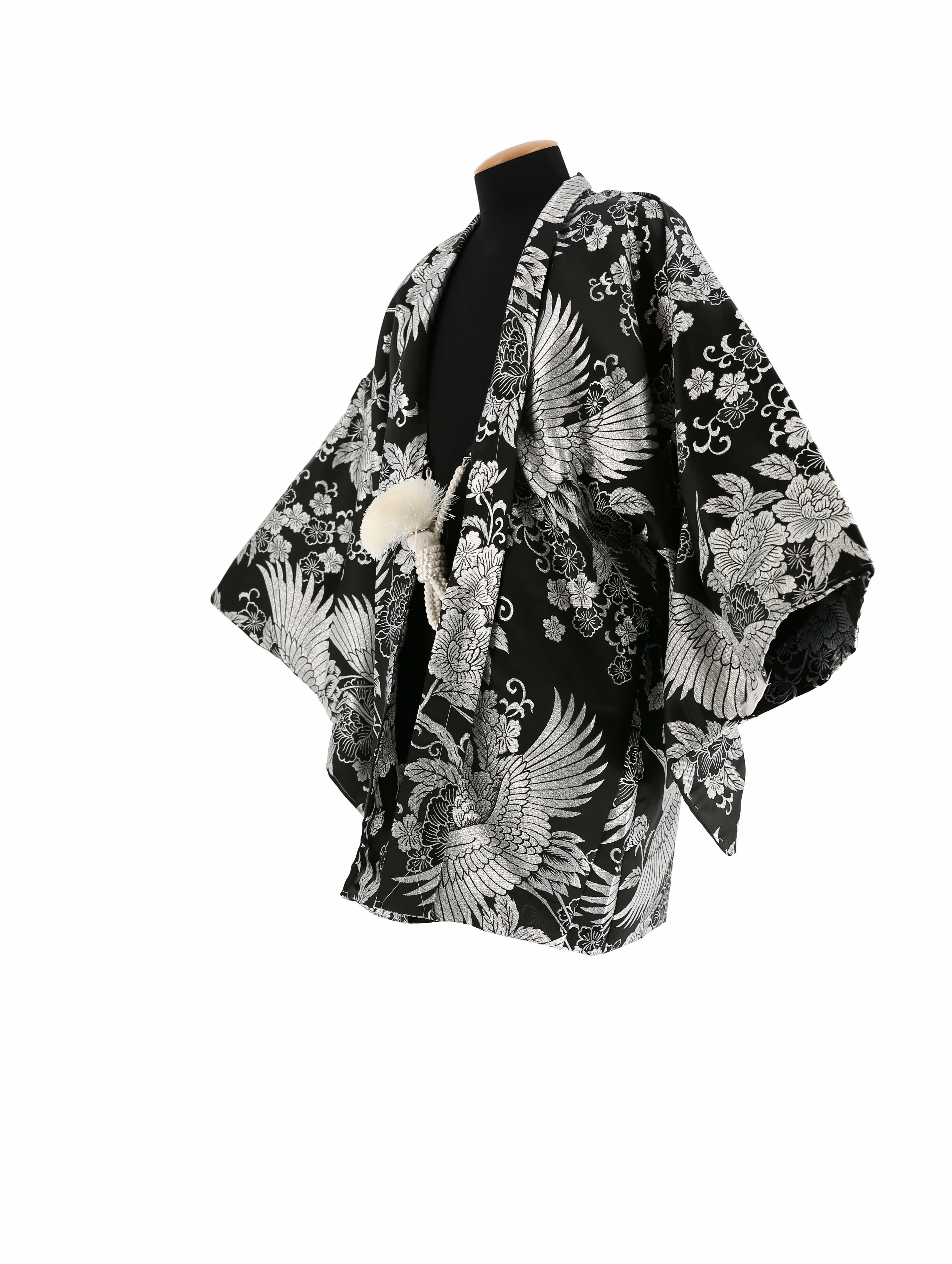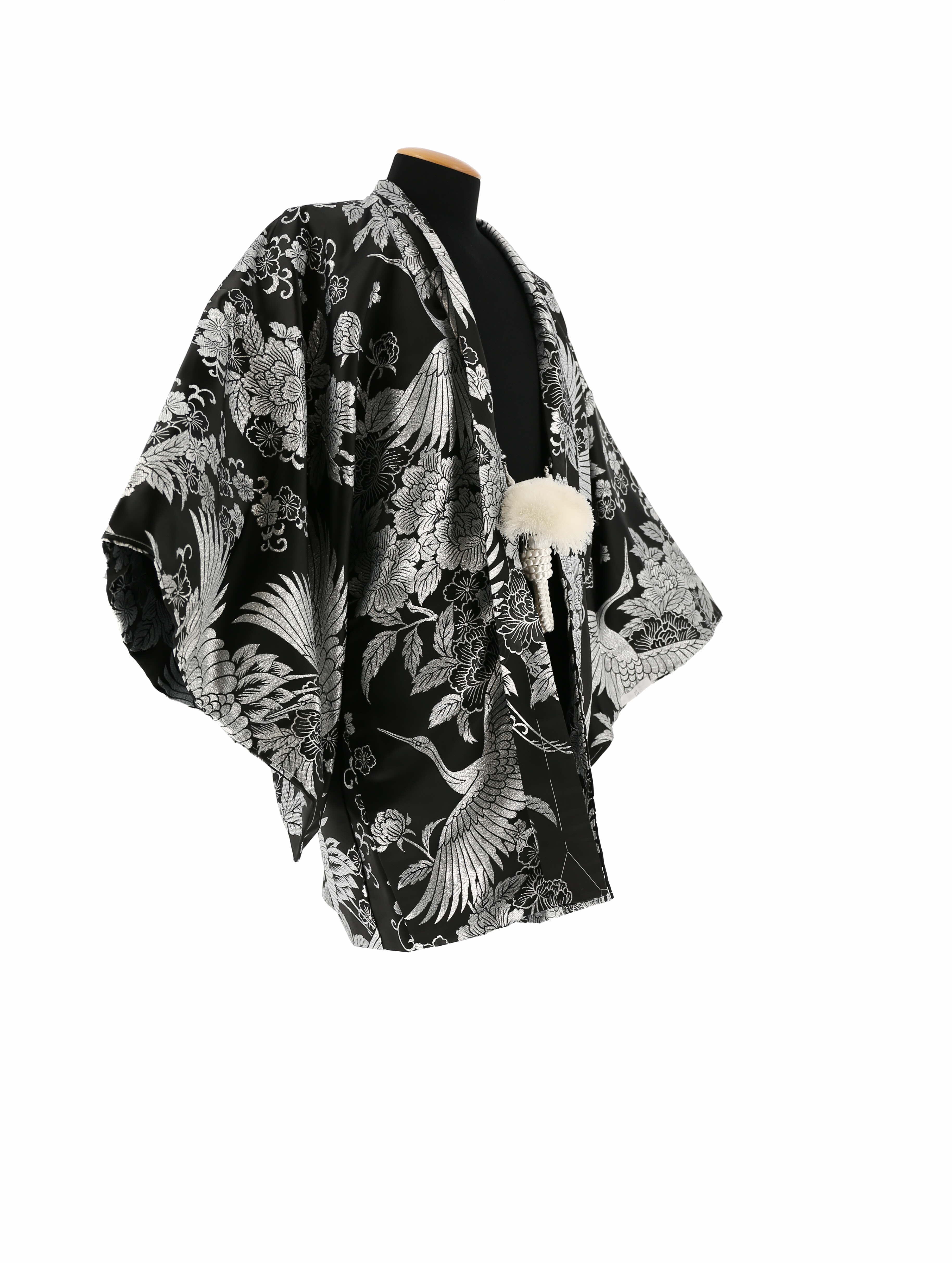 羽織:黒にシルバーの鶴と牡丹、桜