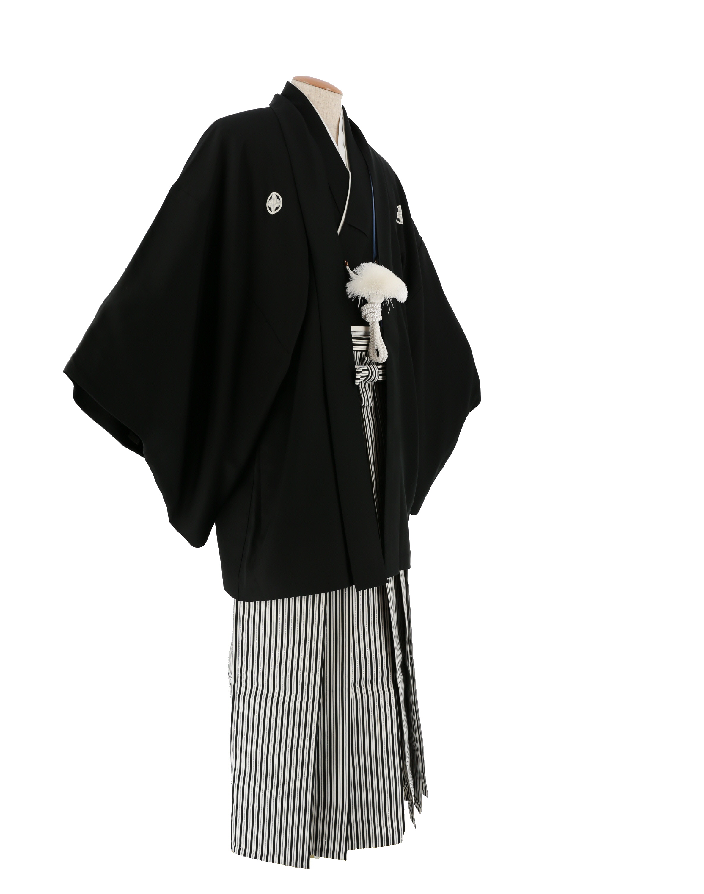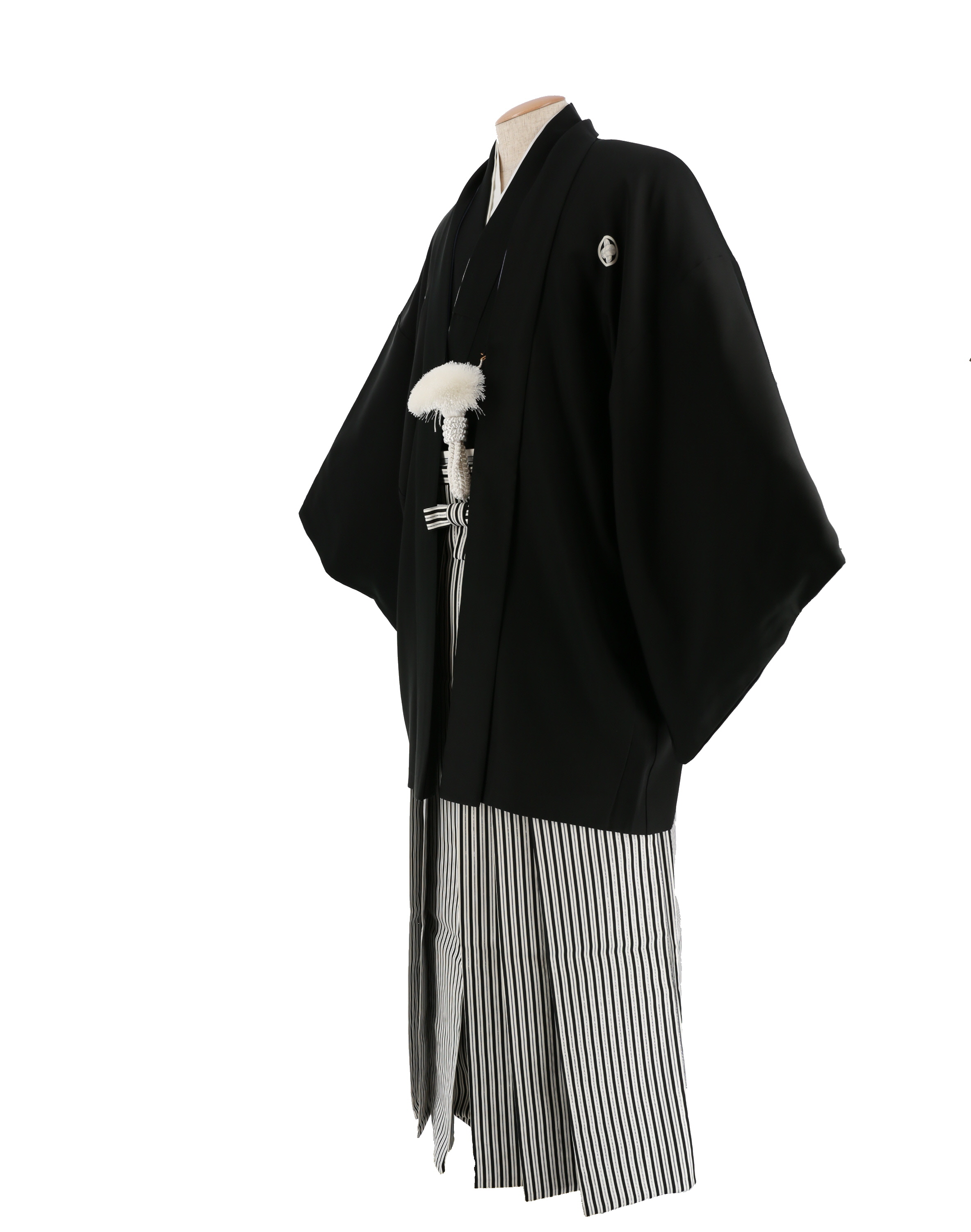 紋付袴レンタル・成人式・結婚式・卒業式【正絹】黒色 無地[身長172cm対応]No.16