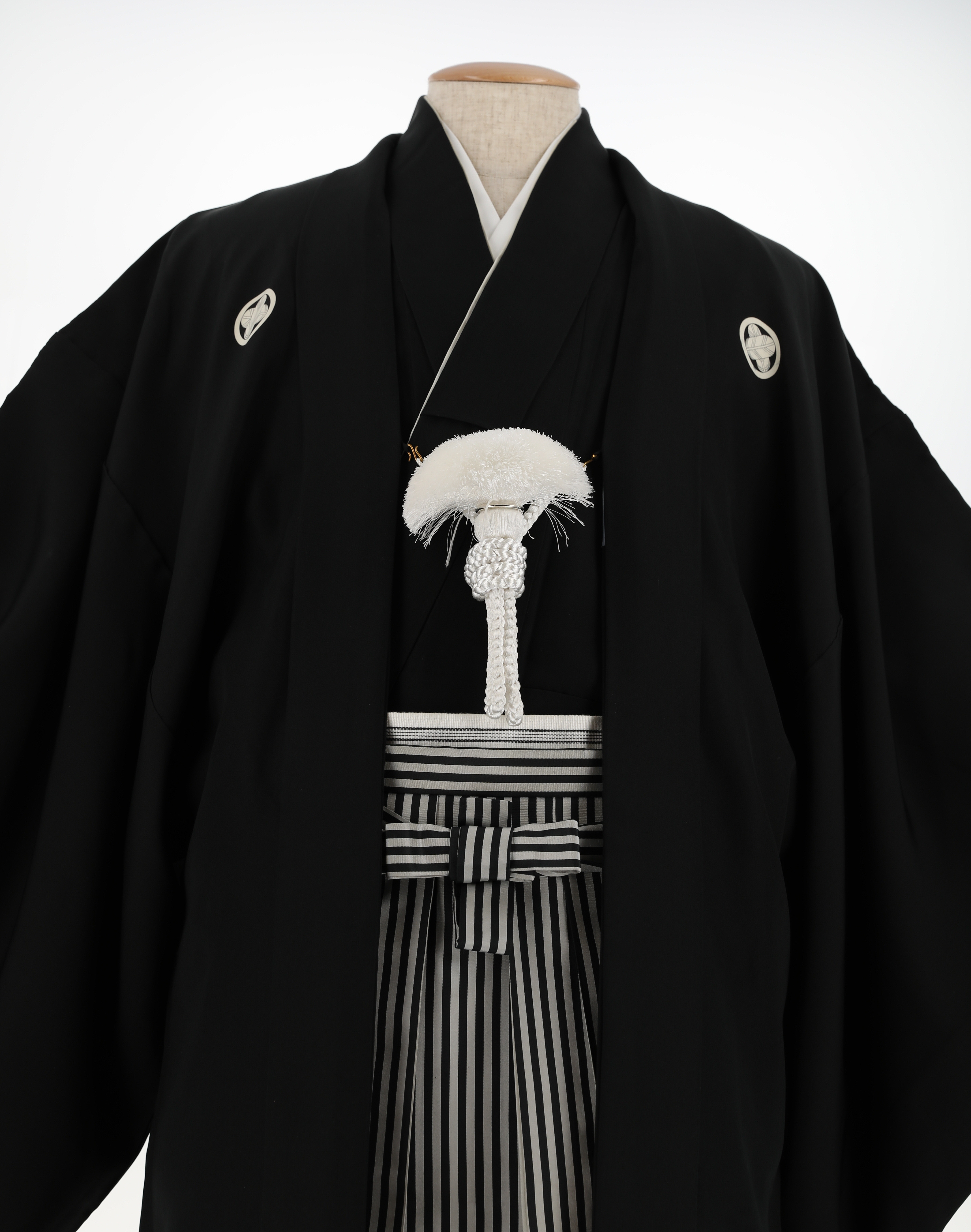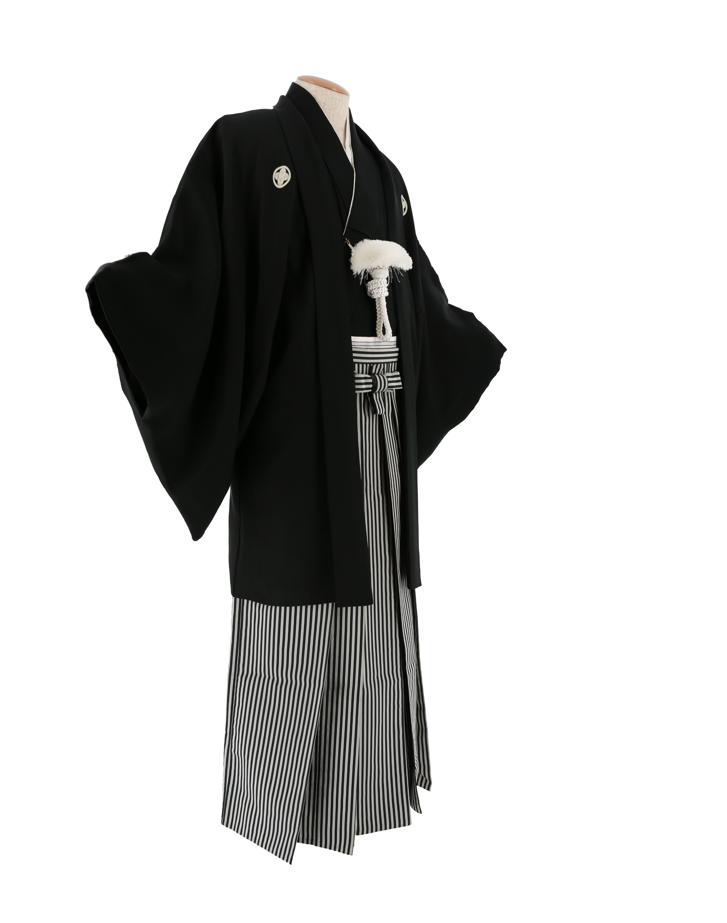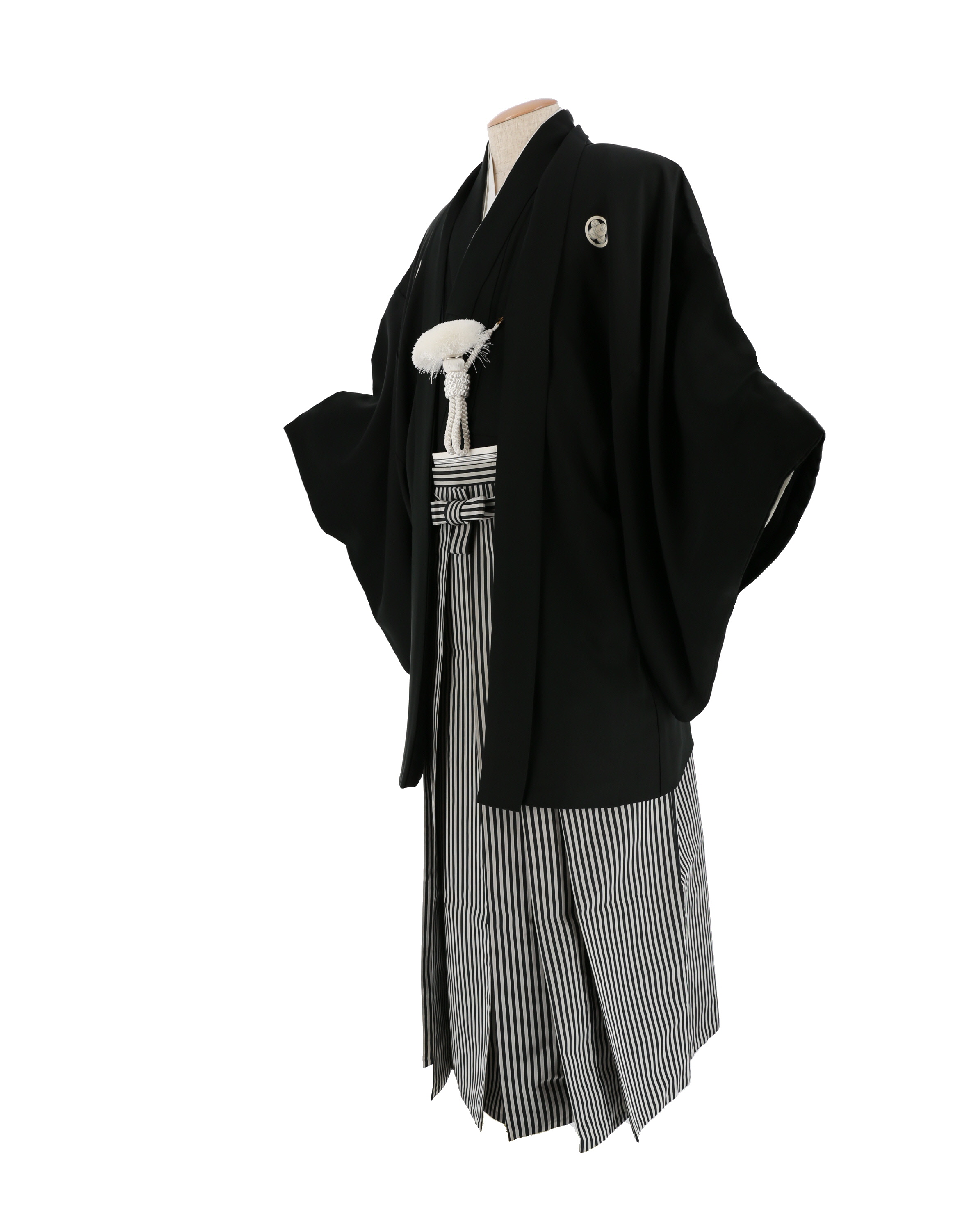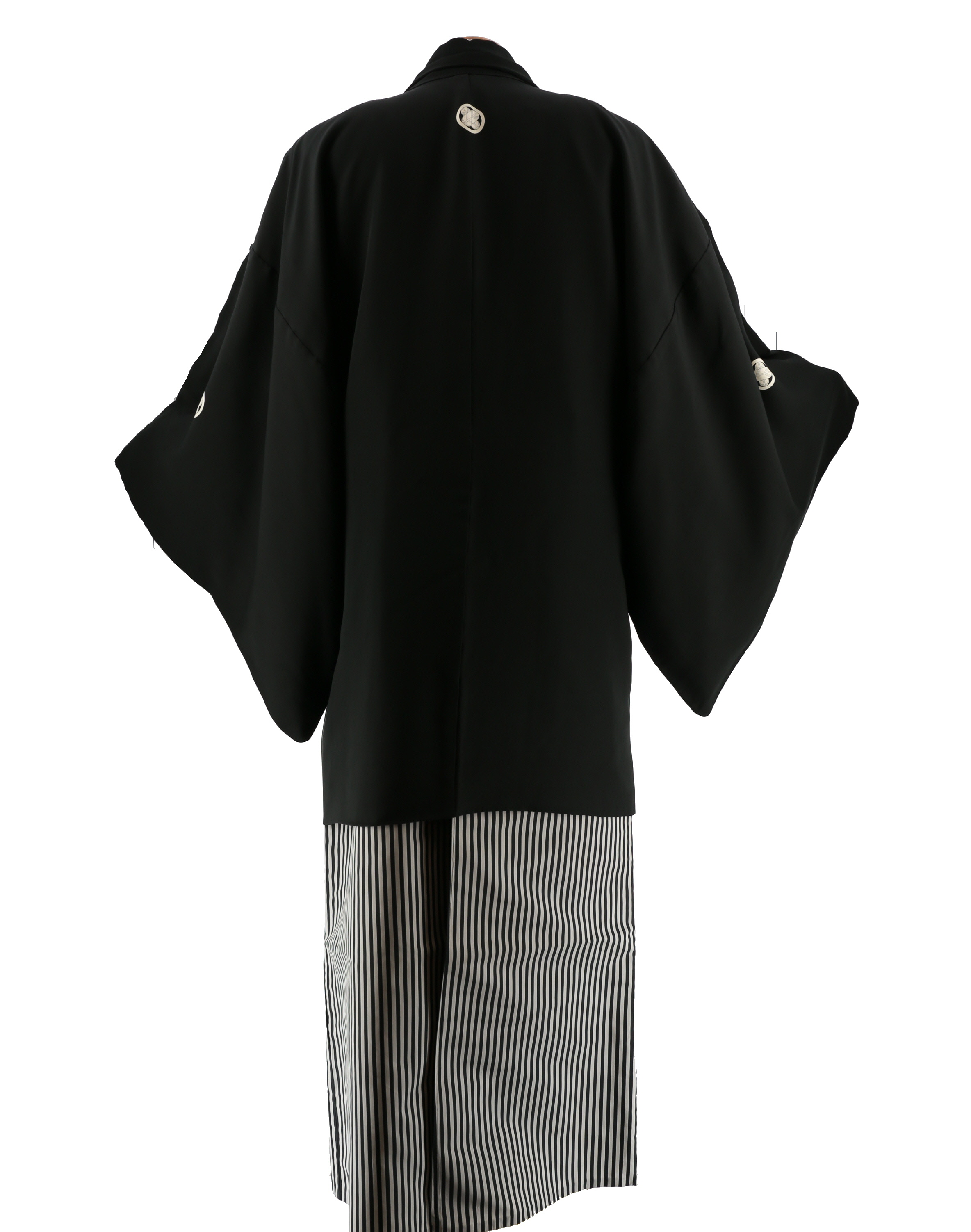 紋付袴レンタル・成人式・結婚式・卒業式【正絹】黒色 無地[身長185cm対応]No.66