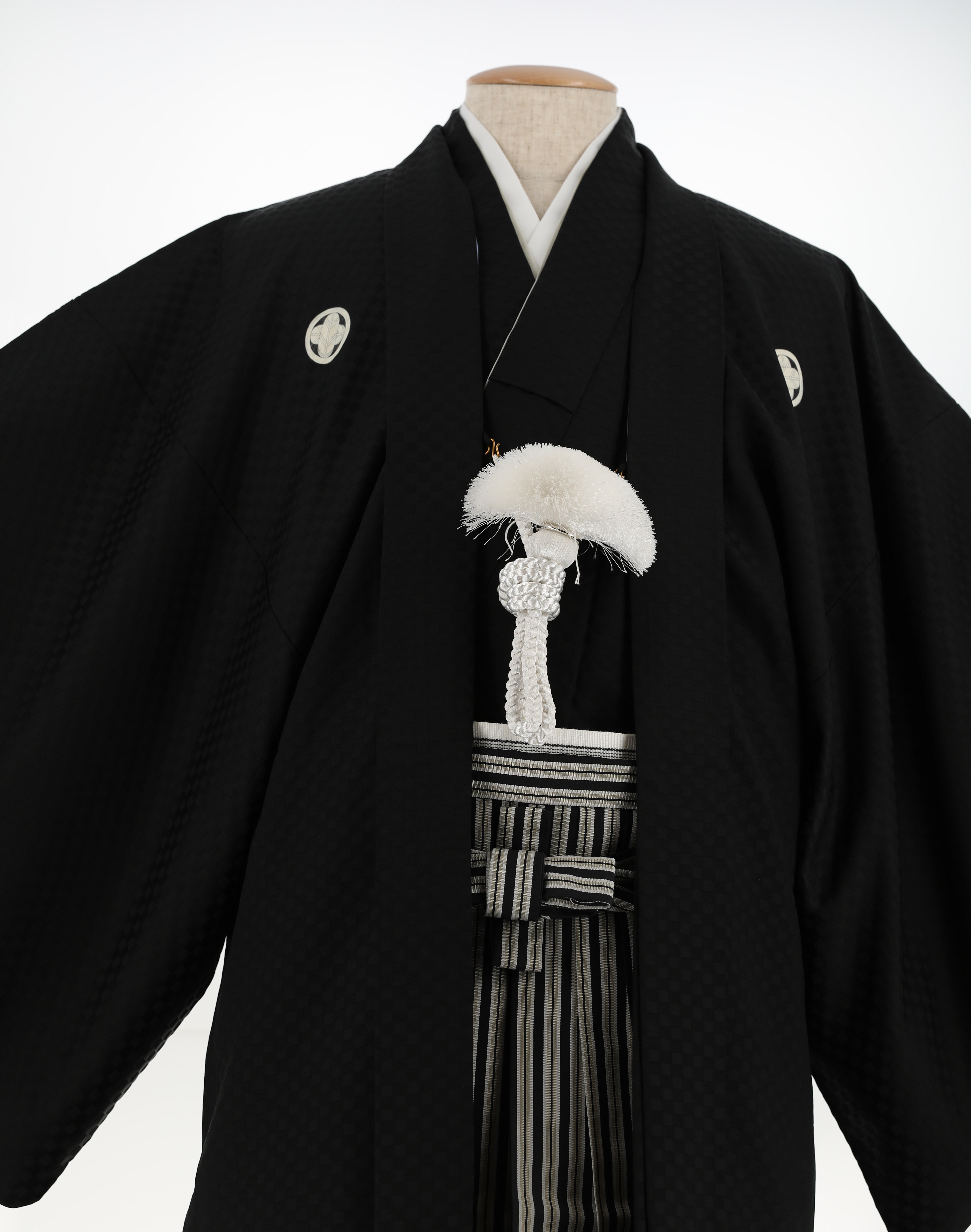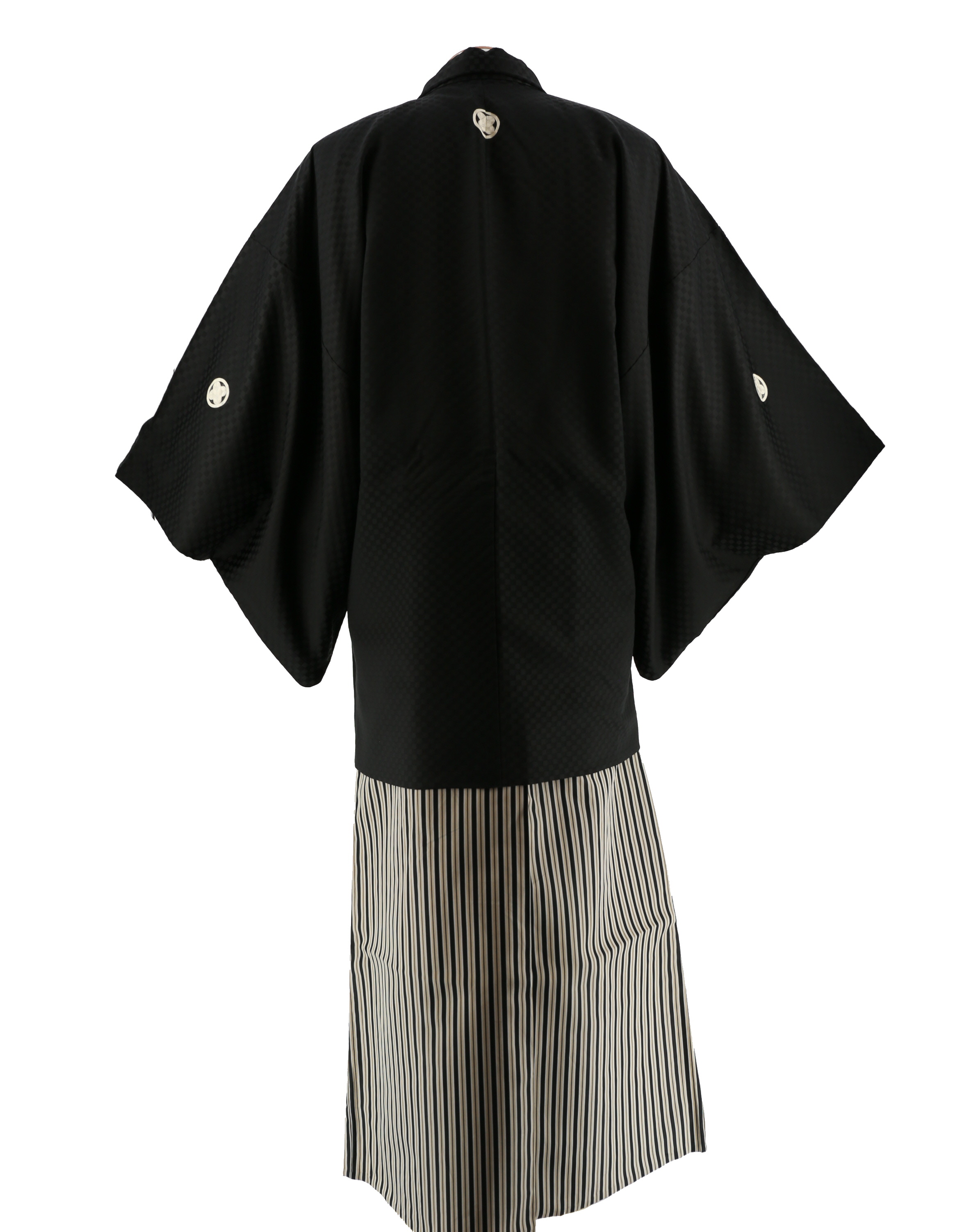 紋付袴レンタル・成人式・結婚式・卒業式【正絹】黒色 市松模様[身長175cm対応]No.95