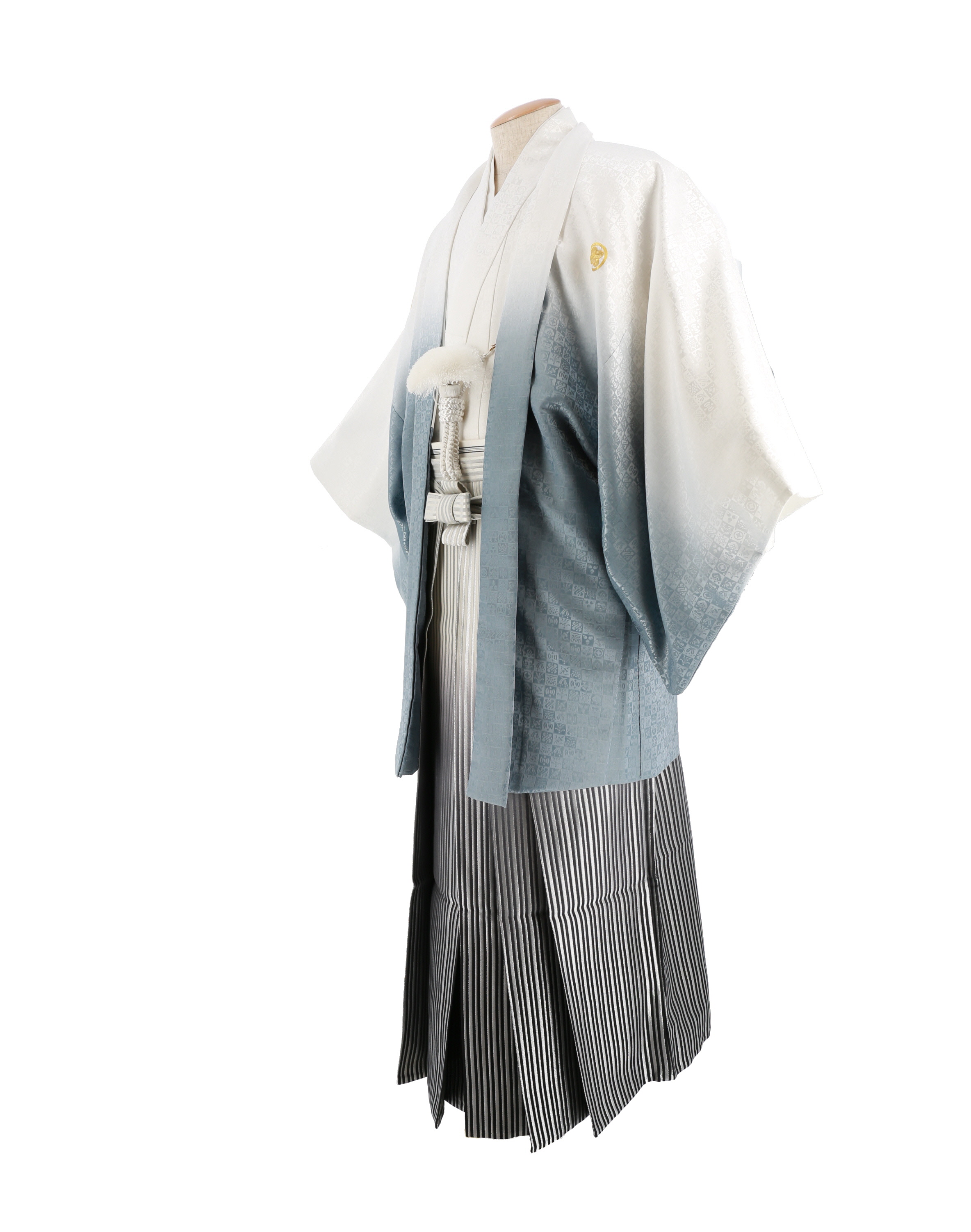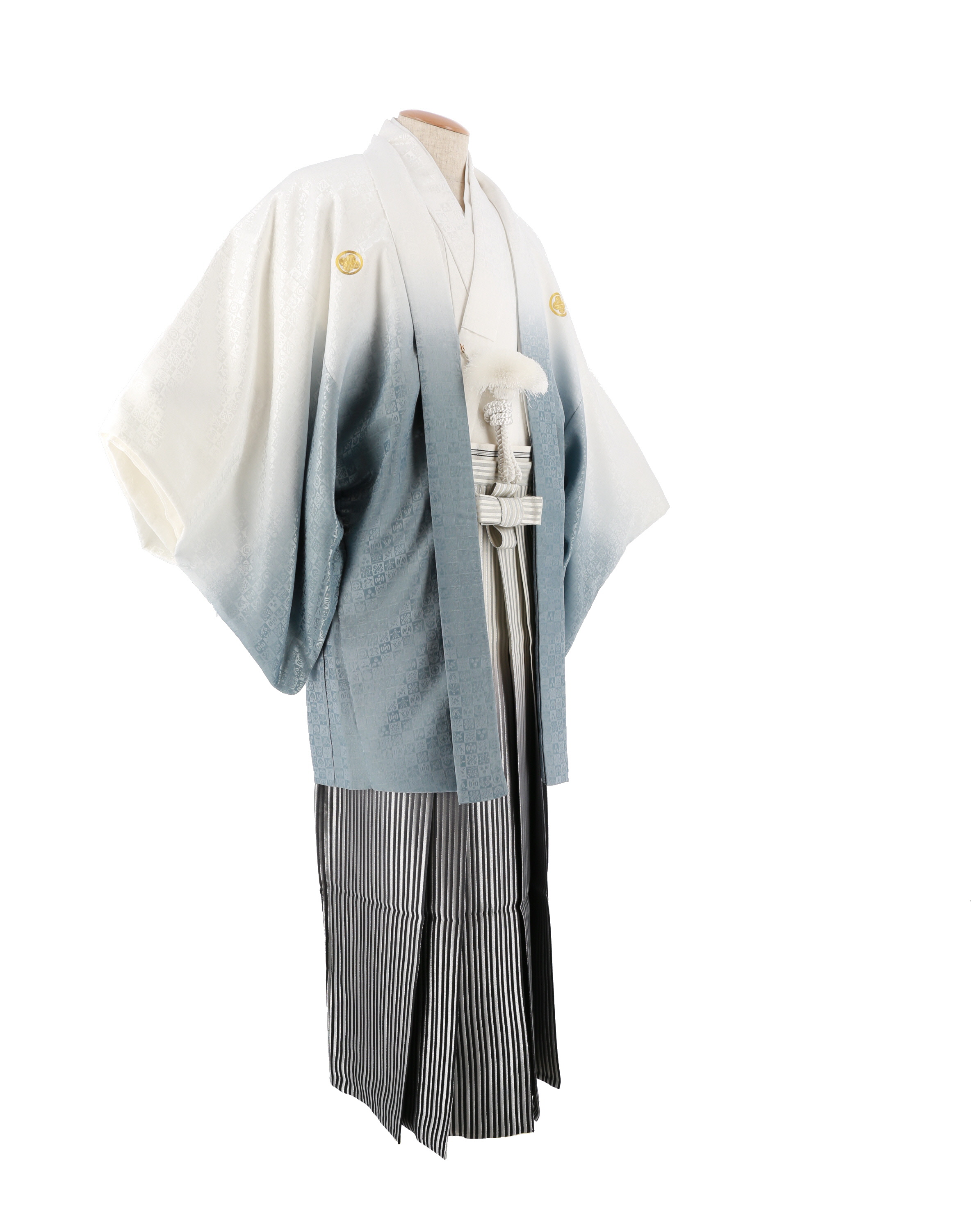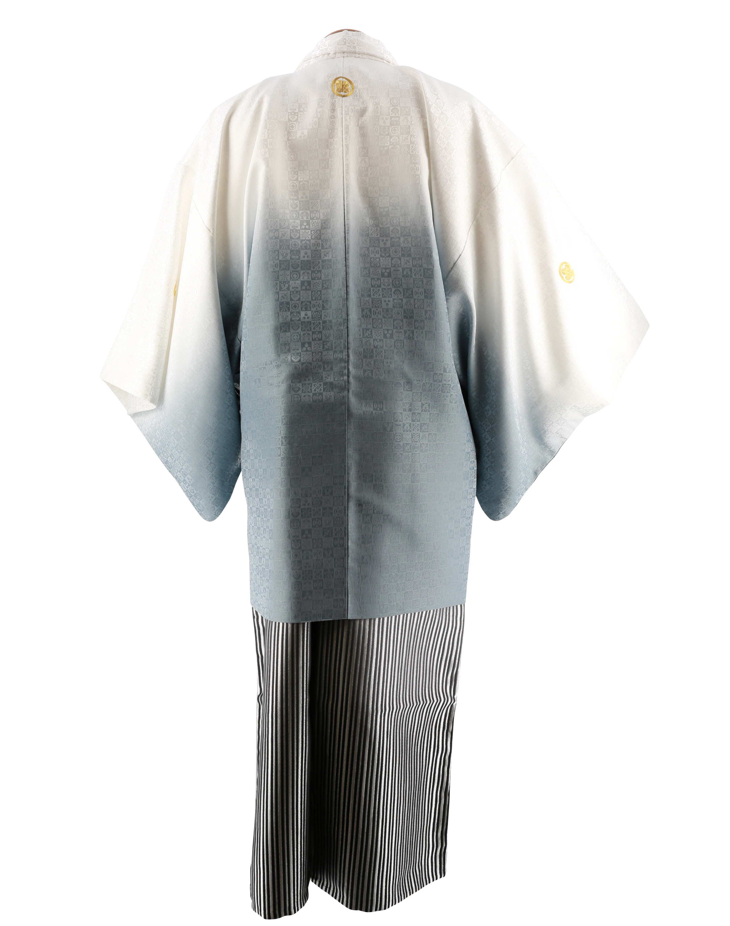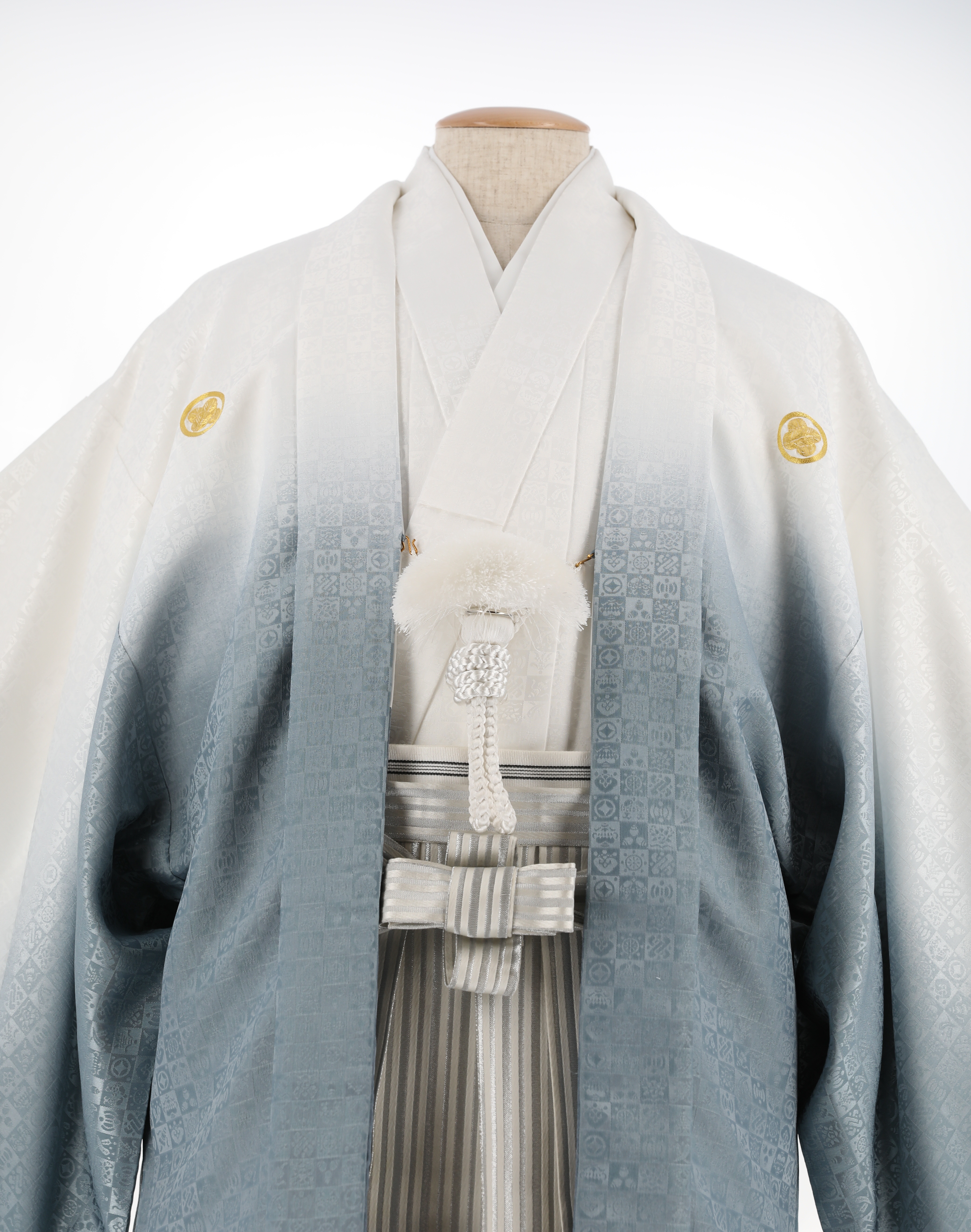 紋付袴レンタル・成人式・結婚式・卒業式|白に青灰ぼかし宝尽くしの市松[身長180cm]No.136