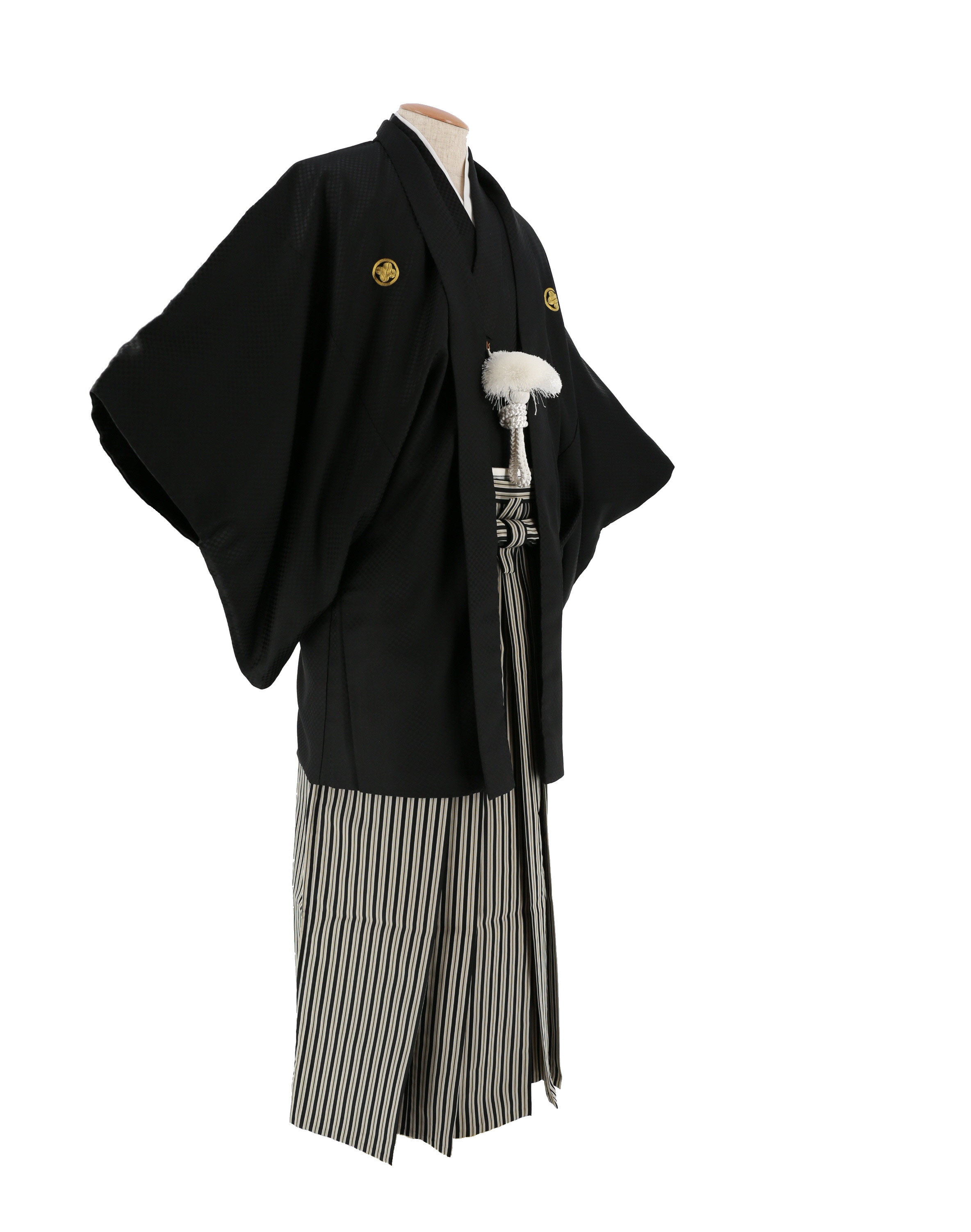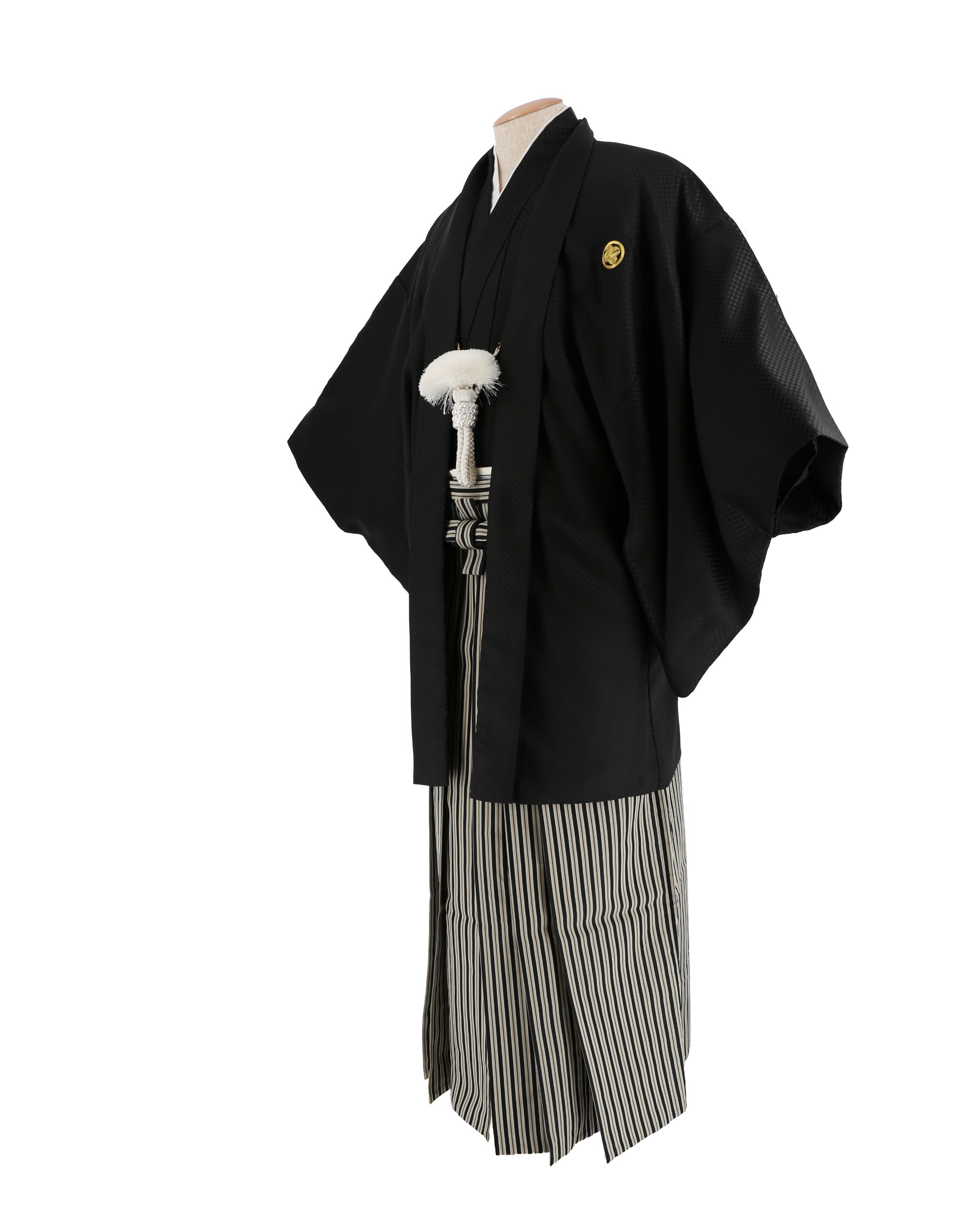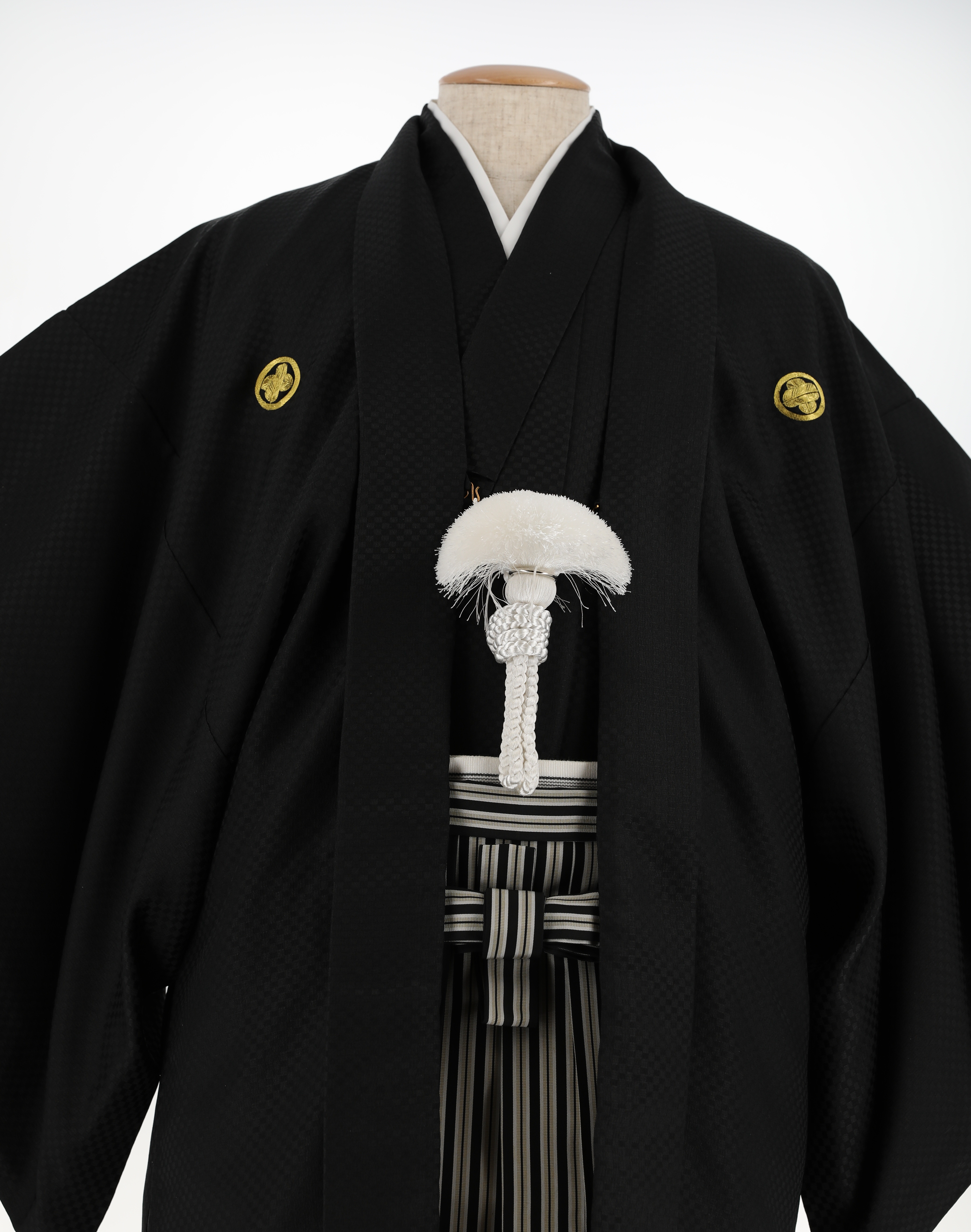 紋付袴レンタル・成人式・結婚式・卒業式|黒色 市松模様[身長175cm対応]No.205