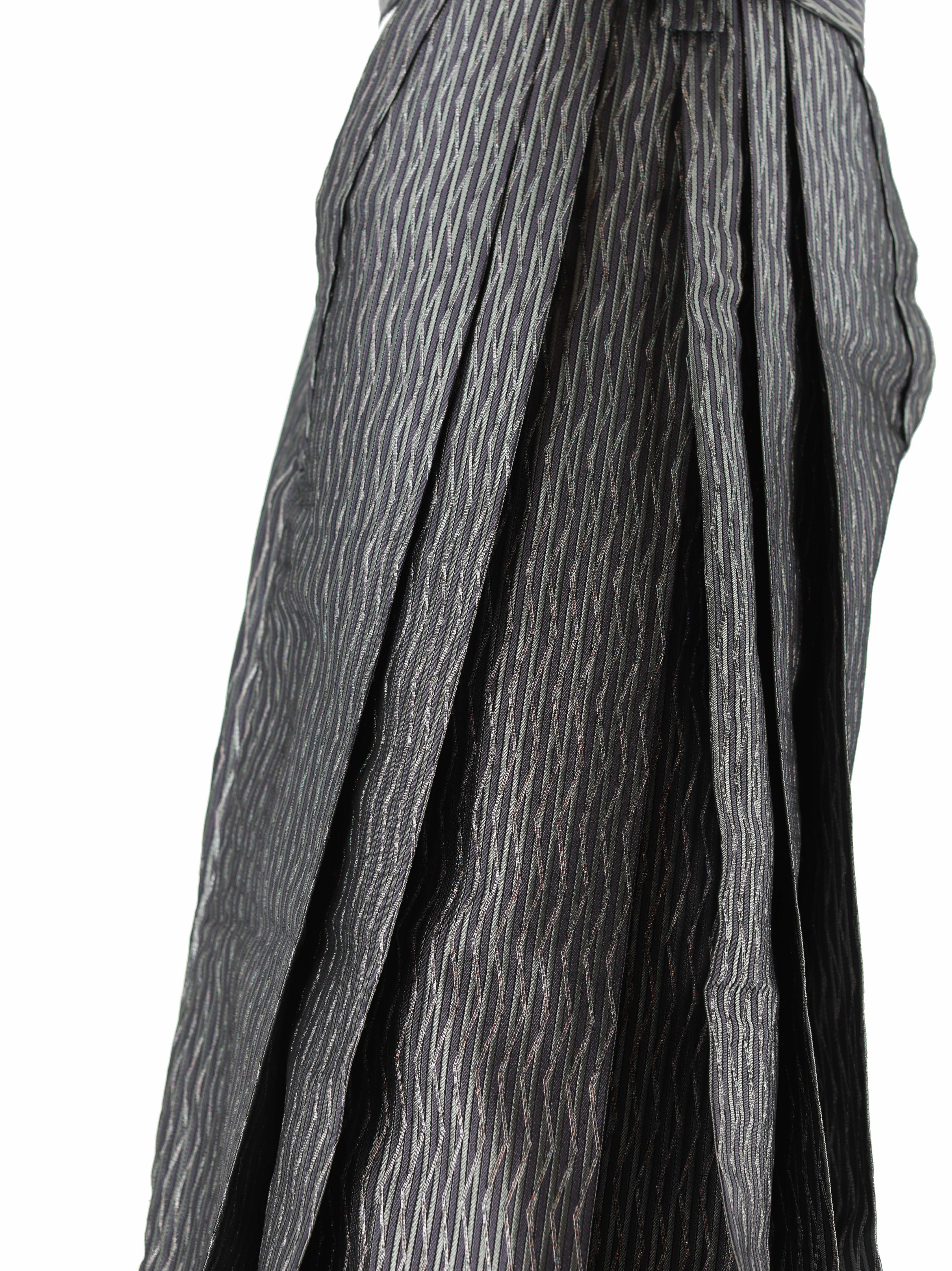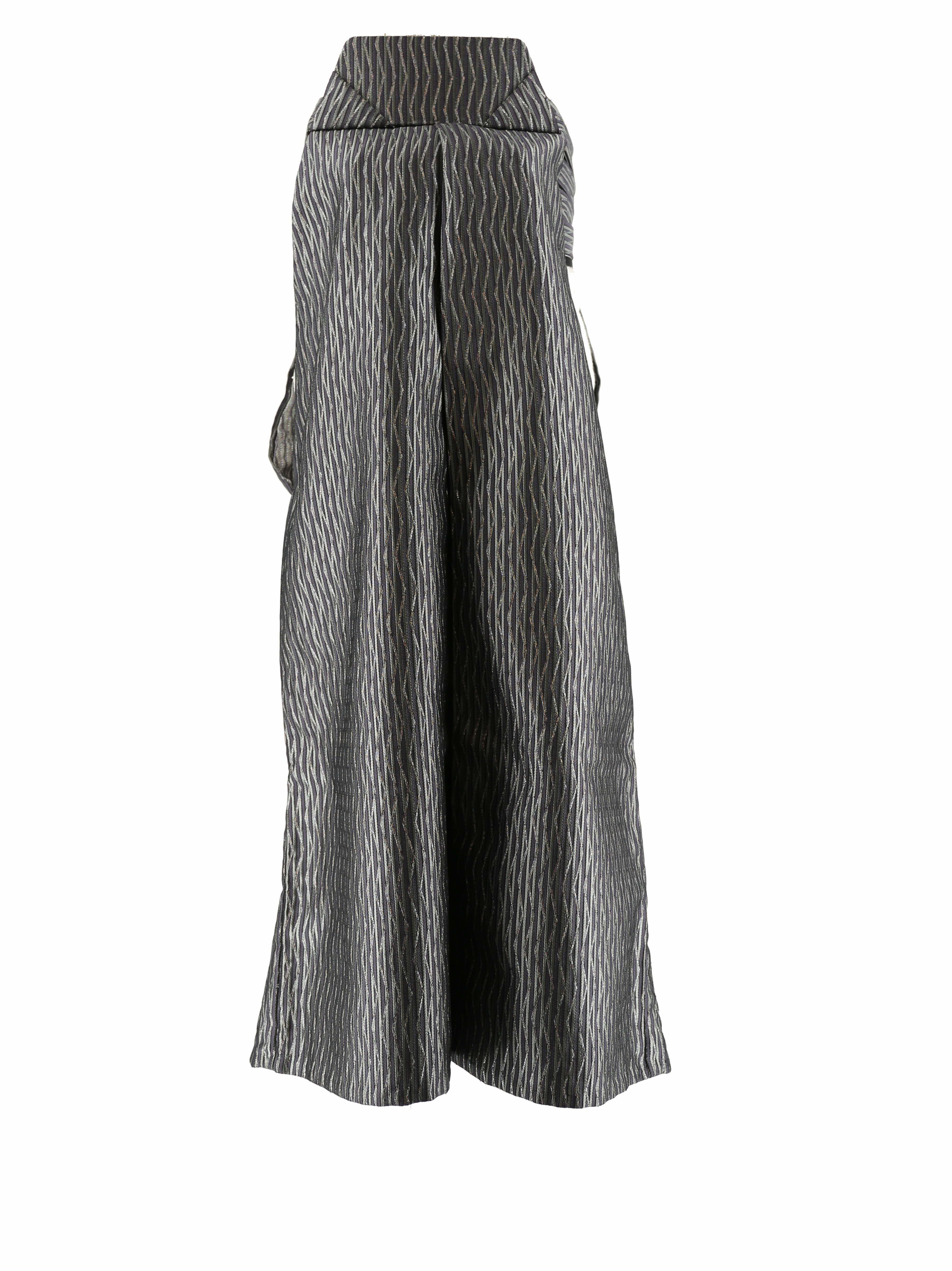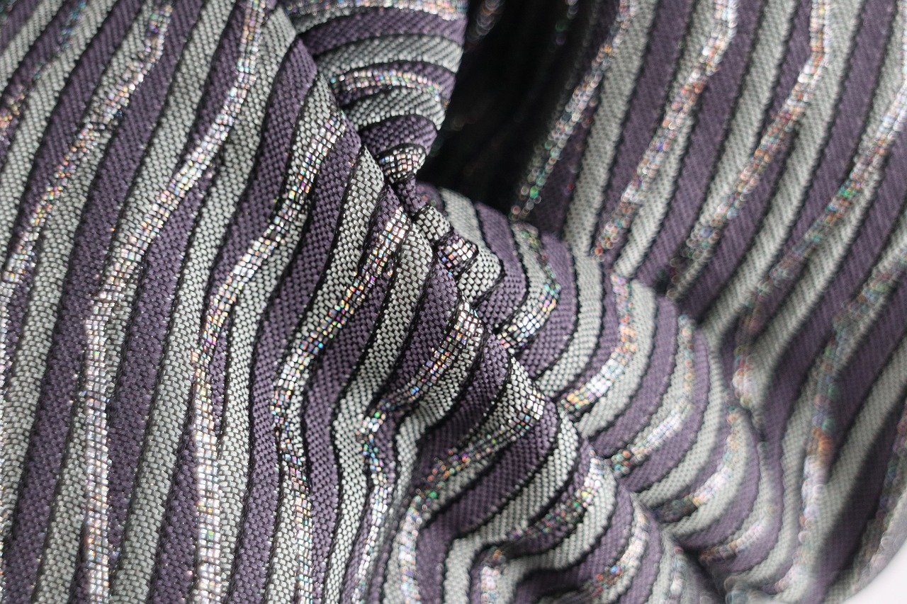グレーと紫のストライプ地に、ラメのジグザク線が重なったデザインの男性用袴。