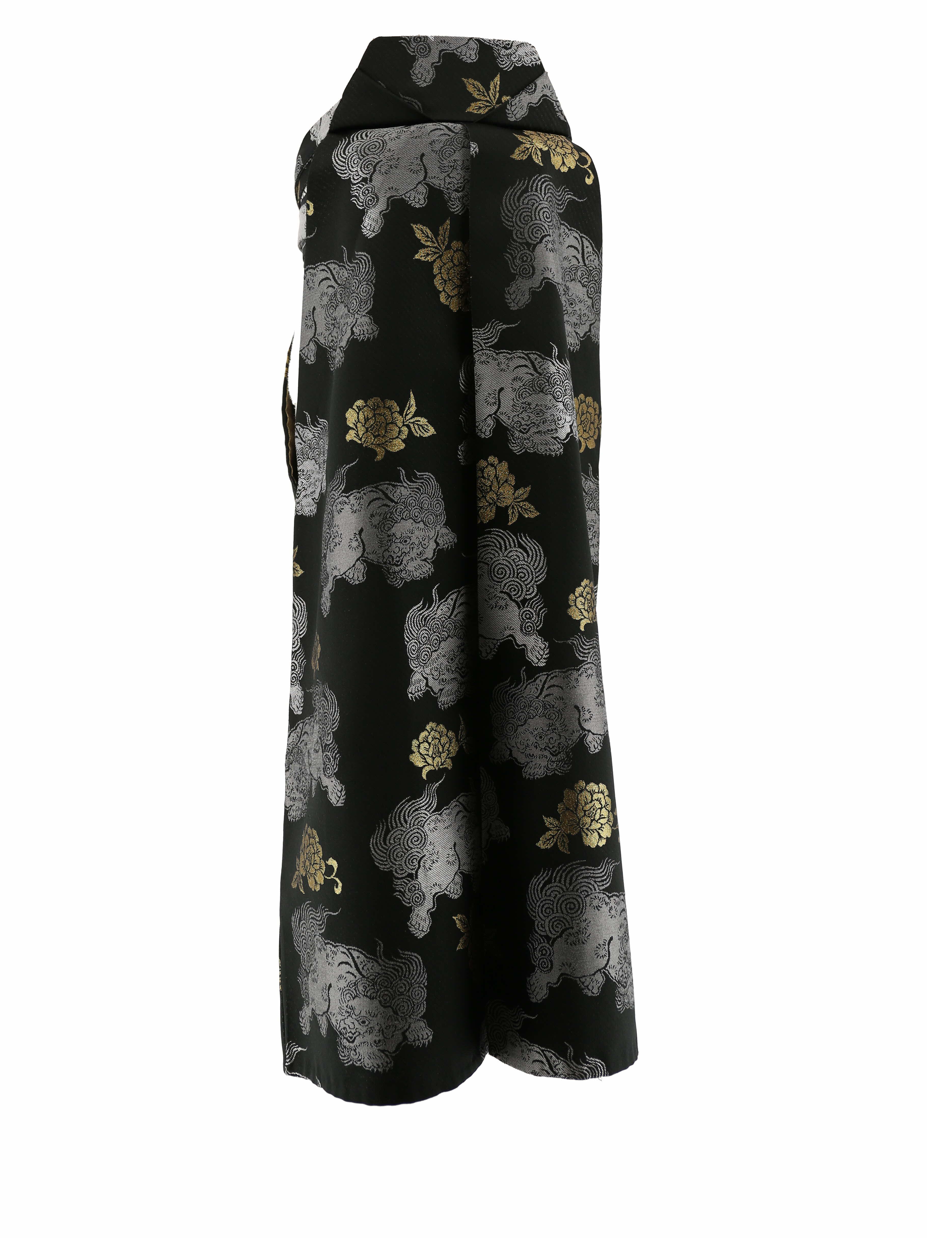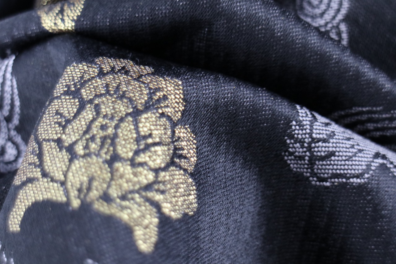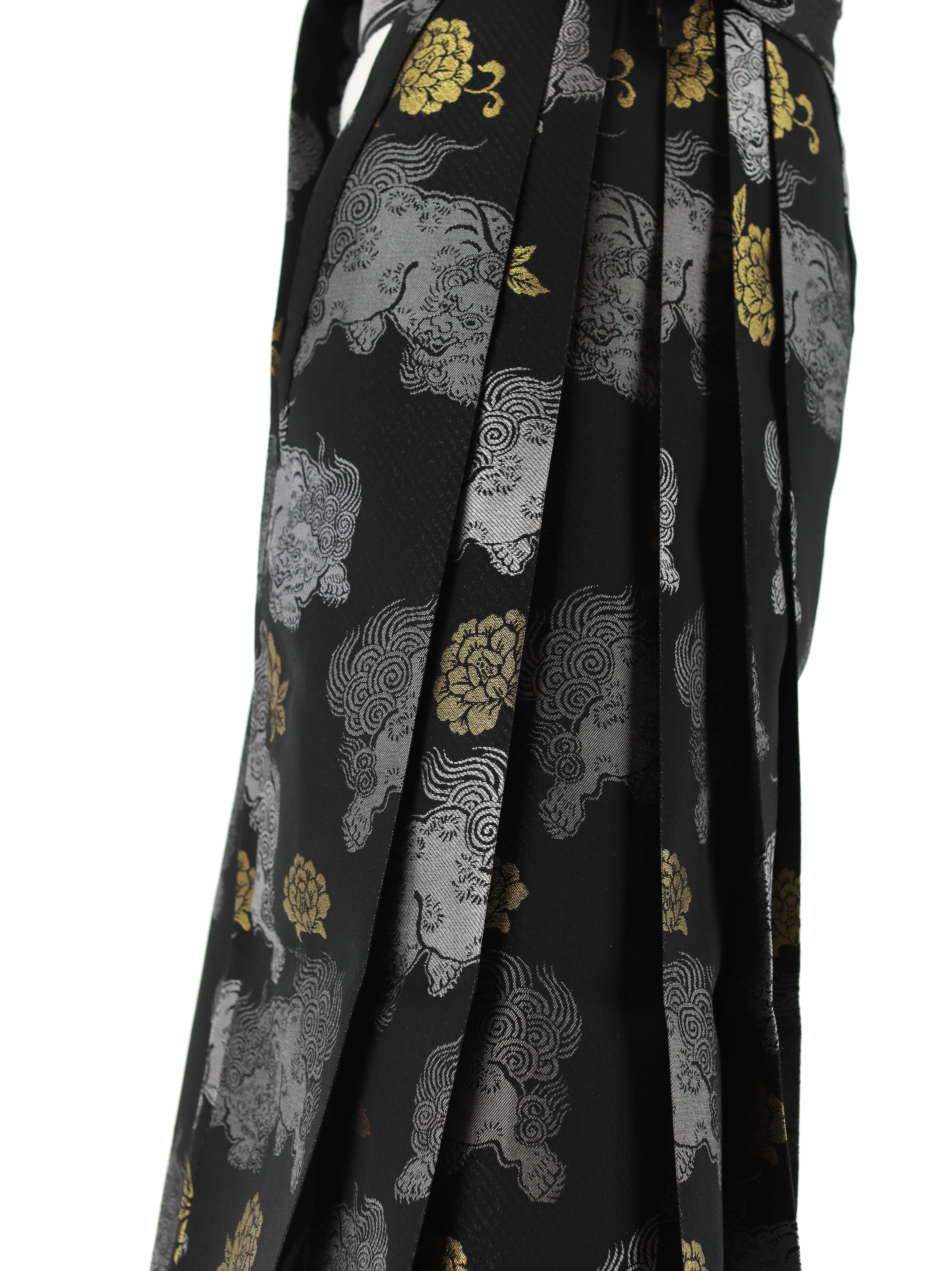 黒地にグレーで唐獅子が、ゴールドで牡丹が描かれた男性用袴。