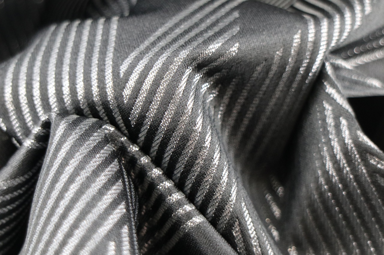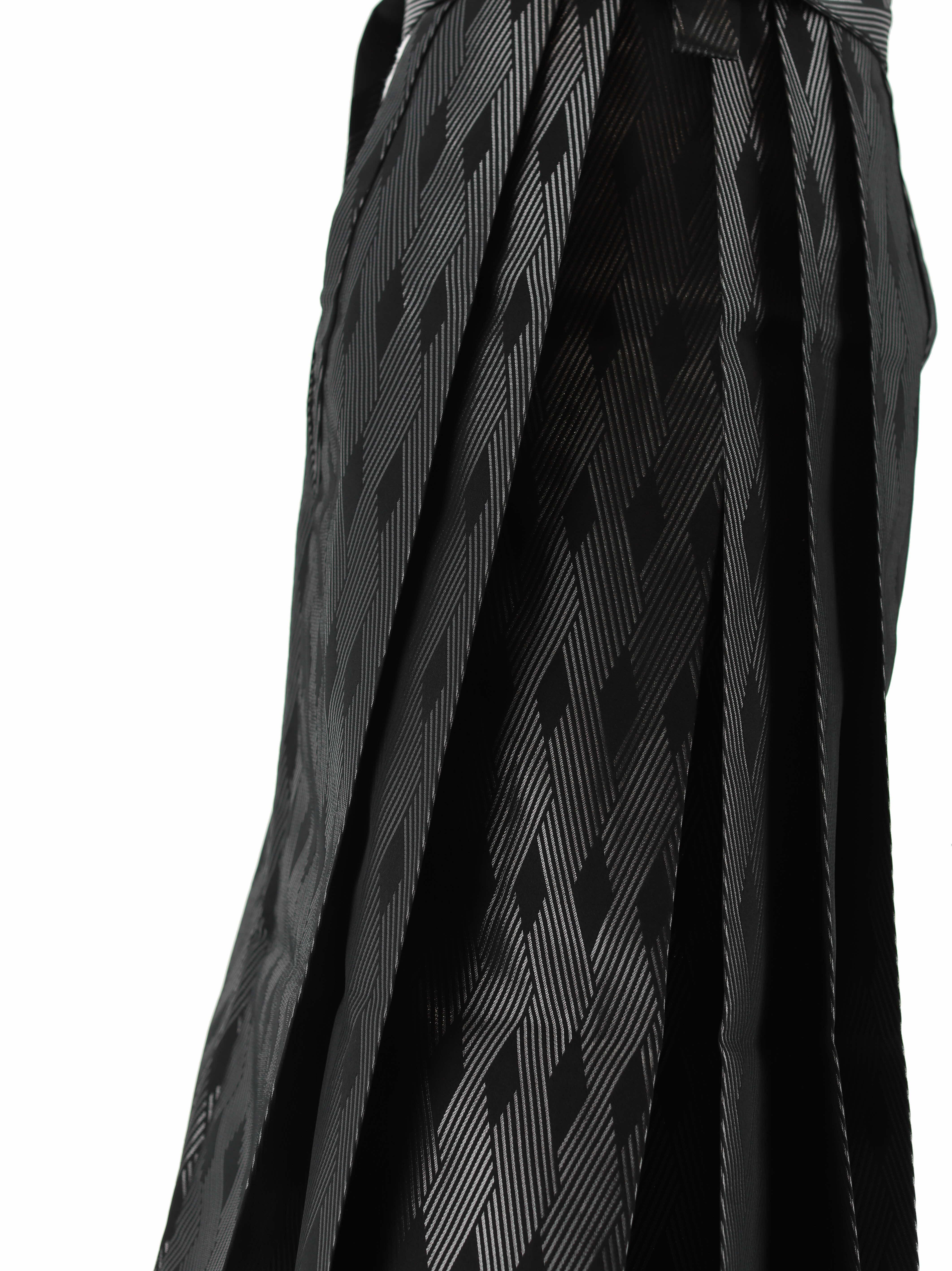 ツヤのあるマットな黒地にシルバーの糸で菱形模様が織られた男性用袴。