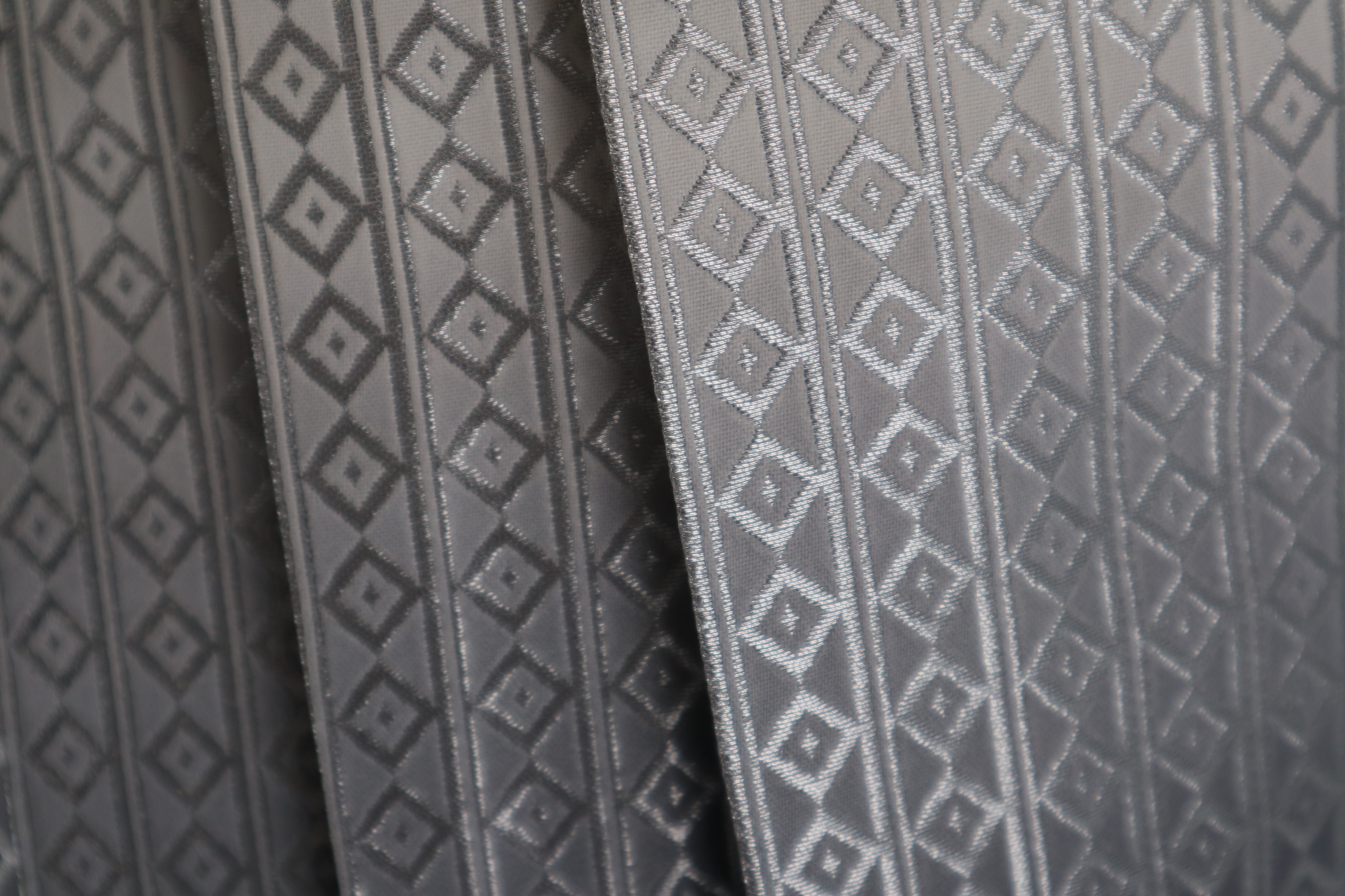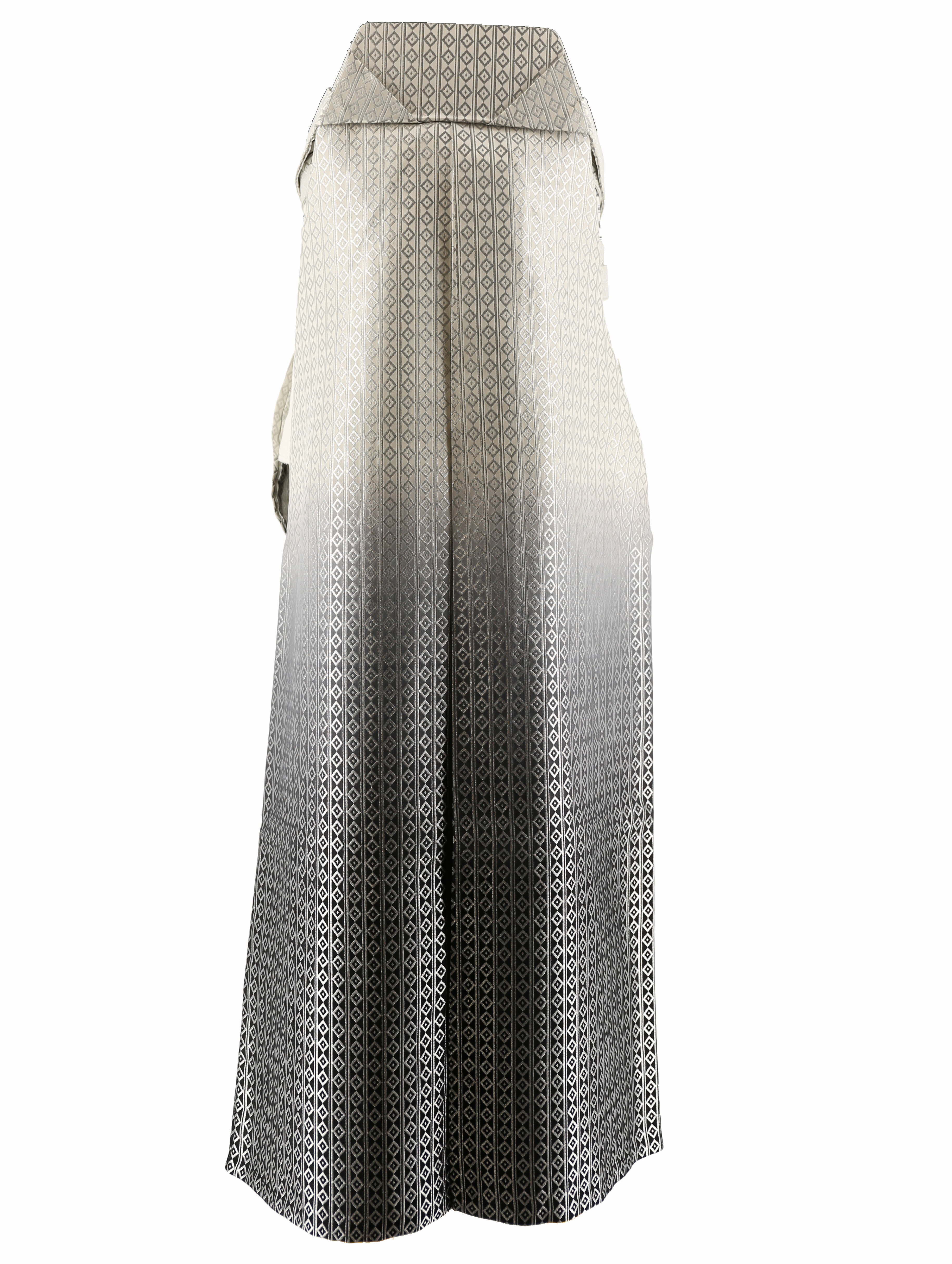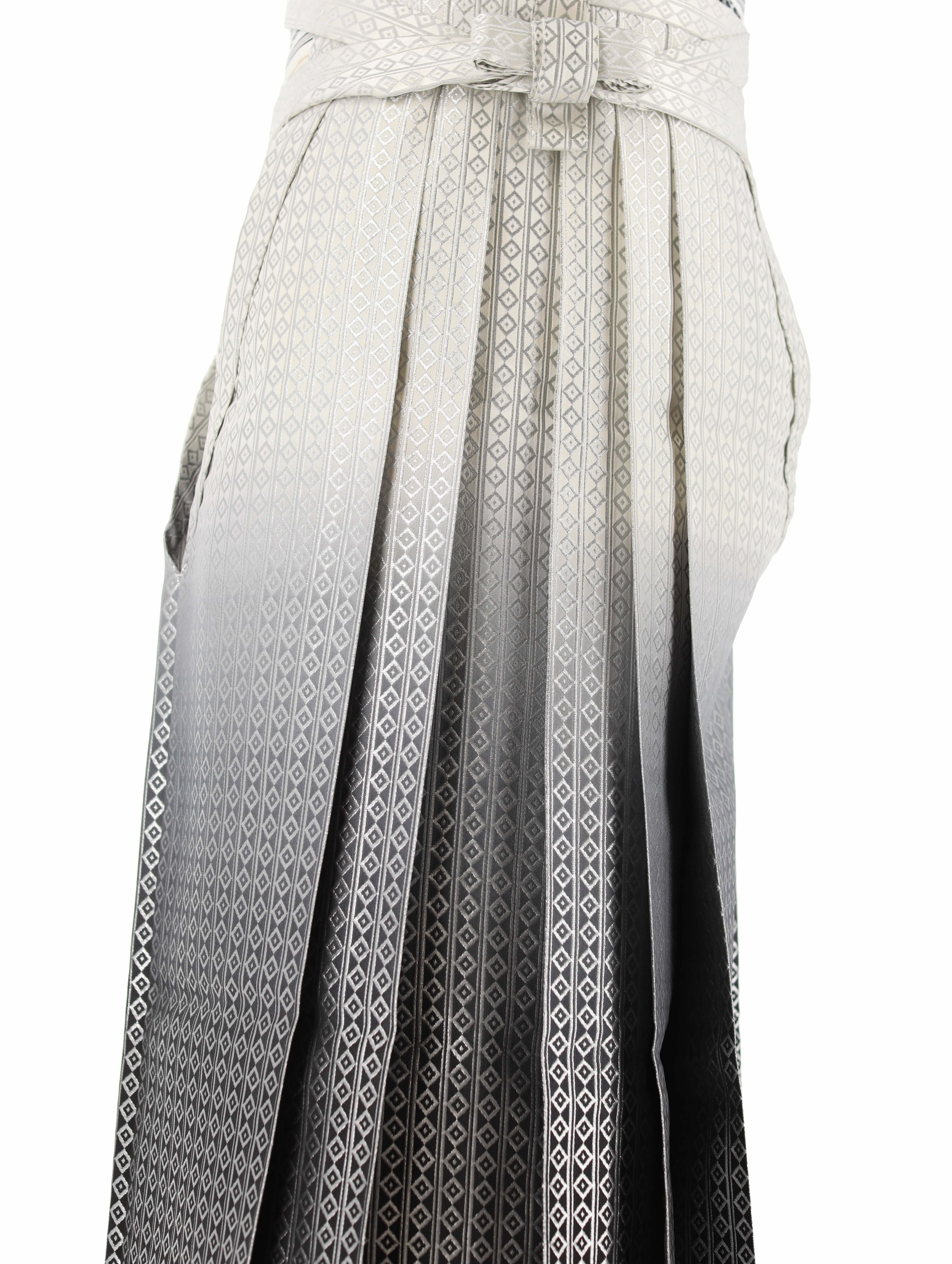 白から黒に変わるグラデーション地に、シルバーの小さな菱形とストライプが織られた男性用袴。