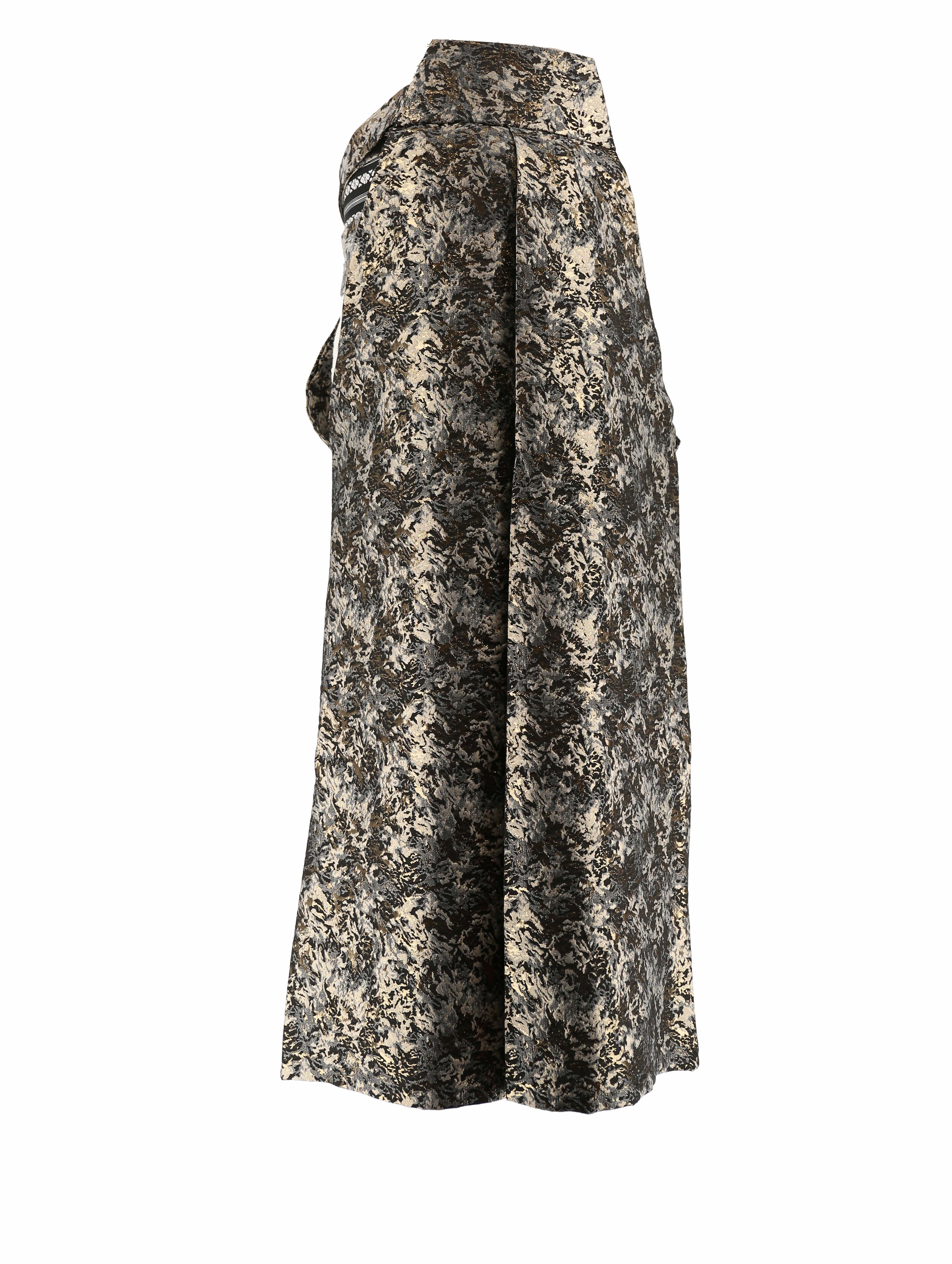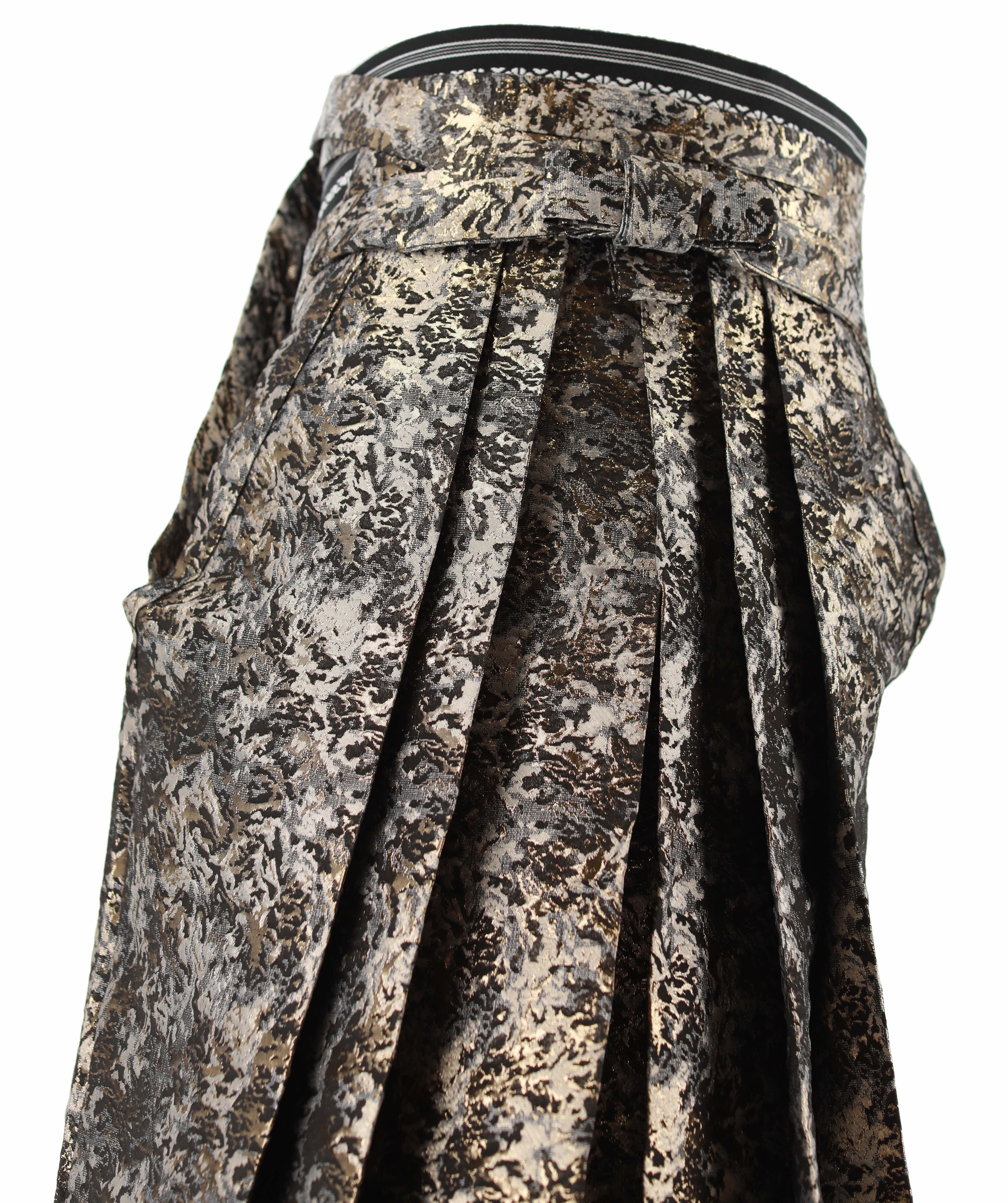 グレー、黒、ゴールドの三色が混ざり合う迷彩柄の男性用袴。