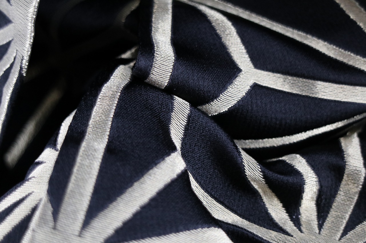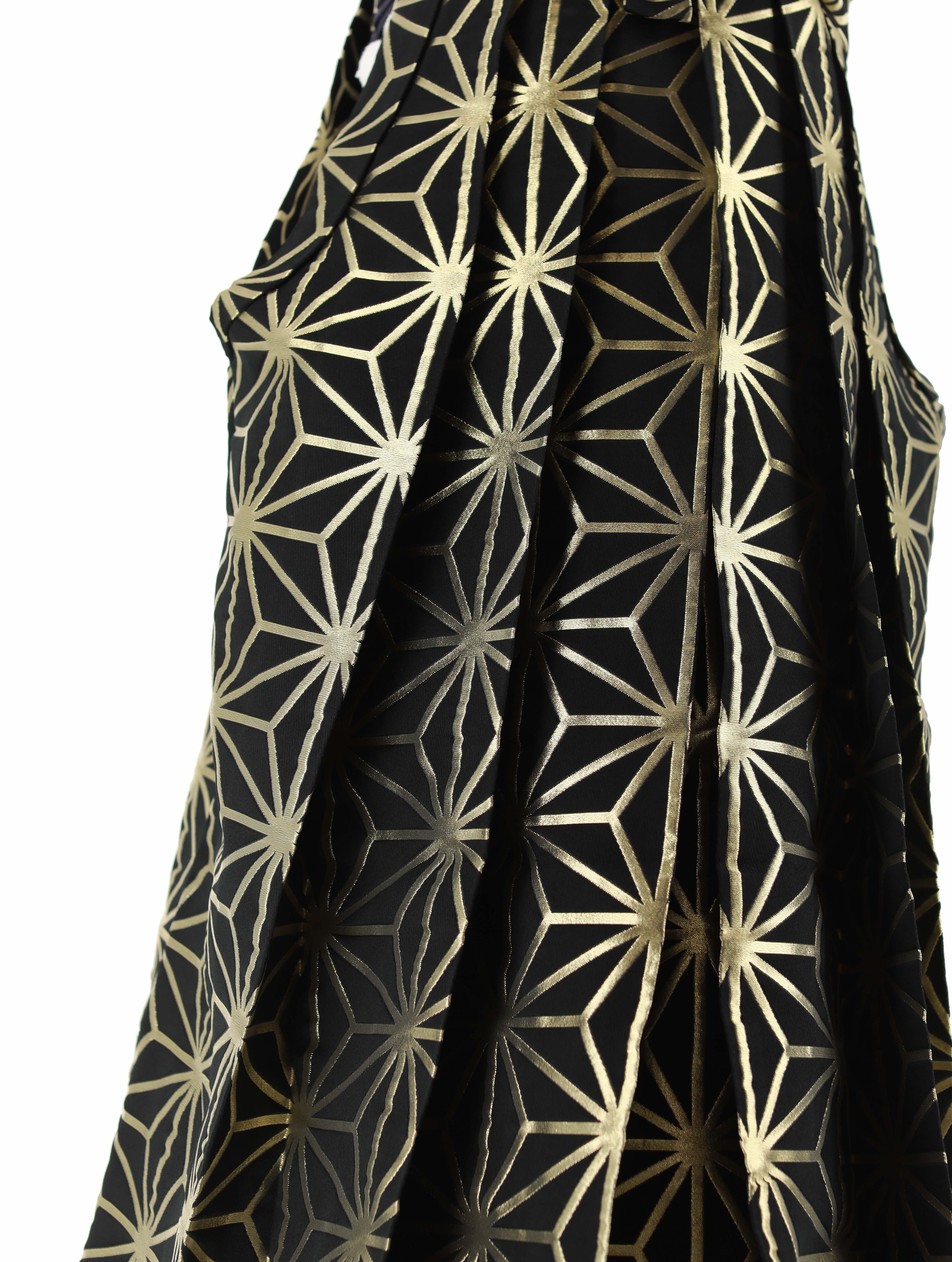 黒地にゴールドで、大きな麻の葉文様が織られた男性用袴。