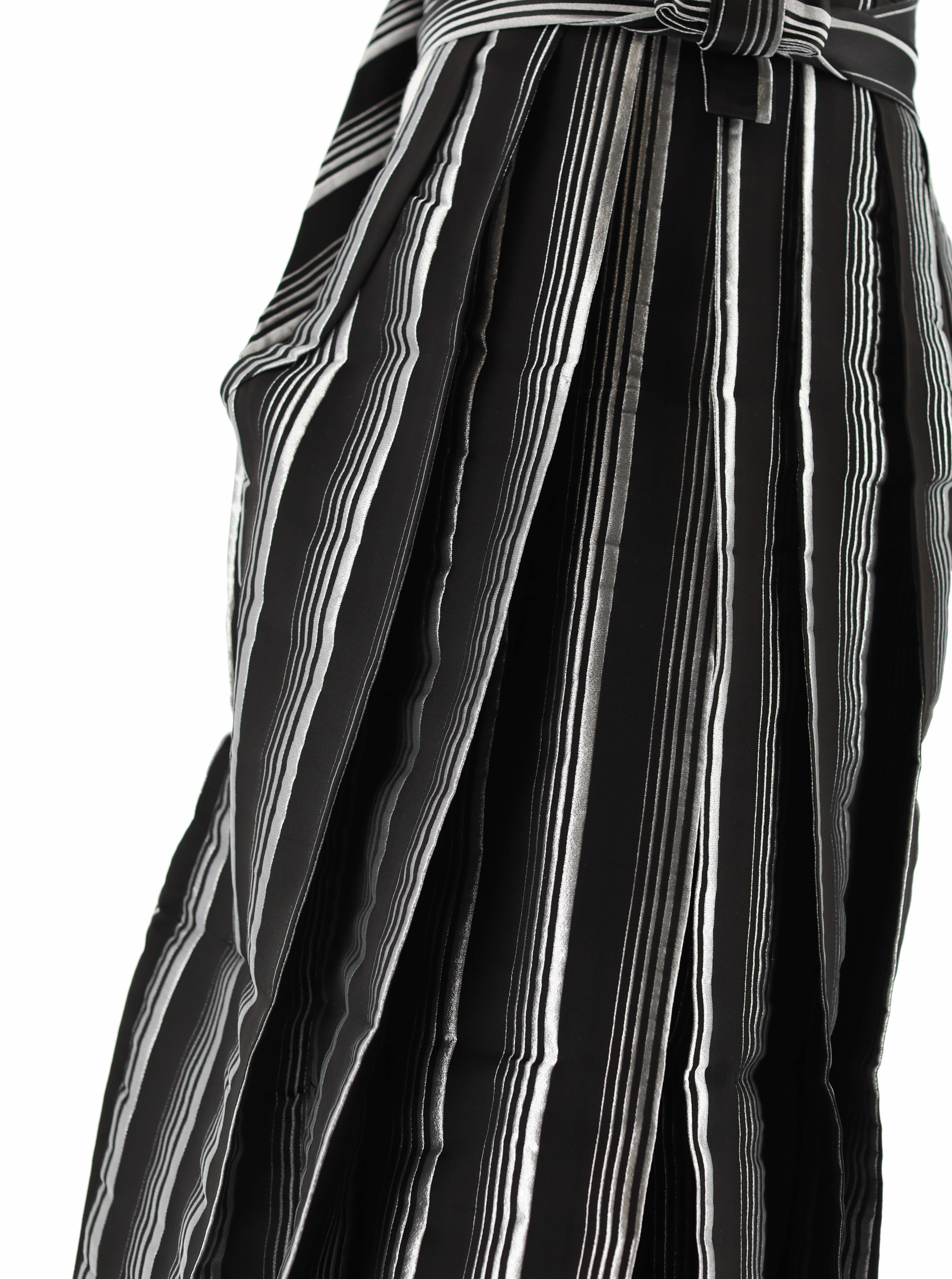 男性用袴単品レンタル(成人式・結婚式・卒業式)黒・シルバーのストライプ[身長175cm]No.668
