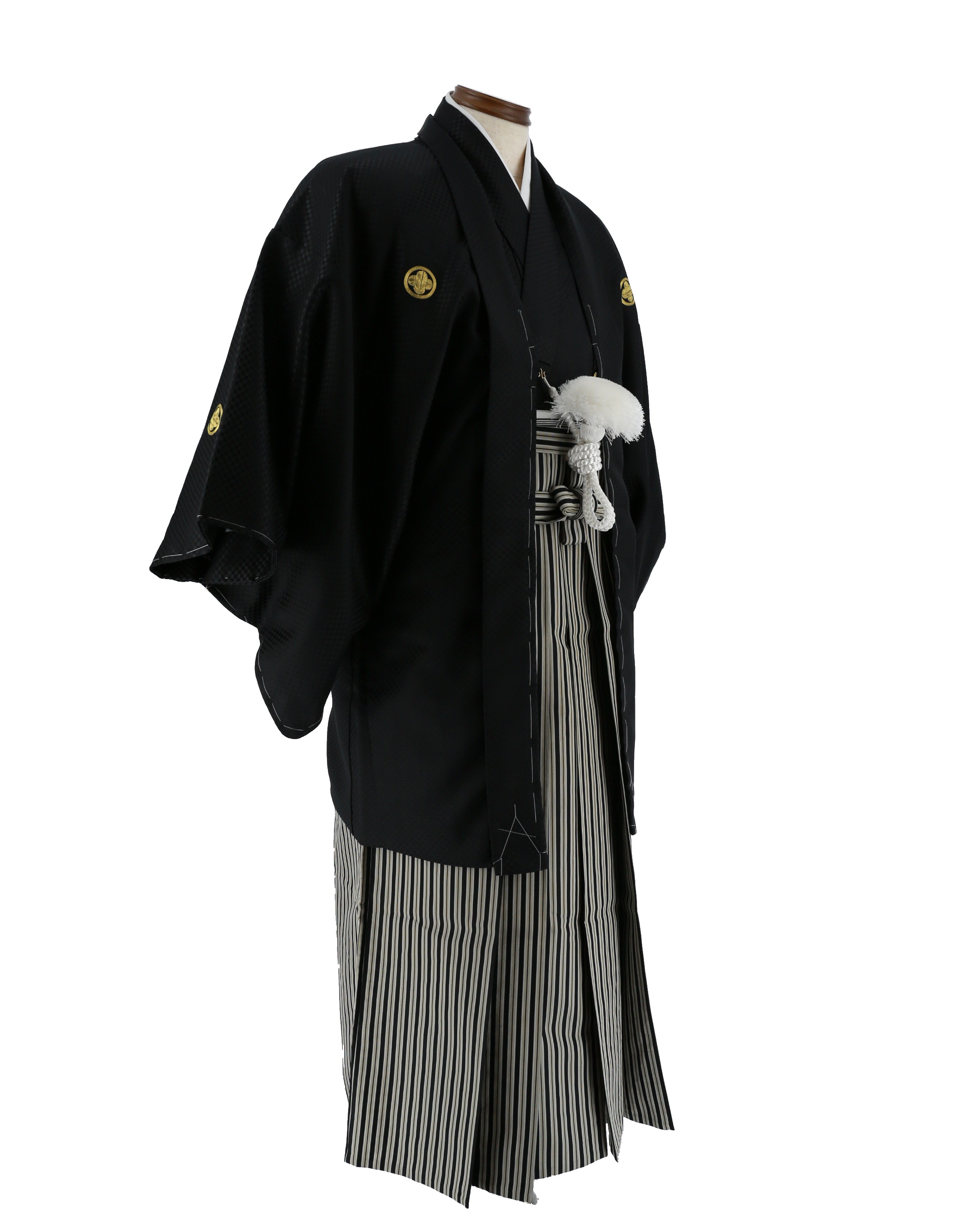 紋付袴レンタル・成人式・結婚式・卒業式|黒色 市松模様[身長165cm対応]No.91