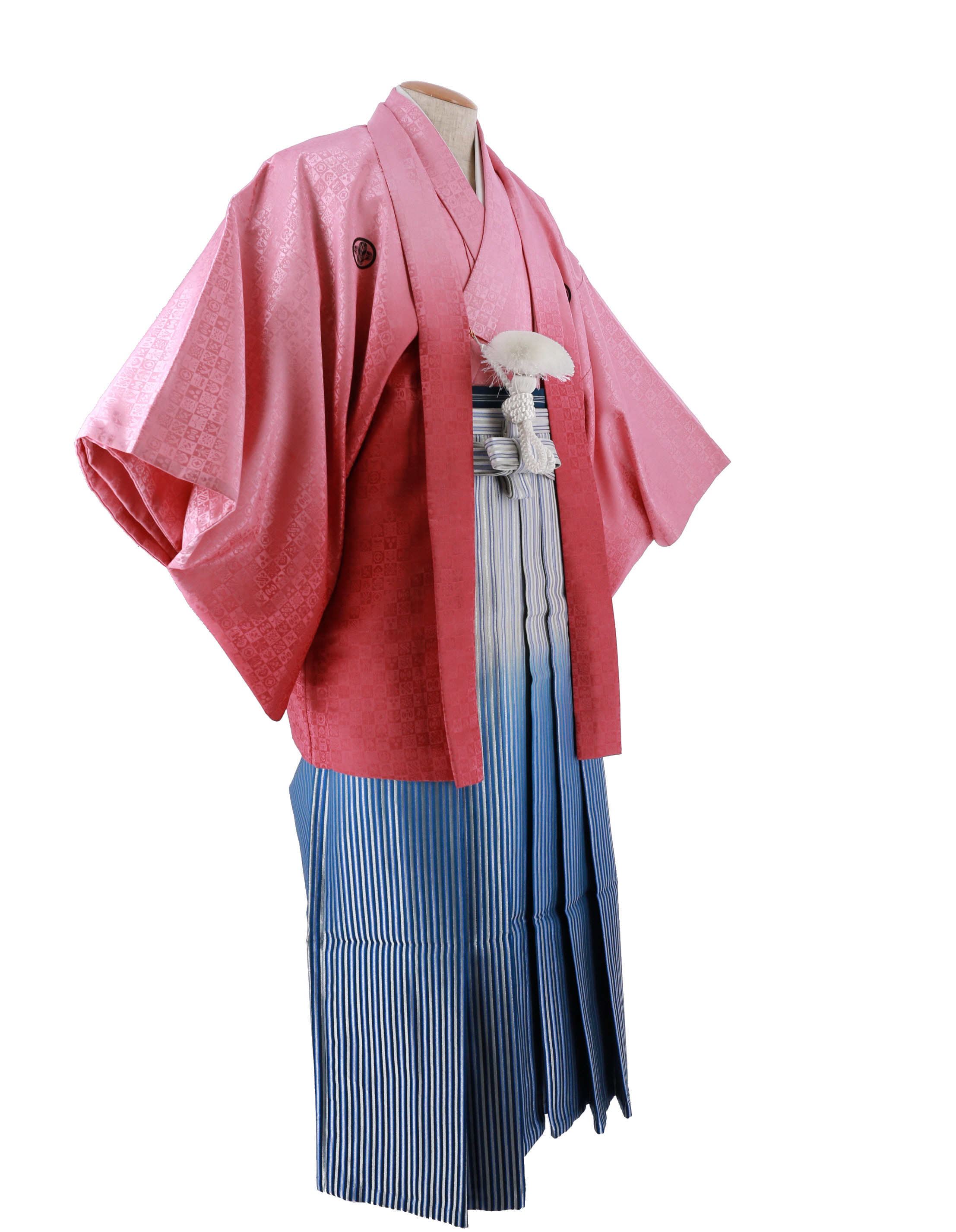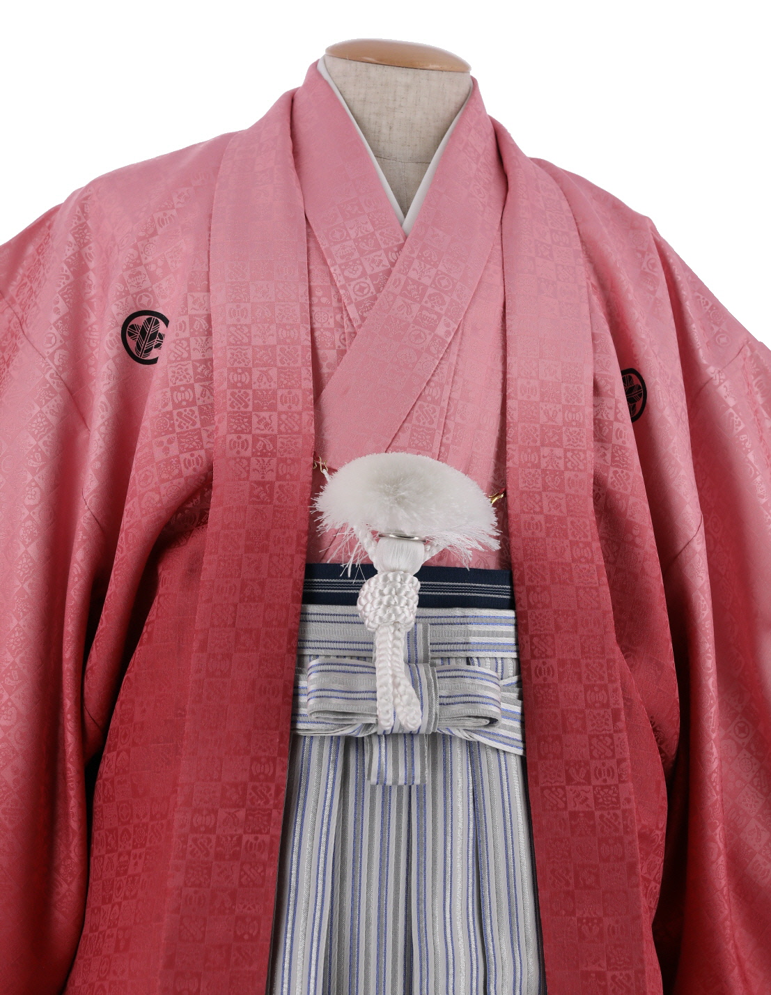 紋付袴レンタル・成人式・結婚式・卒業式【6L】ピンクぼかし市松模様[175-180cm]No.112