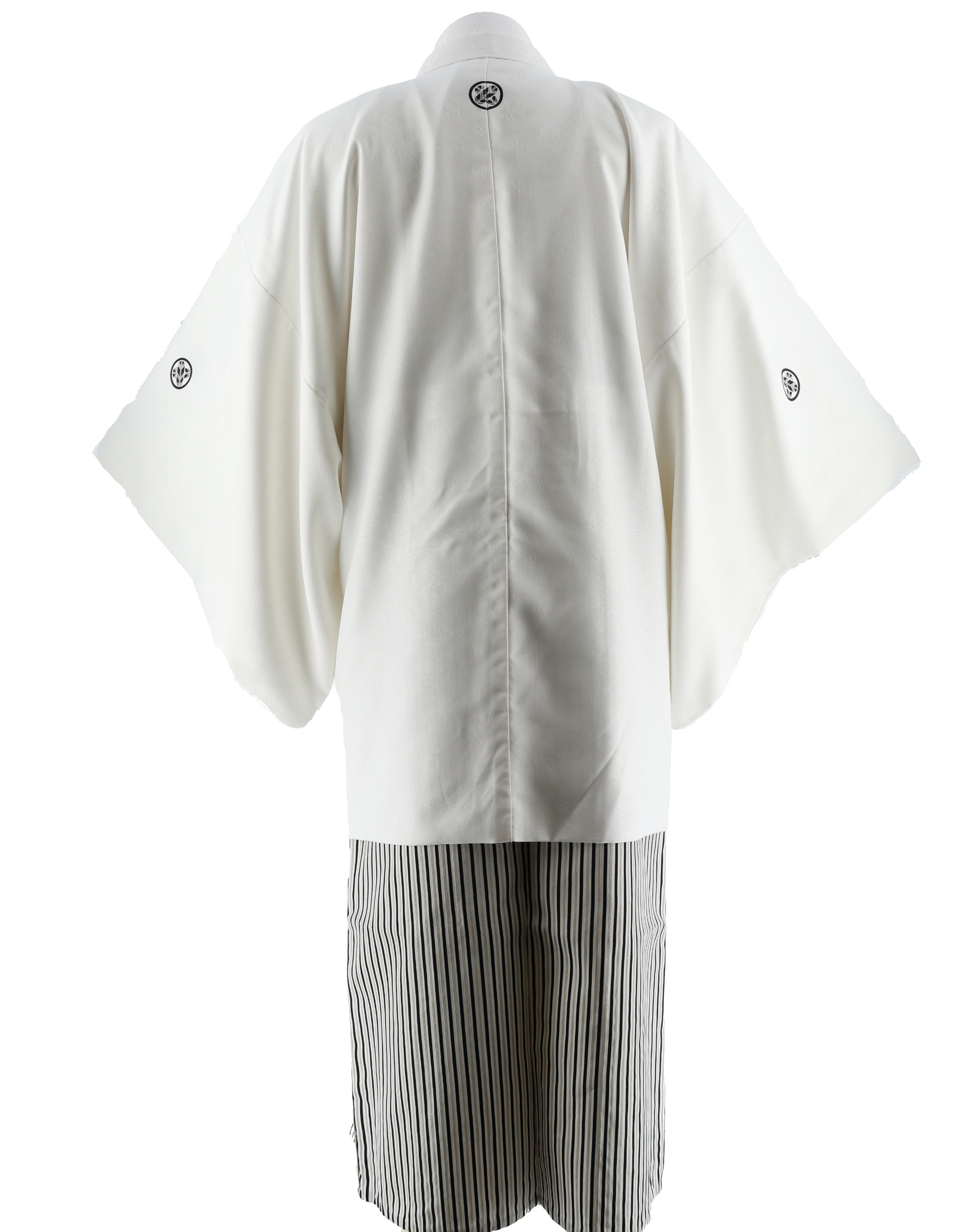 菱形模様の織られた白地の紋付羽織セットです。